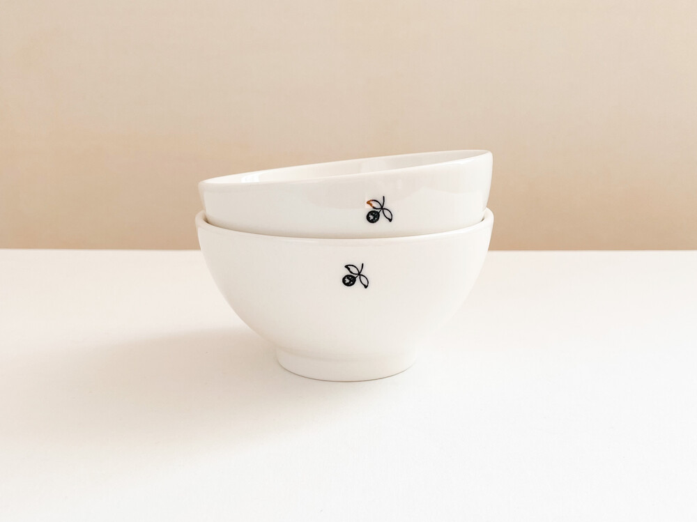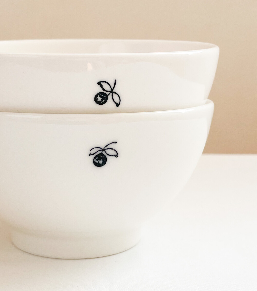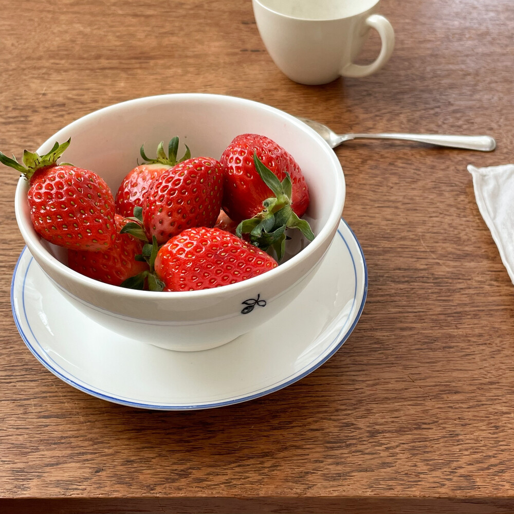 부드러운 질감의 스톤웨어를 소재로 만들어진 둥근 보울입니다. 여러용도로 편하게 사용하기에 알맞은 보울은, 몰드를 사용해 모양을 만들어내고, 여러번에 걸쳐 결을 다듬어낸 후 무늬와 유약을 입혀 오랜시간 동안 구워내는 과정을 동해 완성이 됩니다. 제품이 만들어지는데에는, 프랑스 Anneyron지역의 순도높은(제작의 편리성을 위해 섞이게 되는 흙과 물이외의 물질이 섞이지 않음을 뜻합니다) 흙과 유약 그리고 화학제품이 첨가되지 않은 안료가 사용됩니다. 둥글고 단정한 선으로 빚어진 보울의 한견에는 1900년대 초에 그려진 작은 열매그림이 바살트안료로 그려져 있습니다. 매끄럽고 단정한 실루엣과 자연스런 색감으로 부터 깨끗하고 화사한 분위기가 전해집니다. 시리얼이나 샐러드, 수프나 카페오레를 담아내는 간결한 식사시간을 그릇으로- 아이스크림이나 비스킷을 위한 디저트 그릇으로 사용하기에 잘 어울립니다.