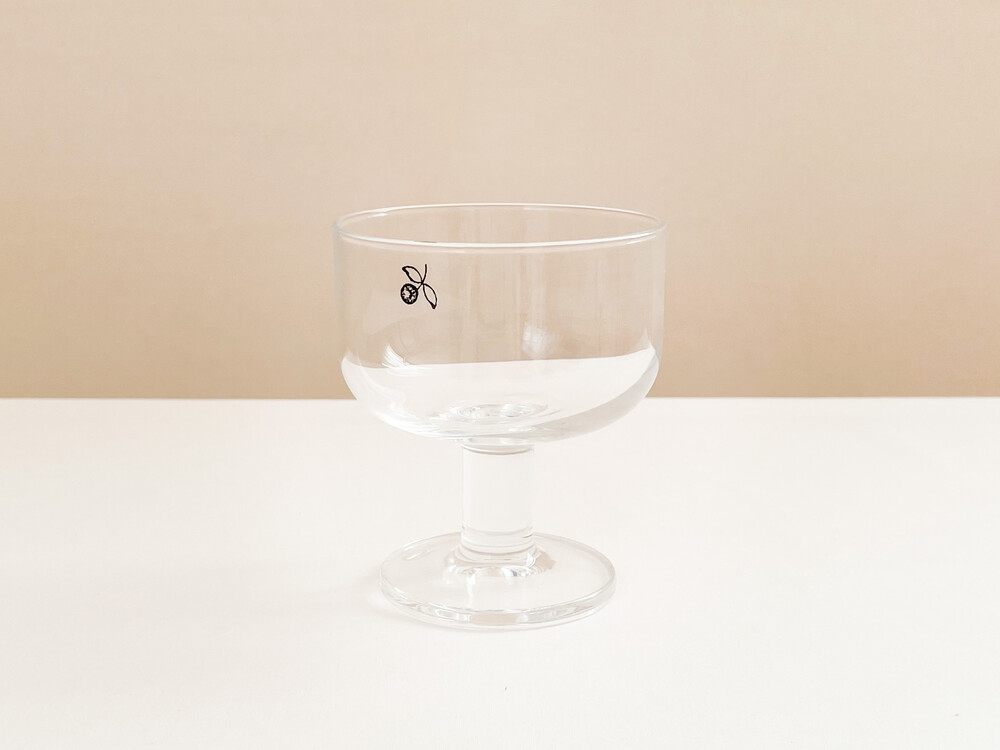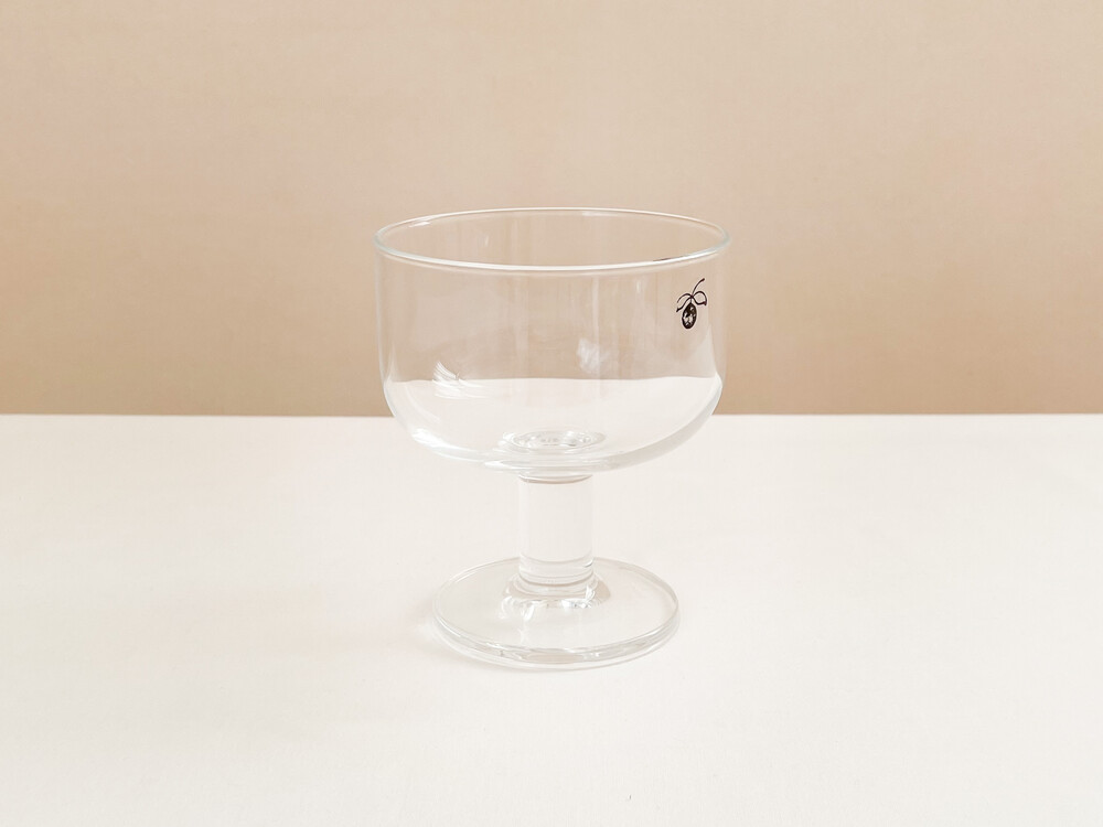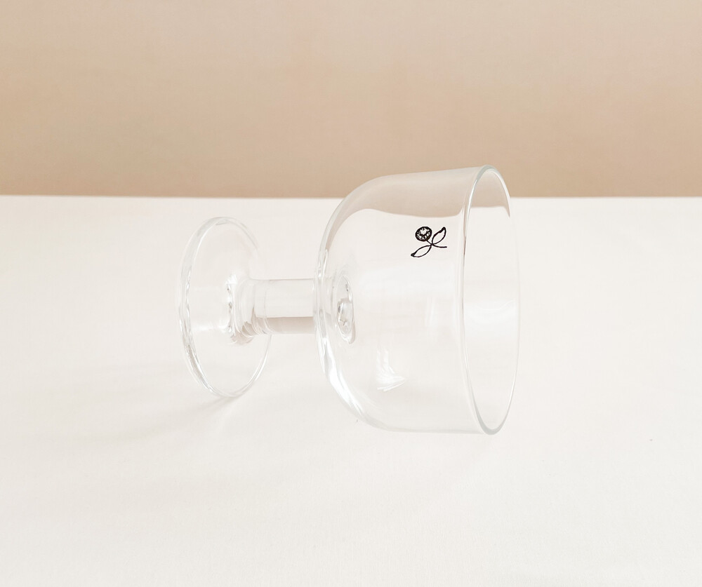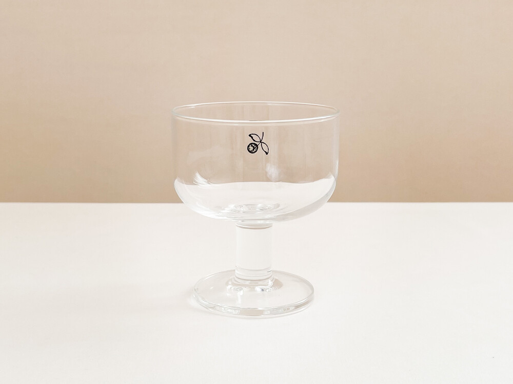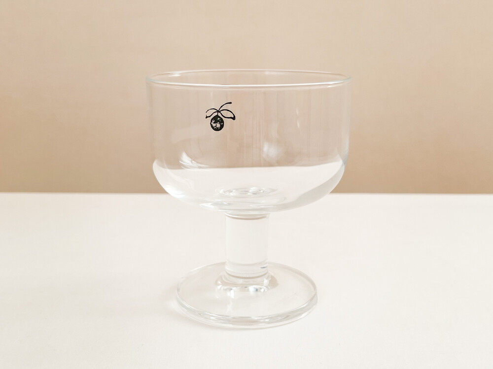 1800년대부터 유리 제품을 만들었던 이탈리안 글라스 브랜드와 유앤웬즈데이가 함께 만든 유리 고블렛입니다. 투명하고 말간 빛이 담긴 내열 강화유리를 소재로 하며, 둥글고 깊은 보울과 안정감있는 낮은 스템과 베이스로 모양을 이룹니다. 고전적인 고블렛의 구조를 모티프로 만들어졌으며, 사용과 관리가 쉬운 단정한 실루엣과 넉넉한 크기를 가지고 있습니다. 매끈한 보울의 한켠에는 투명한 1900년대 초반에 그려진 작은 열매모양의 모티브가 놓여져 있습니다. 일상적인 사용에 적당한 크기와 비율로 만들어진 제품으로- 매일사용하는 물잔이나 가벼운 와인잔으로, 요거트나 아이스크림을 담아내는 보울로 사용하기에 알맞습니다.
