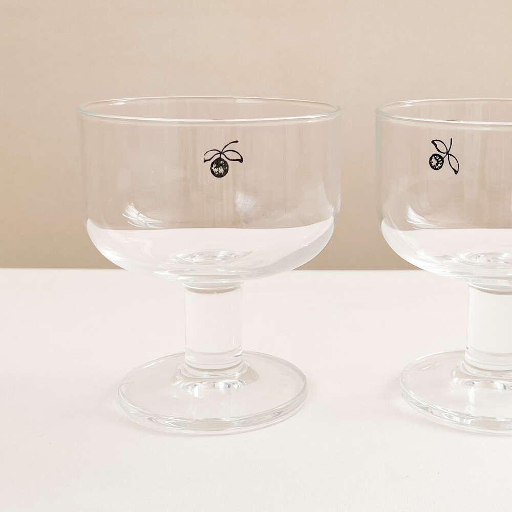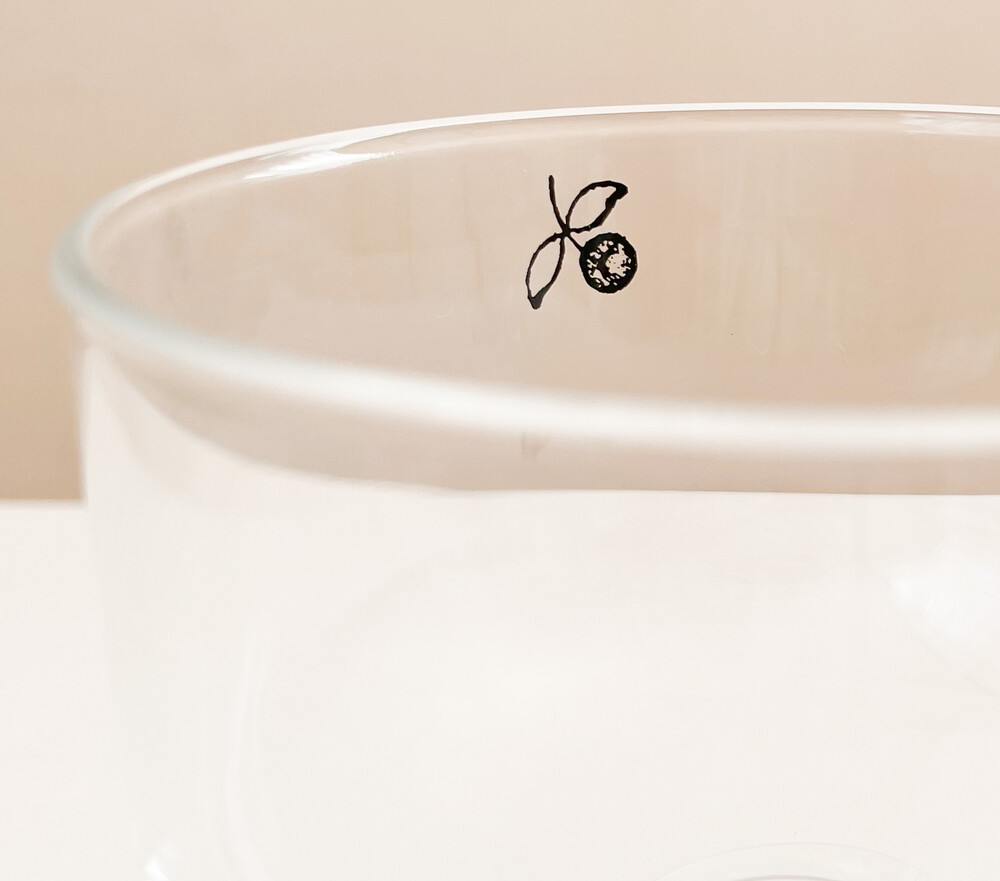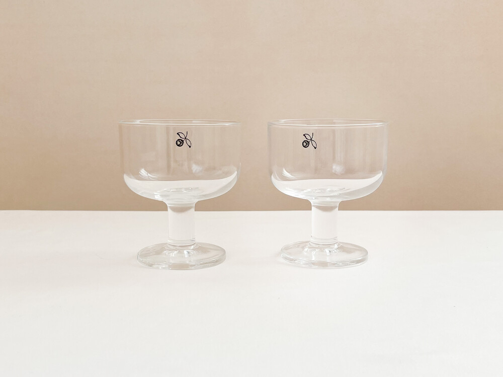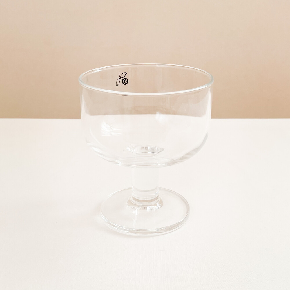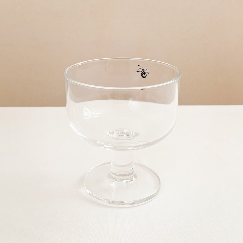 1800년대부터 유리 제품을 만들었던 이탈리안 글라스 브랜드와 유앤웬즈데이가 함께 만든 유리 고블렛입니다. 투명하고 말간 빛이 담긴 내열 강화유리를 소재로 하며, 둥글고 깊은 보울과 안정감있는 낮은 스템과 베이스로 모양을 이룹니다. 고전적인 고블렛의 구조를 모티프로 만들어졌으며, 사용과 관리가 쉬운 단정한 실루엣과 넉넉한 크기를 가지고 있습니다. 매끈한 보울의 한켠에는 투명한 1900년대 초반에 그려진 작은 열매모양의 모티브가 놓여져 있습니다. 일상적인 사용에 적당한 크기와 비율로 만들어진 제품으로- 매일사용하는 물잔이나 가벼운 와인잔으로, 요거트나 아이스크림을 담아내는 보울로 사용하기에 알맞습니다.