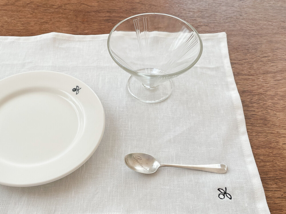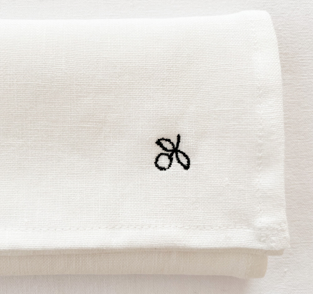 1900년대 초반에 그려진 열매그림을 모티브로 제작 된 테이블 클로스입니다. 기분좋은 찰랑임을 가진 적당한 무게의 프렌치 리넨을 정돈하고, 한켠에 작은 열매모양의 자수를 새겼습니다. 은은한 윤을 띈 밝은 아이보리리넨과 편안하고 단정한 분위기를 가진 검정색의 무늬가 조화로우며, 프렌치 리넨 고유의 단단하고 자연스러운 짜임과 작고 동그란 열매가 전해주는 고요하고 풍요로운 감정의 어울림이 아름답습니다. 커틀러리와 그릇들을 놓아두거나, 과일이나 티웨어를 감싸두는 정돈을 위한 부엌의 물건으로- 초를 켜거나 화병을 올려두는 장식을 위한 클로스로 사용하기에 잘 어울립니다.