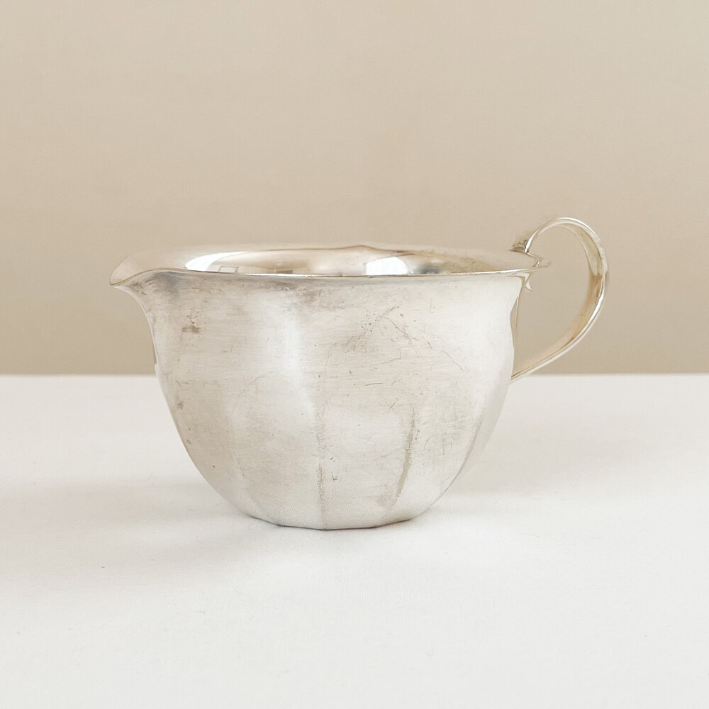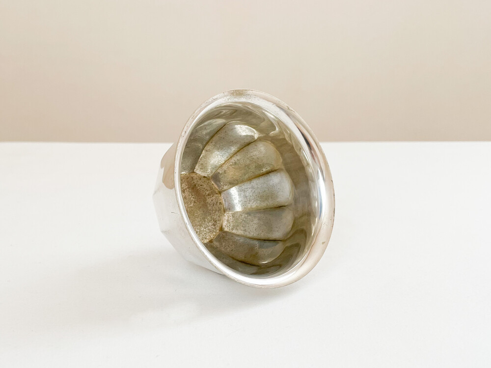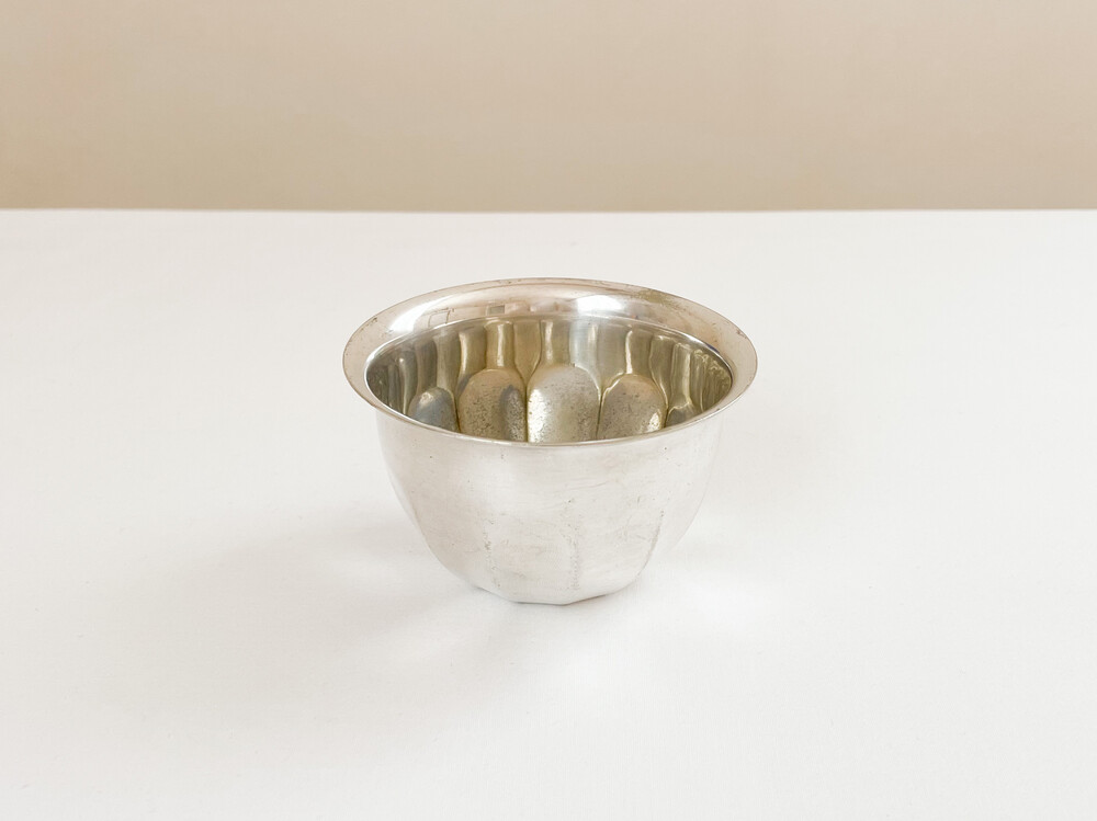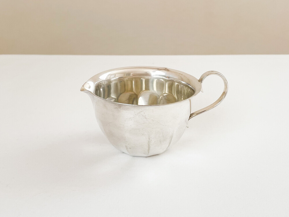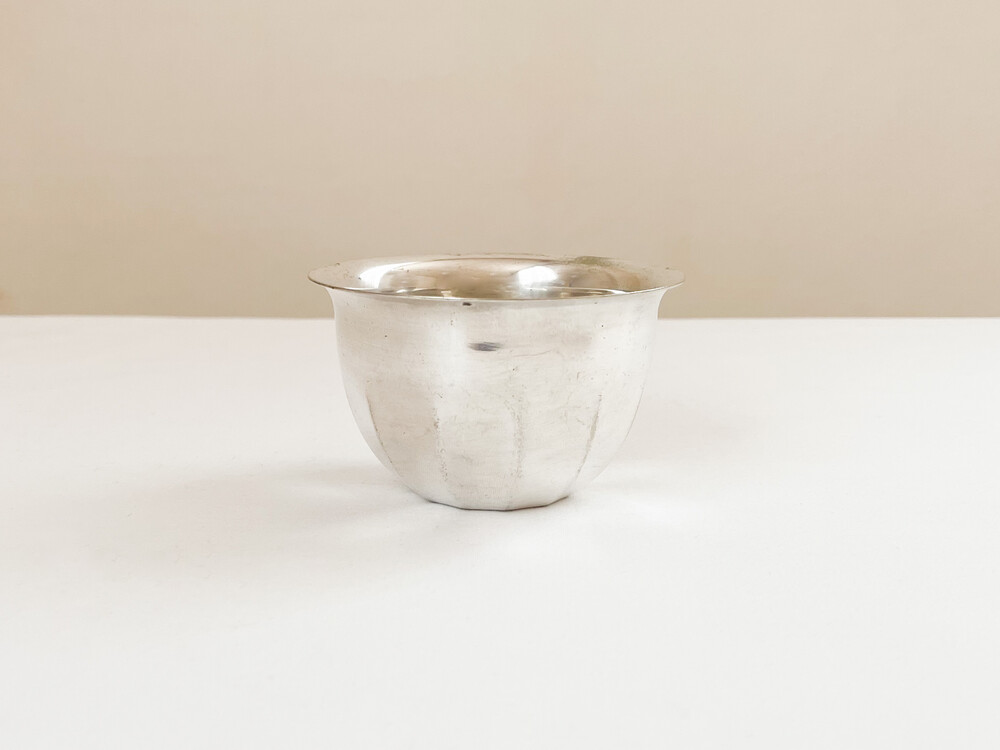 1900년대 초반에 제작 된 것으로 전해지는 실버플레이티드 티웨어입니다. 은과 좋은 짝을 이루는 실버크롬위에 순은을 두텁게 입혀낸 실버플레이티드를 소재로 만들어진 제품들로 정교한 실루엣으로 모양을 이룹니다. 매끄러운 종bell모양을 모티프로하며, 소재의 반짝임이 잔잔하게 펼쳐질 수 있도록 보울의 안쪽에 단정한 꽃잎 모양을 새겨넣었습니다. 100년에 가까운 시간이 만들어내는 오라aura와 동화적인 분위기가 훌륭한 어울림을 보여줍니다. 테이블위에 아름다운 결을 더해주는 식기들로, 작은 초나 향을 받쳐 두는 오브제로 사용하기에 잘 어울립니다.