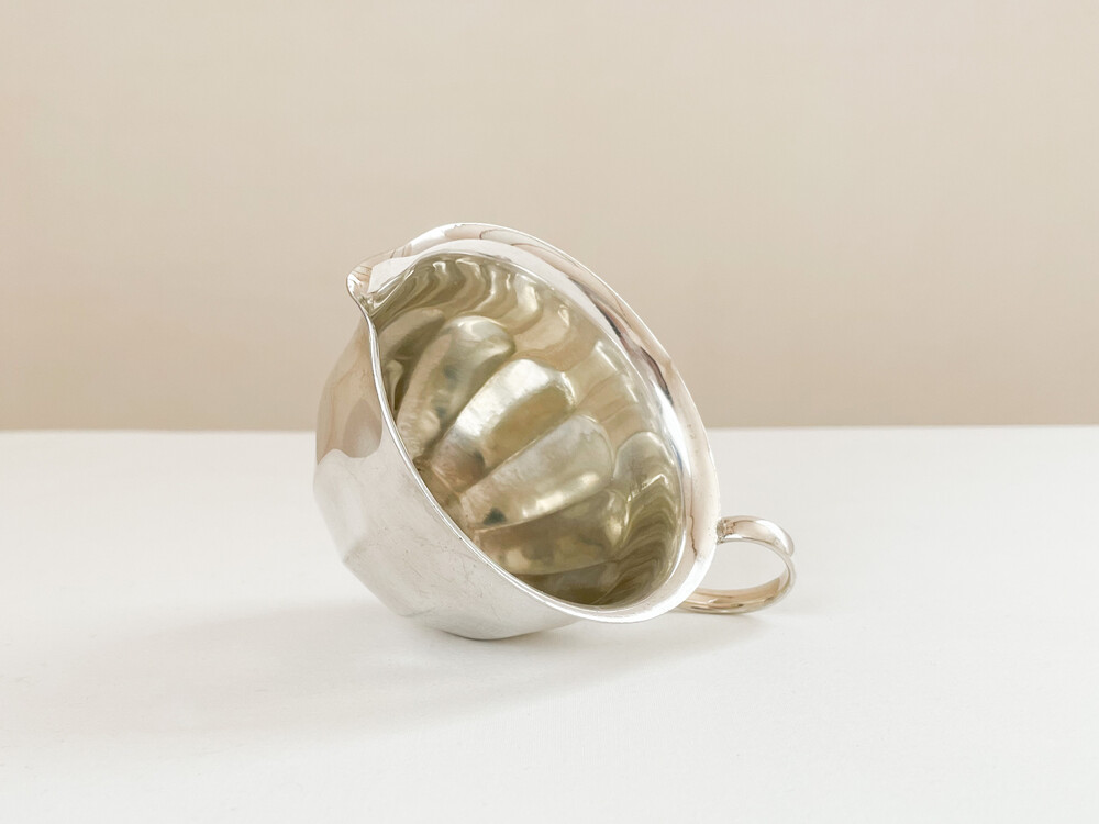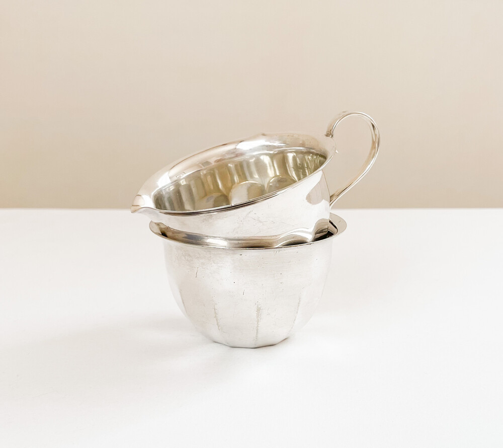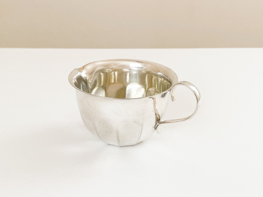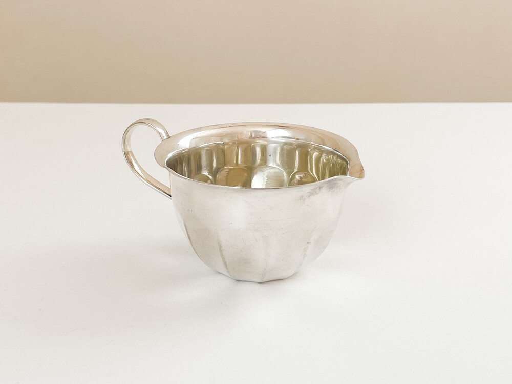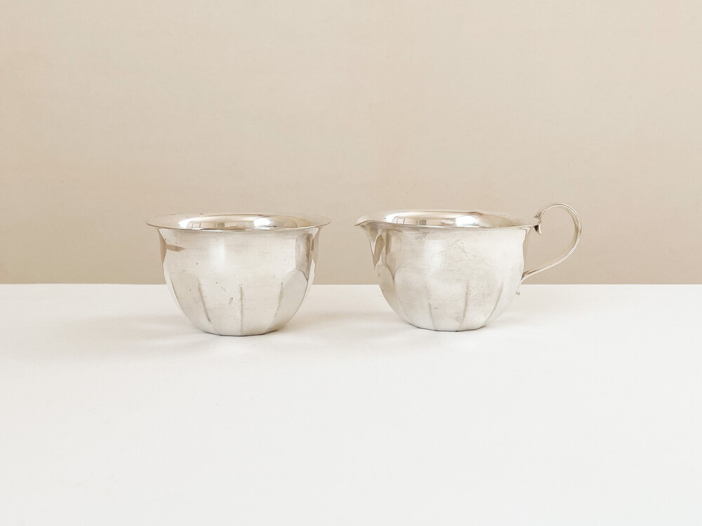 1900년대 초반에 제작 된 것으로 전해지는 실버플레이티드 티웨어입니다. 은과 좋은 짝을 이루는 실버크롬위에 순은을 두텁게 입혀낸 실버플레이티드를 소재로 만들어진 제품들로 정교한 실루엣으로 모양을 이룹니다. 매끄러운 종bell모양을 모티프로하며, 소재의 반짝임이 잔잔하게 펼쳐질 수 있도록 보울의 안쪽에 단정한 꽃잎 모양을 새겨넣었습니다. 100년에 가까운 시간이 만들어내는 오라aura와 동화적인 분위기가 훌륭한 어울림을 보여줍니다. 테이블위에 아름다운 결을 더해주는 식기들로, 작은 초나 향을 받쳐 두는 오브제로 사용하기에 잘 어울립니다.
