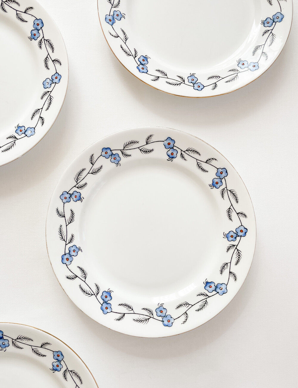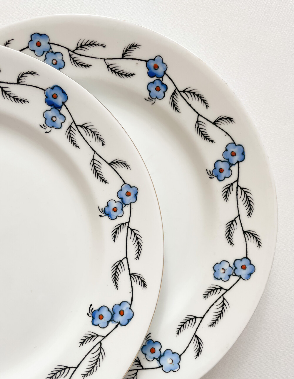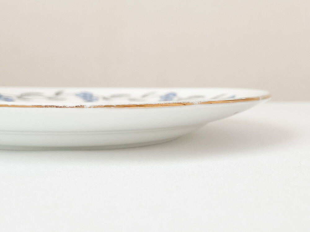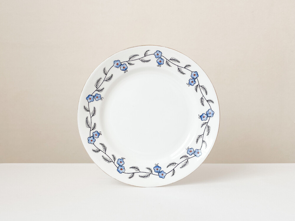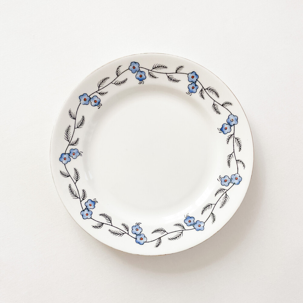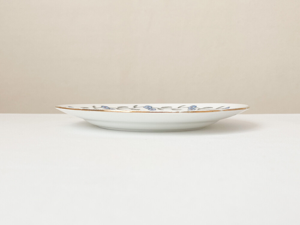 벨잉글랜드는 1800년대 후반 잉글랜드 스토크온트렌트에서 시작 된 테이블웨어브랜드인 Shore & Co.에서 1910년대에 제작했던 벨이라는 이름이 시리즈를 모티브로 만들어진 브랜드입니다. 벨은, 계절과 당시의 유행을 따른 세심한 꾸밈이 담긴 테이블웨어들과 왕실을 모티브로 하는 화려한 장식 도자기들로 동시대 컬렉터들의 큰 호응을 받았습니다. 소개해드리는 제품은 1920년대 중후반에 제작 된 것으로 전해지는 티플레이트 입니다. 뽀얀 하얀색의 본차이나를 소재로하며, 낮고 둥글며 사뿐한- 고전적인 형태를 가지고있습니다. 접시의 가장자리에는 검정의 얇은 선으로 가지를 그리고 헤더블루와 블러시브라운로 채색 된 리스와 22k골드의 가느다란 줄무늬가 장식되어 있습니다. 맑은 공기와 보드라운 바람결이 전해지는 듯 아름다운 모습입니다. 고전적인 소재와 모양, 자연스러우며 조심스러운 터치와 색감들이 적당한 균형을 이룹니다. 공간을 화사하게 장식하는 오브제로, 귀한 식사시간이나 느긋한 티테이블을 위한 그릇으로 사용하기에 잘 어울립니다.
