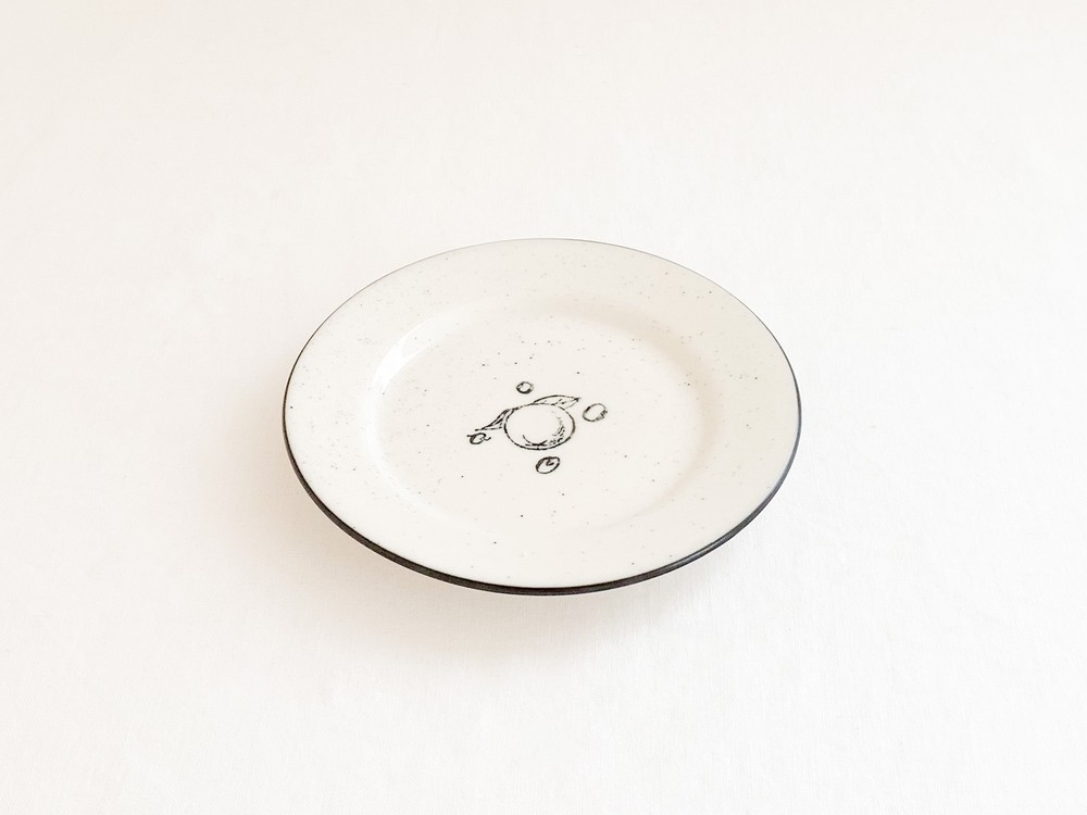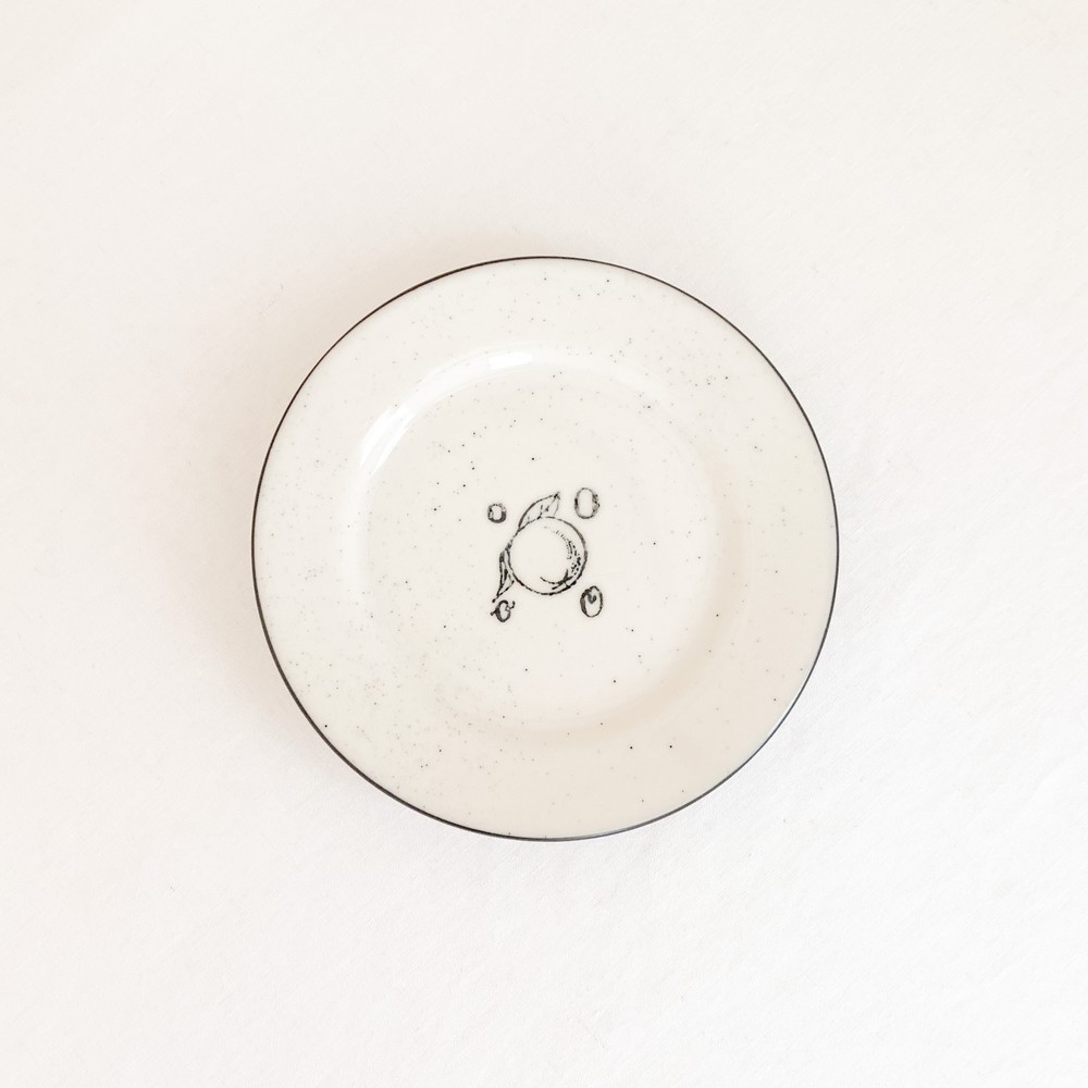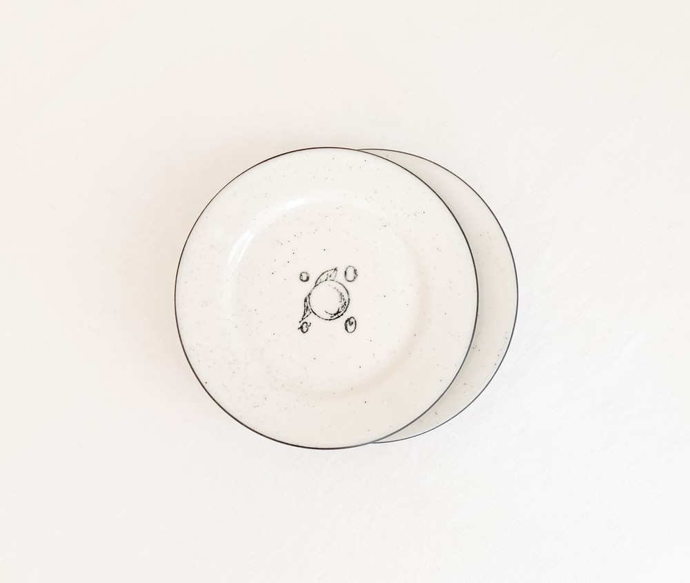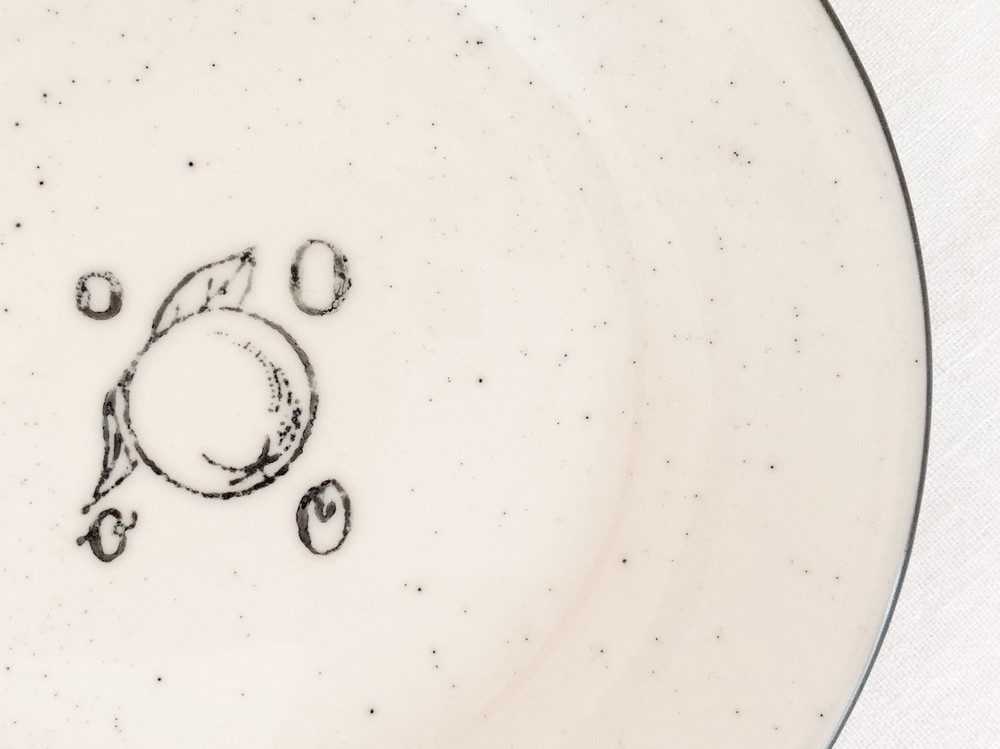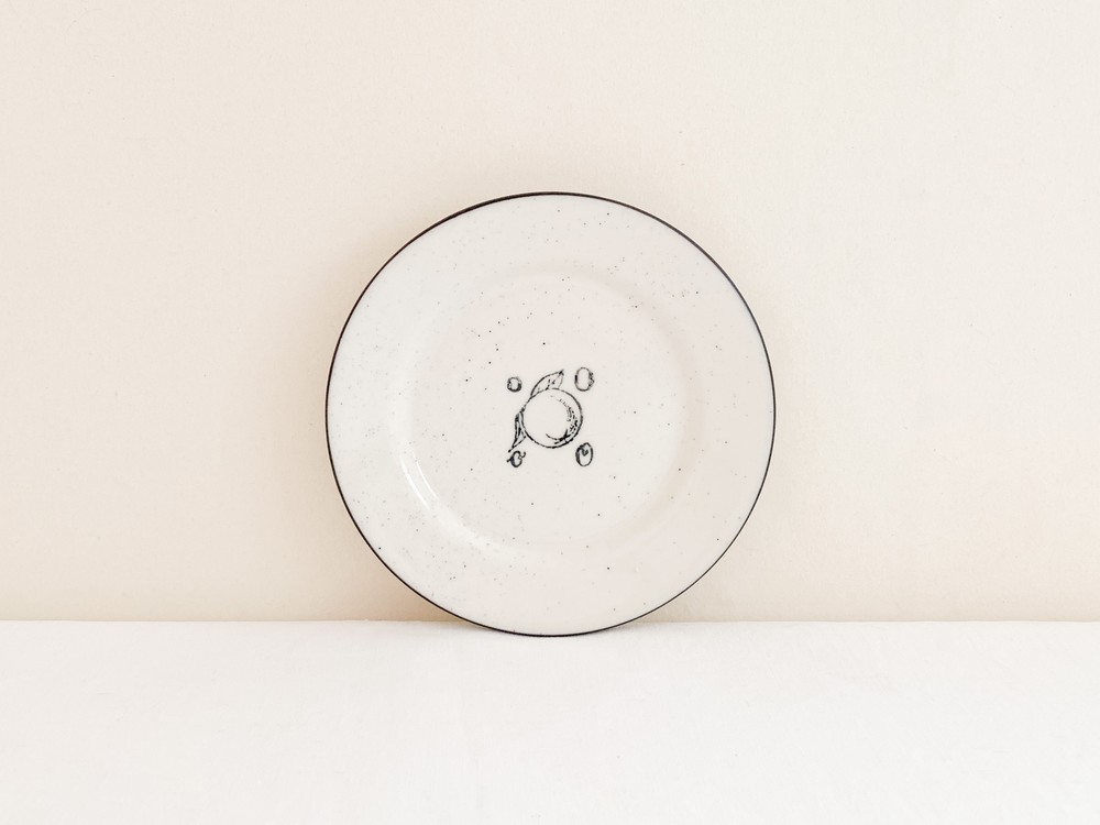 1930년대 프랑스에서 만들어진- 아이들의 알파벳공부를 위한 스탬프를 모티브로 제작된 둥근접시입니다. 여러용도로 편하게 사용하기에 알맞은 스톤웨어를 소재로 만들어진 접시는, 몰드를 사용해 모양을 만들어내고, 여러번에 걸쳐 결을 다듬어낸 후 무늬와 유약을 입혀 오랜시간 동안 구워내는 과정을 동해 완성이 됩니다. 제품이 만들어지는데에는, 프랑스 Anneyron지역의 순도높은(제작의 편리성을 위해 섞이게 되는 흙과 물이외의 물질이 섞이지 않음을 뜻합니다) 흙과 유약 그리고 화학제품이 첨가되지 않은 안료가 사용됩니다. 둥글고 단정한 선으로 빚어진 접시의 겉면에는 바살트를 재료로한 스페클무늬가 입혀져 있으며, 가장자리에는 따스한 결의 줄무늬가 가지런히 그려졌습니다. 접시의 한 가운데에는, 오렌지를 뜻하는 프랑스어 Orange의 O가 네 방향에 보여지며, 그 가운데에는 탐스러운 오렌지의 모습이 스탬핑 되어있습니다. 간결한 꾸밈과 스탬프 특유의 자연스런결에서 잔잔한 여운이 전해집니다. 정성을 담아 준비한 작은 디저트를 담아내는 그릇으로, 다정한 식사시간을 위한 그릇으로 사용하기에 잘 어울리며- 공간을 아름답게 채워주는 오브제로 두기에도 알맞습니다.