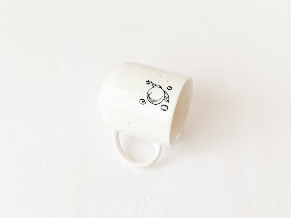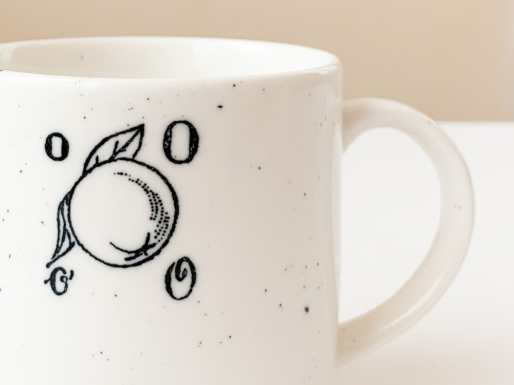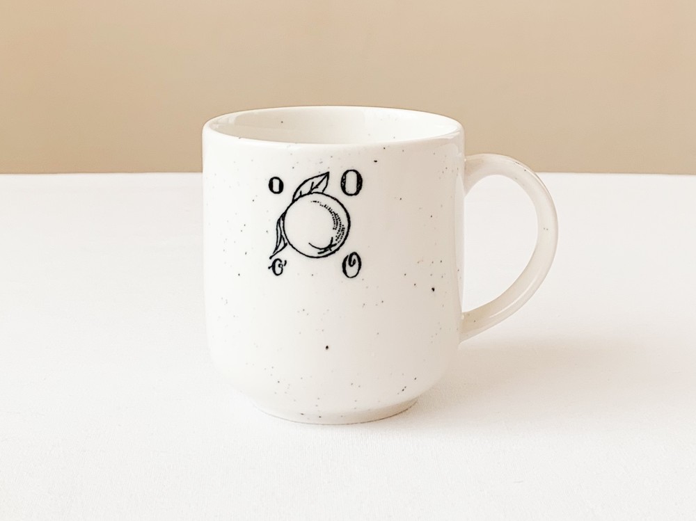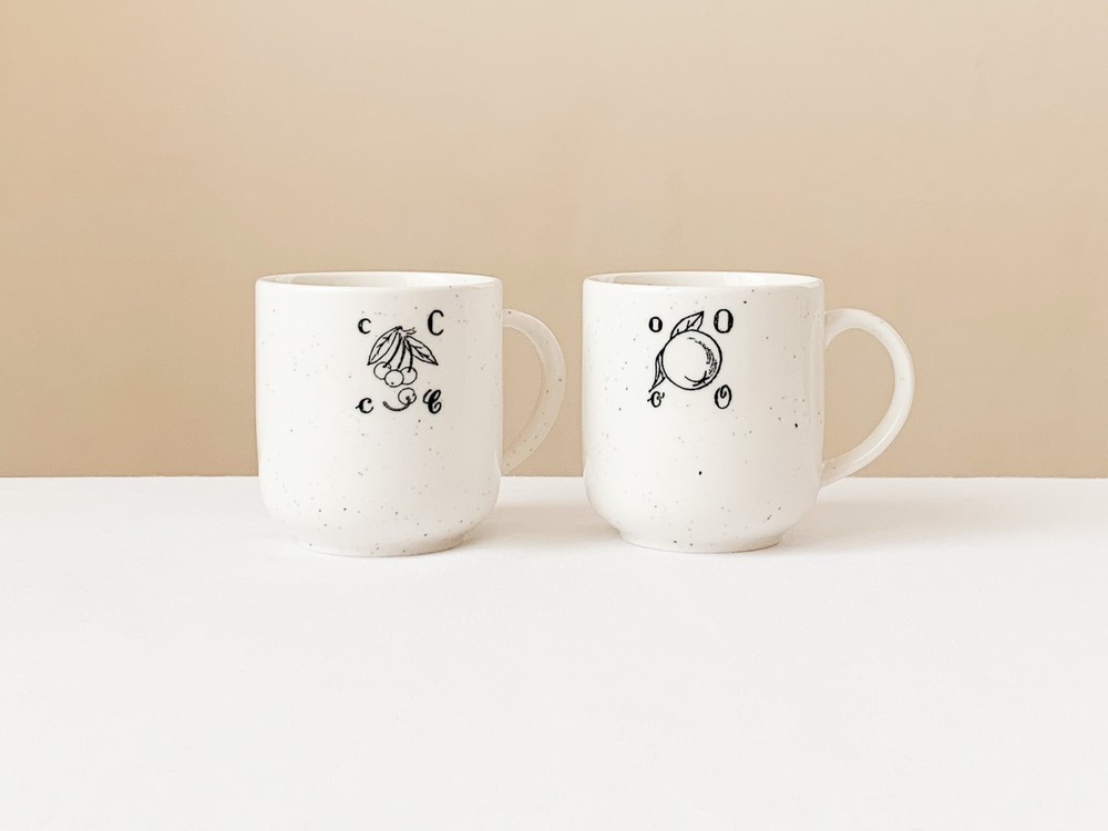 1930년대 프랑스에서 만들어진- 아이들의 알파벳공부를 위한 스탬프를 모티브로 제작 된 찻잔입니다. 여러용도로 편하게 사용하기에 알맞은 스톤웨어를 소재로 만들어진 찻잔은- 몰드를 사용해 모양을 만들어내고, 여러번에 걸쳐 결을 다듬어낸 후 무늬와 유약을 입혀 오랜시간 동안 구워내는 과정을 동해 완성이 됩니다. 제품이 만들어지는데에는, 프랑스 Anneyron지역의 순도높은(제작의 편리성을 위해 섞이게 되는 흙과 물이외의 물질이 섞이지 않음을 뜻합니다) 흙과 유약 그리고 화학제품이 첨가되지 않은 안료가 사용됩니다. 둥글고 단정한 선으로 빚어진 잔의 겉면에 바살트를 재료로한 스페클무늬가 고르게 입혀져 있으며, 한켠에는 체리와 오렌지그림과 함께 각문양을 뜻하는 프랑스어 단어의 첫 번째 철자로 구성 된 스탬프 패턴이 보여집니다. 간결한 꾸밈과 스탬프 특유의 자연스런결에서 잔잔한 여운이 전해집니다.
