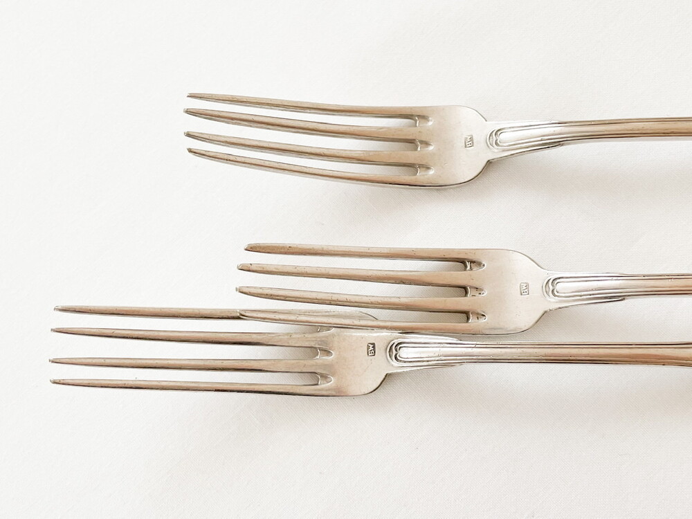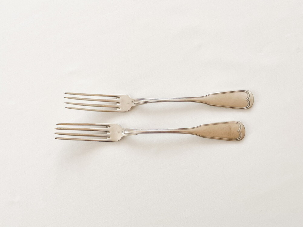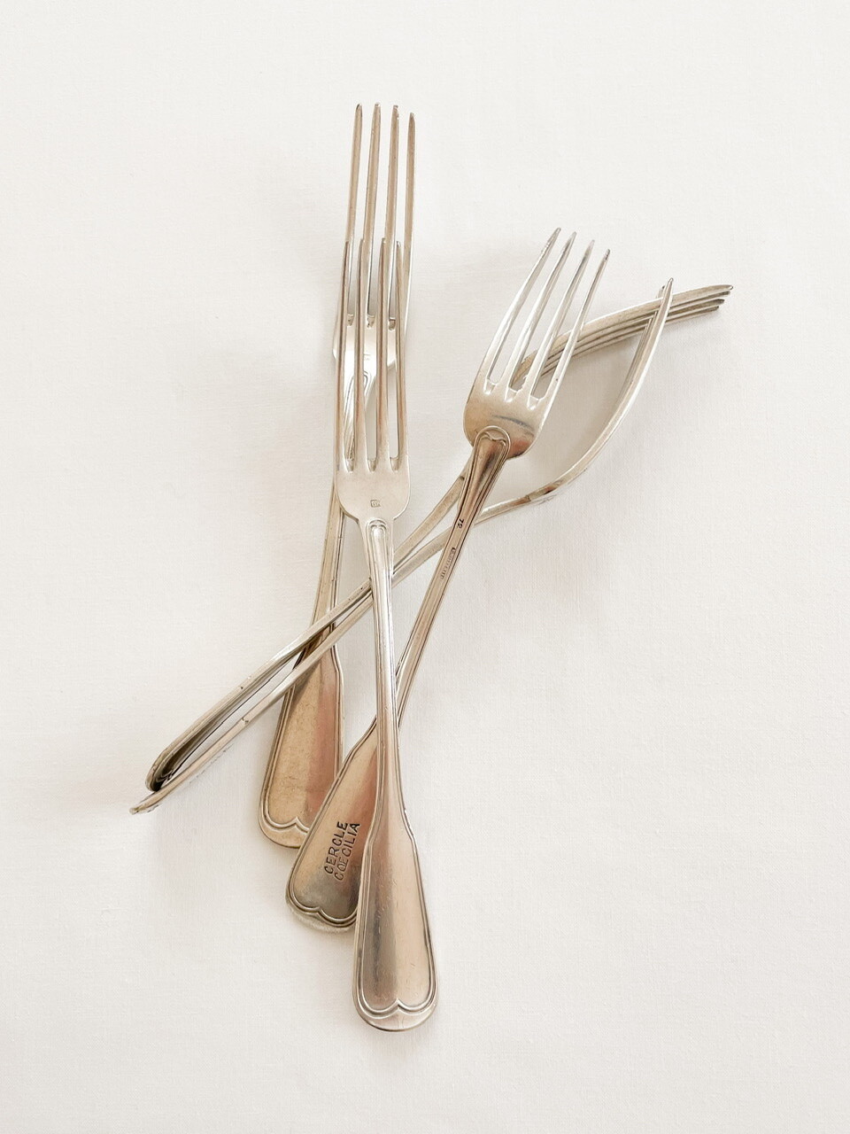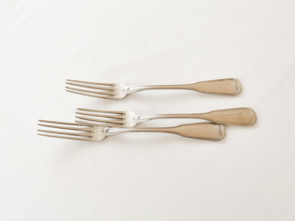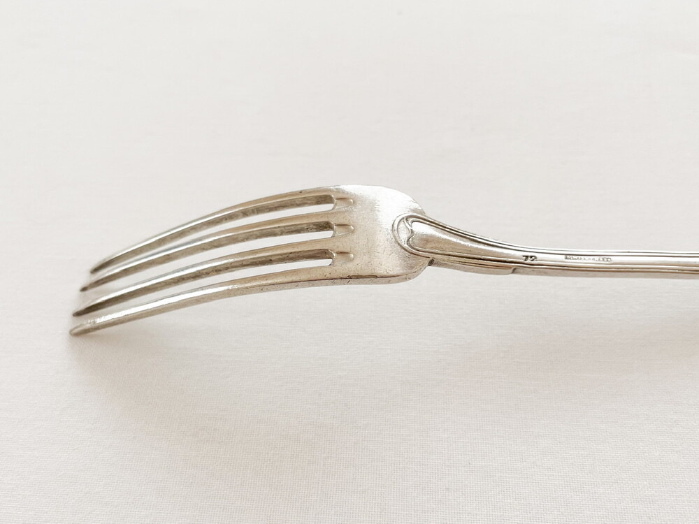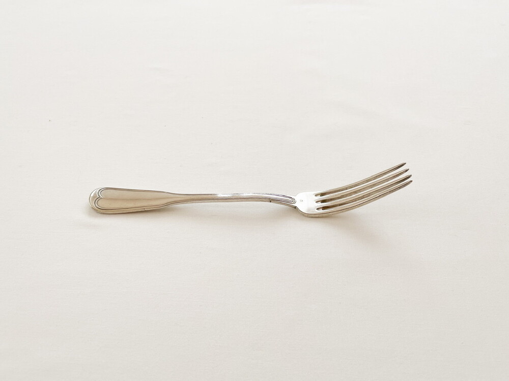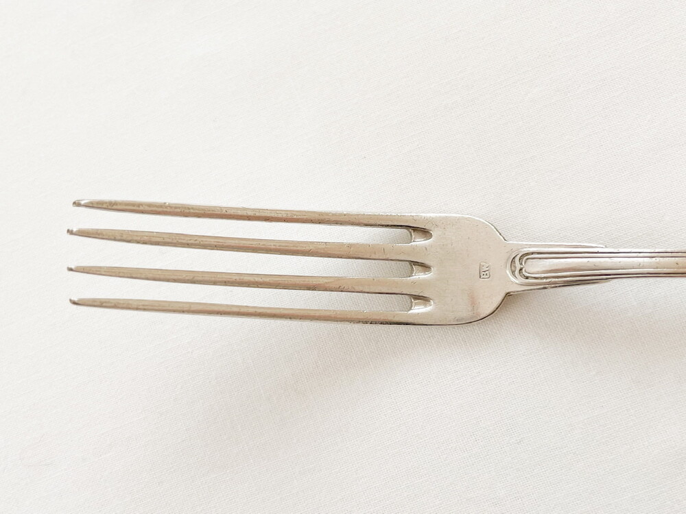 wiskemann은 1900년대 초 벨기에의 엔트워프에서 시작 된 실버스미스입니다. 스틸과 실버 합금을 소재로 플랏웨어와 티웨어, 실내장식을 위한 물건들을 제작했습니다. 스틸의 단단함과 영속성, 은의 고운 질감과 화사한 빛이 함께 담길 수 있도록 재료를 탐구하고 소재의 아름다움을 한껏 담아낼 수 있는 모습을 찾기위해 아끼지 않은 시간으로부터 완성된 가치를 가지고 있는 브랜드 입니다. 소개해드리는 제품은 1930년대에 제작된 케이크포크 입니다. Coecilia가를 위해 만들어진 제품으로, 고전을 바탕으로하지만 정해진 비율에서 약간의 변주를 더해 완성된 세련된 모습을 가지고 있습니다. 고운빛을 담아내고 있는- 가늘고 길게 뻗어있는 네 개의 프롱, 가느다란 선으로 장식된 넓은 핸들이 매우 아름답습니다. 비교적 넉넉한 크기의 제품으로 식사시간의 식기로 사용하기에 무리가 없으며, 만들어질때 떠올려졌을 모습처럼 티테이블에 놓는 디저트 포크로 사용하기에 잘 어울립니다.