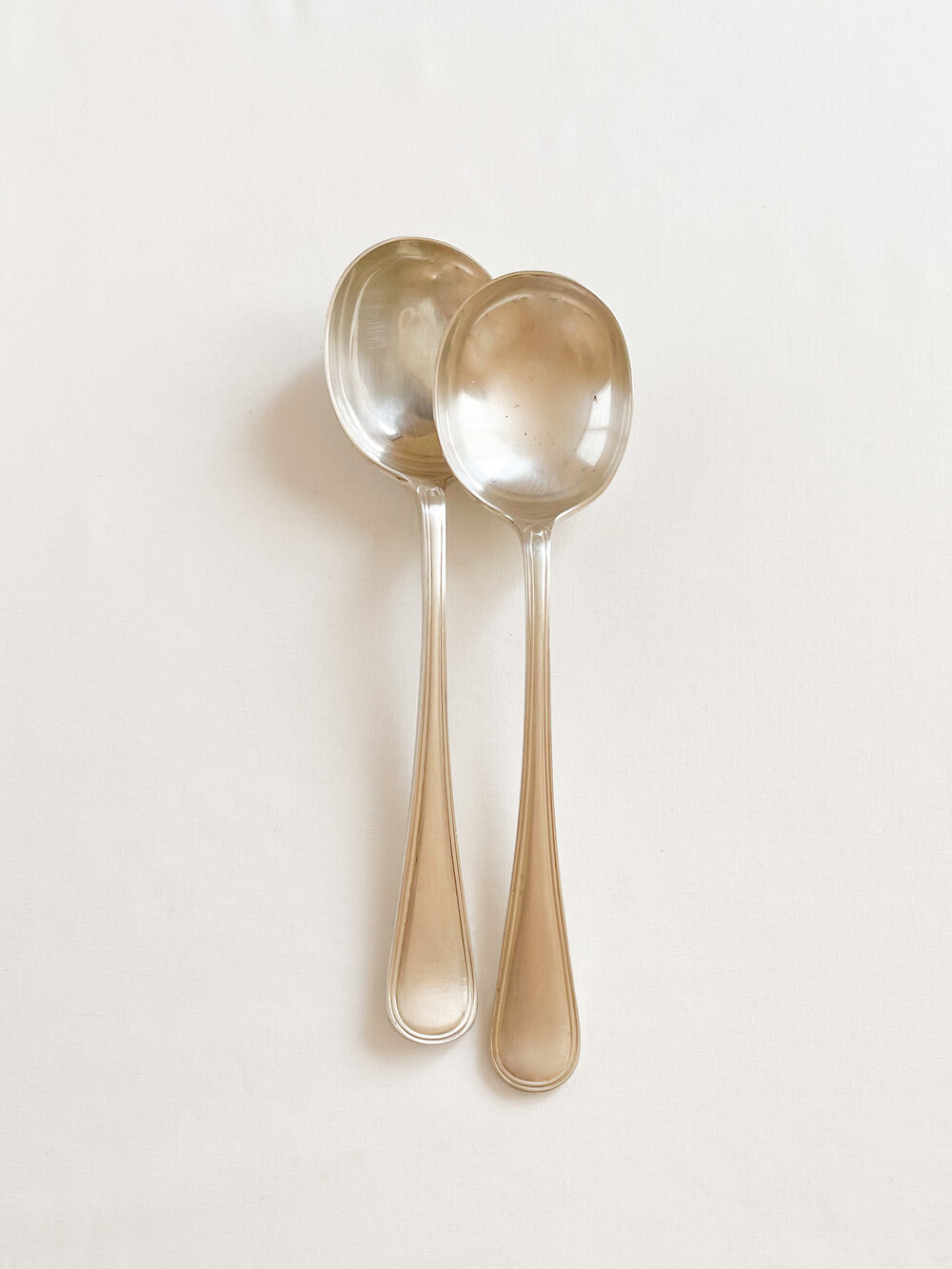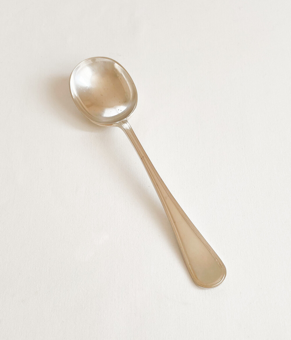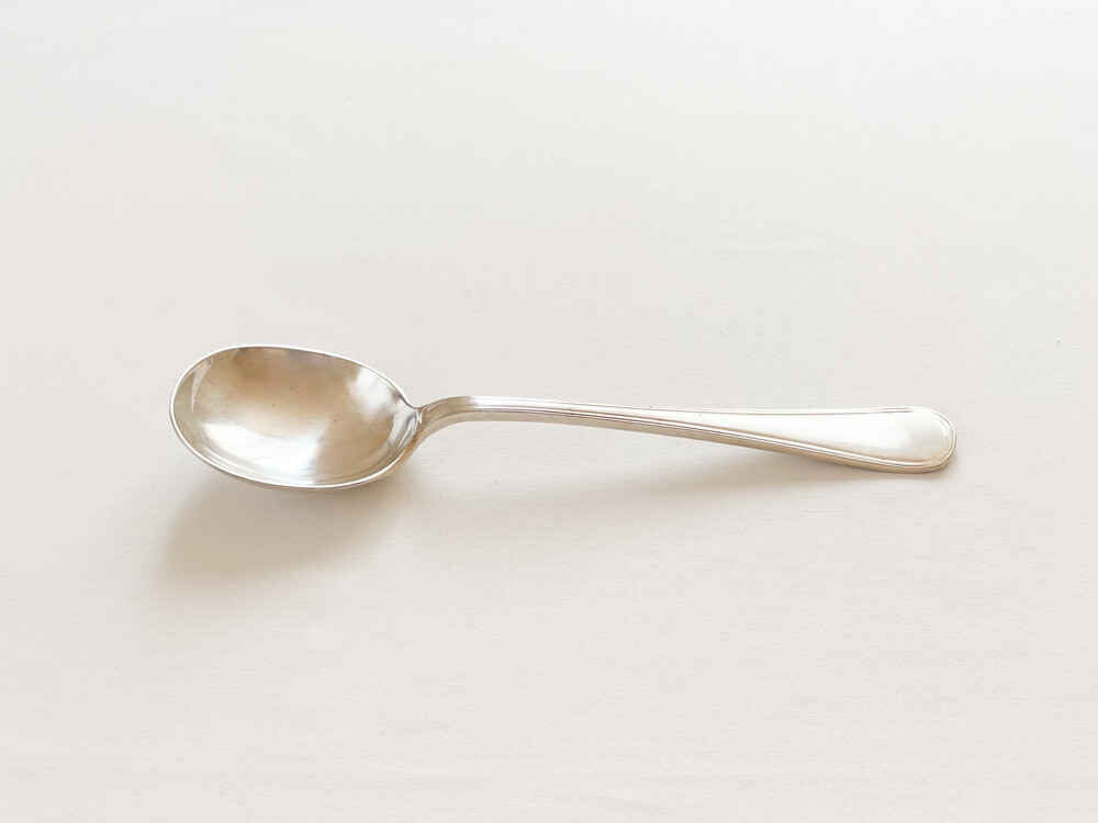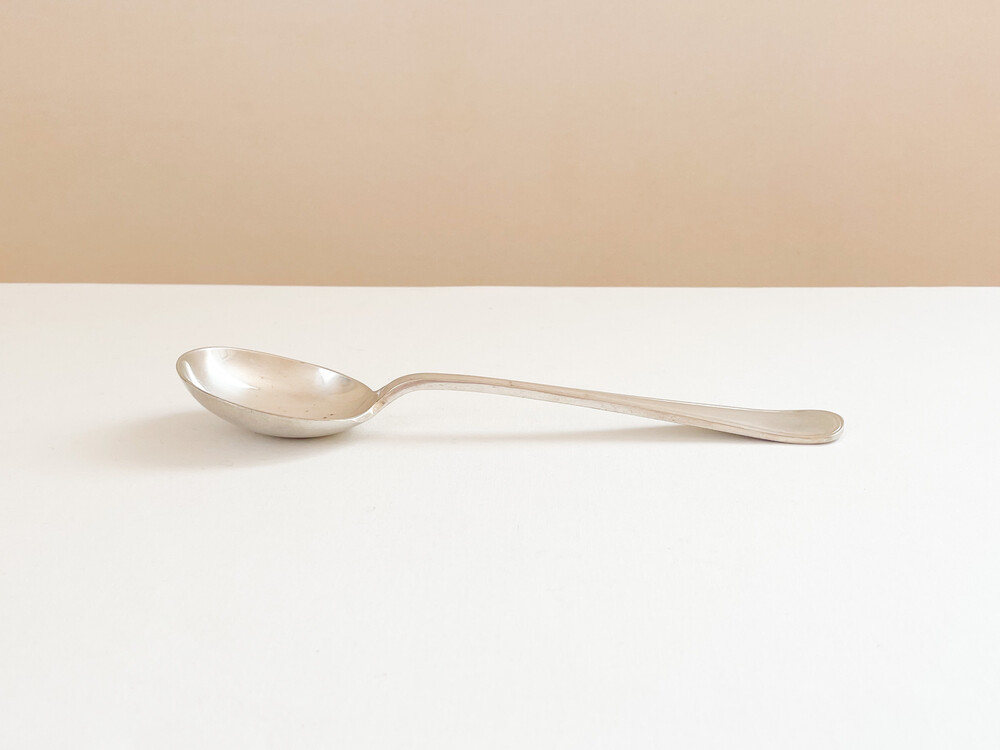 엘킹톤은 1800년대 초 엘킹톤 형제에 의해 버밍엄에서 시작 된 실머스미스입니다. 아주 정교한 실버-실버플레이팅 테이블웨어들로 일찍이 로열워런티를 가지게 되며 왕실의 식기를 제작하고 V&A의 꾸밈과 소장품을 위한 실버웨어들을 만들어내며 명성을 단단히 합니다. 넓은 카테고리와 일정한 품질의 제품들로 대중적인 인기를 가지게 되었으며 garrard mappin & web같은 영국의 실버웨어 브랜드를 키워낸 것으로 기록되어있기도 합니다. 소개해드리는 제품은 1930년대에 만들어진 서빙스푼입니다. 손에들었을때 견고함이 전해지는 묵직함을 가지고 있으며, 니켈실버에 순은을 두텁게 입힌 실버플레이티드를 소재로합니다. 엘킹톤 고유의 가늘고 긴- 우아한 비율이 보여집니다. 사각형을 닯은 동그라미의 부드러운 실루엣을가진 보울, 단정한 둥근면으로 다듬어진 핸들로 모양을 이룹니다. 고전적인 소재와 세련된 우아함이 스며있는, 특별한 아름다움을 간직한 제품입니다. 샐러드나 파스타보울과 함께 내는 스푼으로, 케이크 서버로 사용하기에 잘 어울립니다.