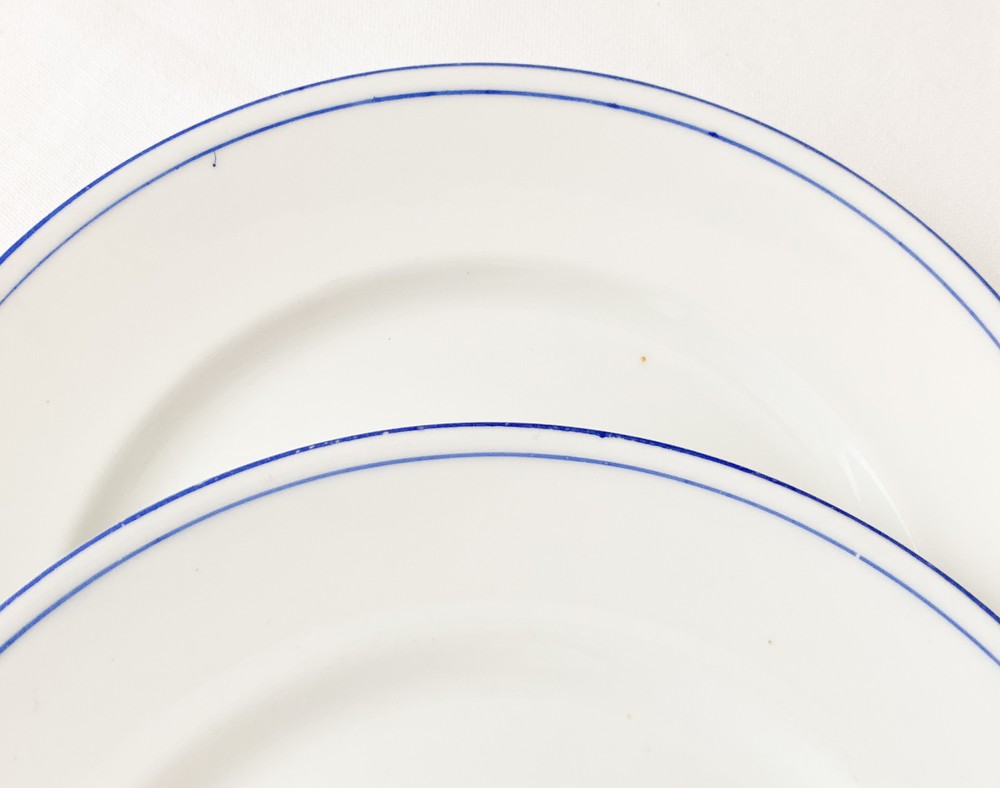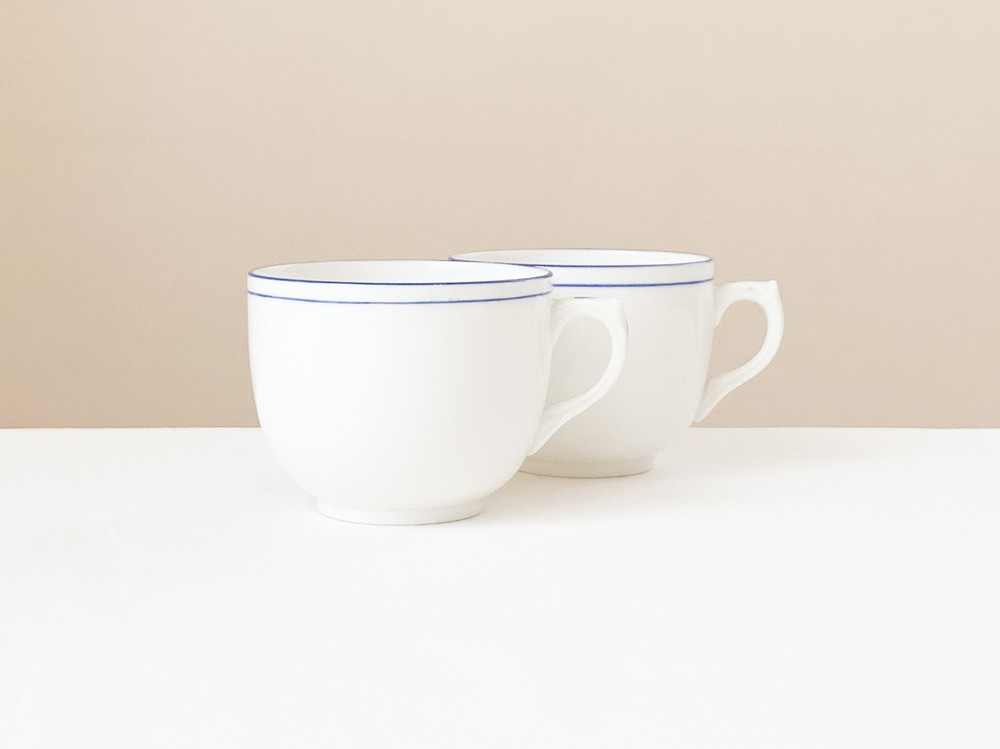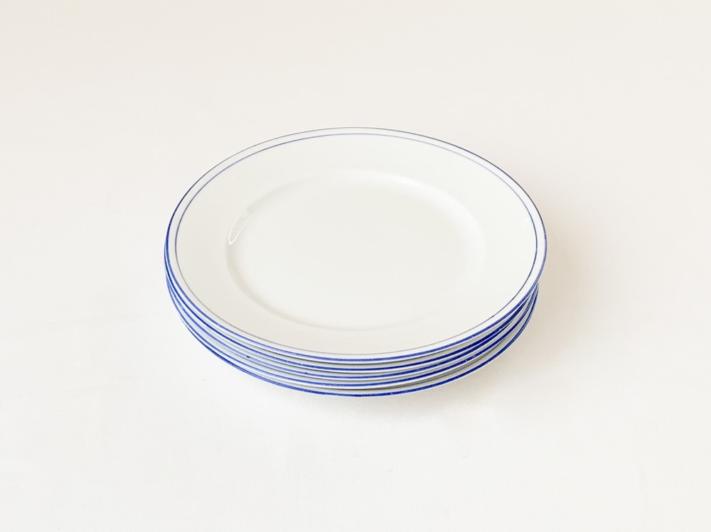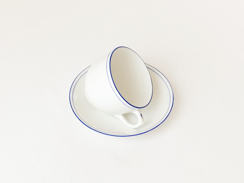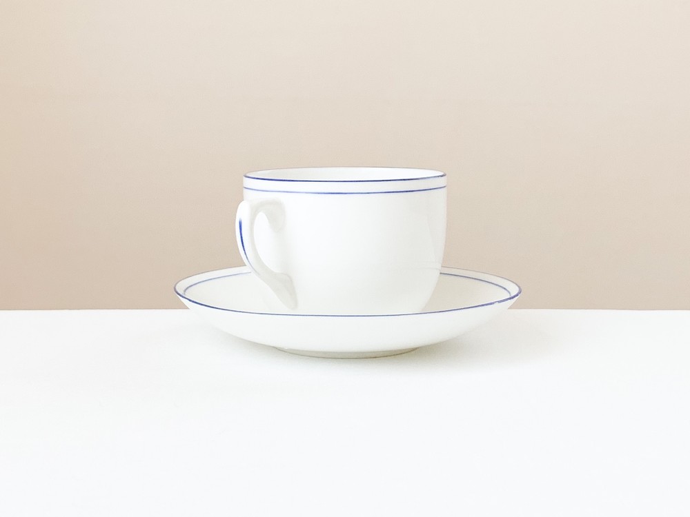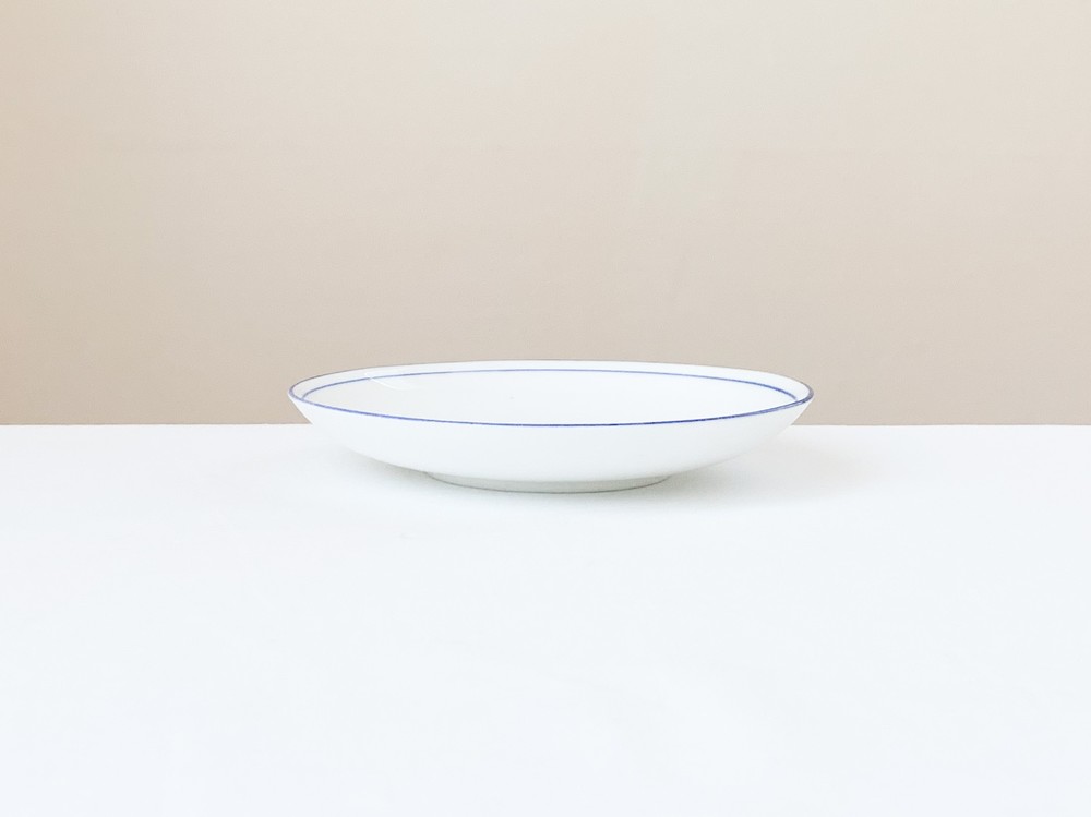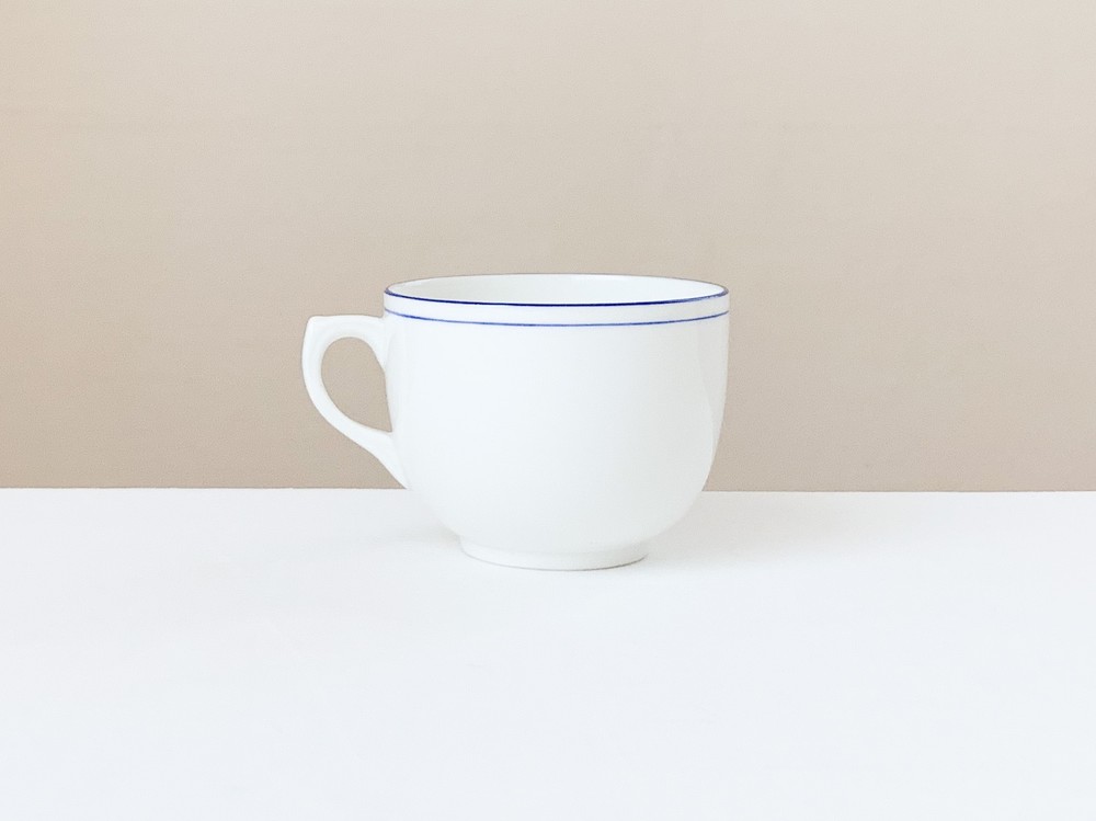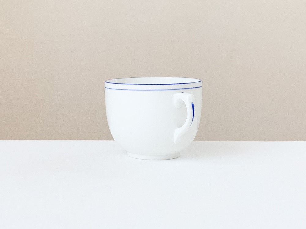 폴리의 빈티지 티트리오 입니다. 폴리는 1850년 스토크온트렌트에서 시작 된 브랜드입니다. 본차이나를 다루는 분야에서 언제나 선두에 있던 웨지우드와 웨지우드의 영향아래 만들어진 켄트와 로빈슨 앤 손스의 뒤를 따라 만들어진 브랜드로- 정교한 소재의 사용과 고전적인 실루엣을 큰 모티프로 두며, 대담하고 화려한 색을 사용한 본차이나를 주로 제작했습니다. 이국적이고 목가적인 분위기가 담겨있지만 고전의 형식을 잘 갖춘 특별한 분위기의 테이블웨어들은 영국과 유럽의 귀족들로 부터 큰 호응을 얻었습니다. 소개해드리는 제품들은 1930년대에 만들어졌습니다. 브랜드가 시작 된 배경을 잘 보여주는 소재인- 밝은 아이보리의 본차이나로 제작 되었으며, 단정하고 풍성한 곡선으로 모양을 갖추고 있습니다. 아름다운 윤을 띄는 오목한 찻잔, 넓직하고 낮게 펼쳐져 더욱 깊은 화사함이 전해지는 케이크 플레이트가 준비되어 있습니다. 각각의 가장자리에는 명도에 약간의 차이를 둔 코발트 블루의 줄무늬가 얌전한 터치로 그려졌습니다. 여유있는 오후 시간의 하이티high tea 테이블을 위한 그릇들로, 잔잔한 아침식사 시간의 간결한 그릇으로 사용하기에 잘 어울립니다.