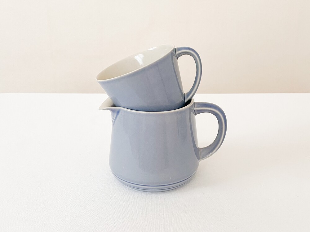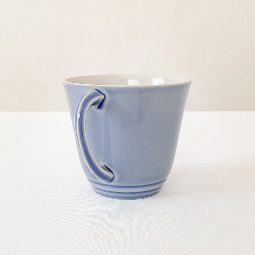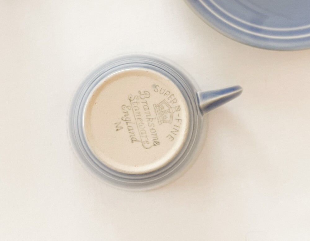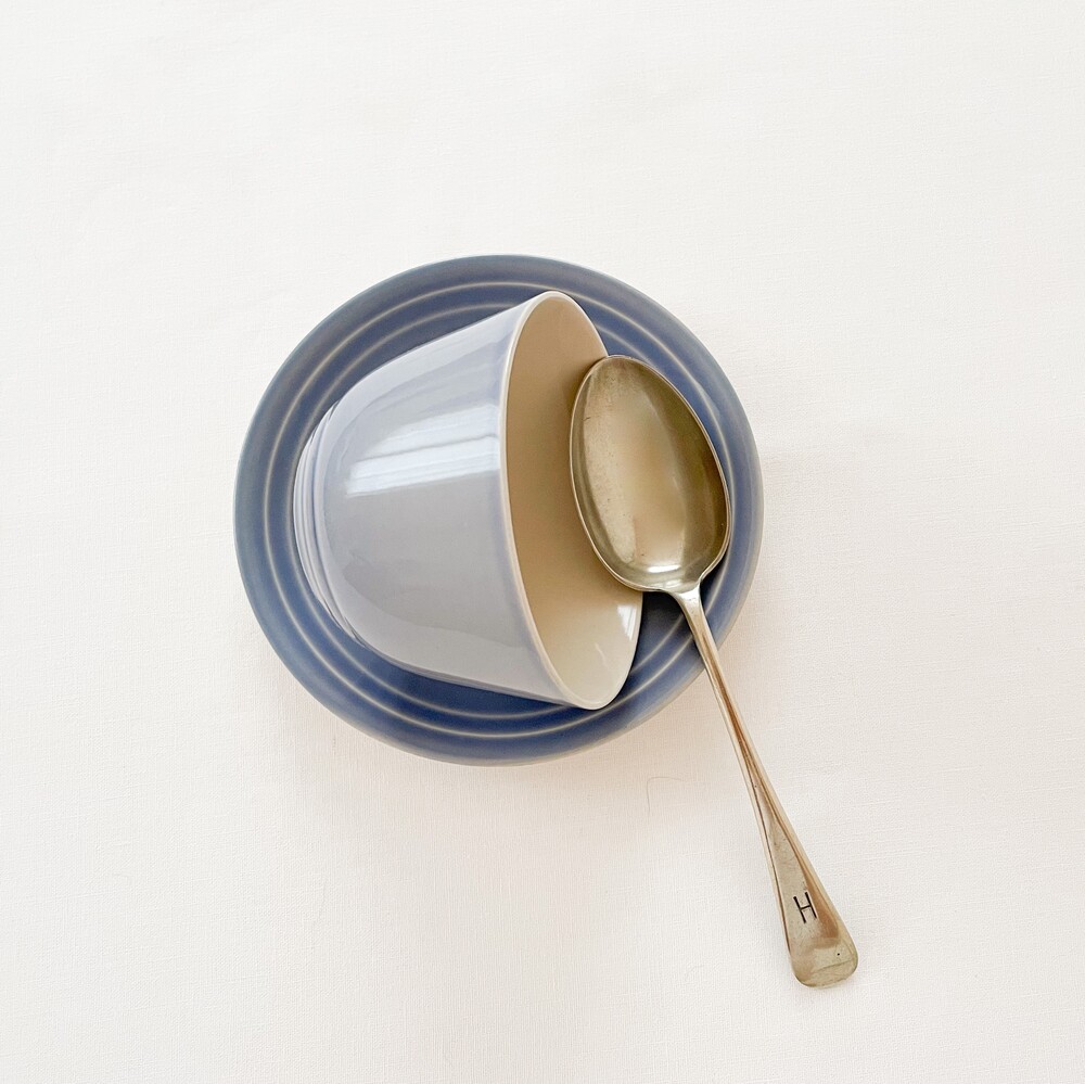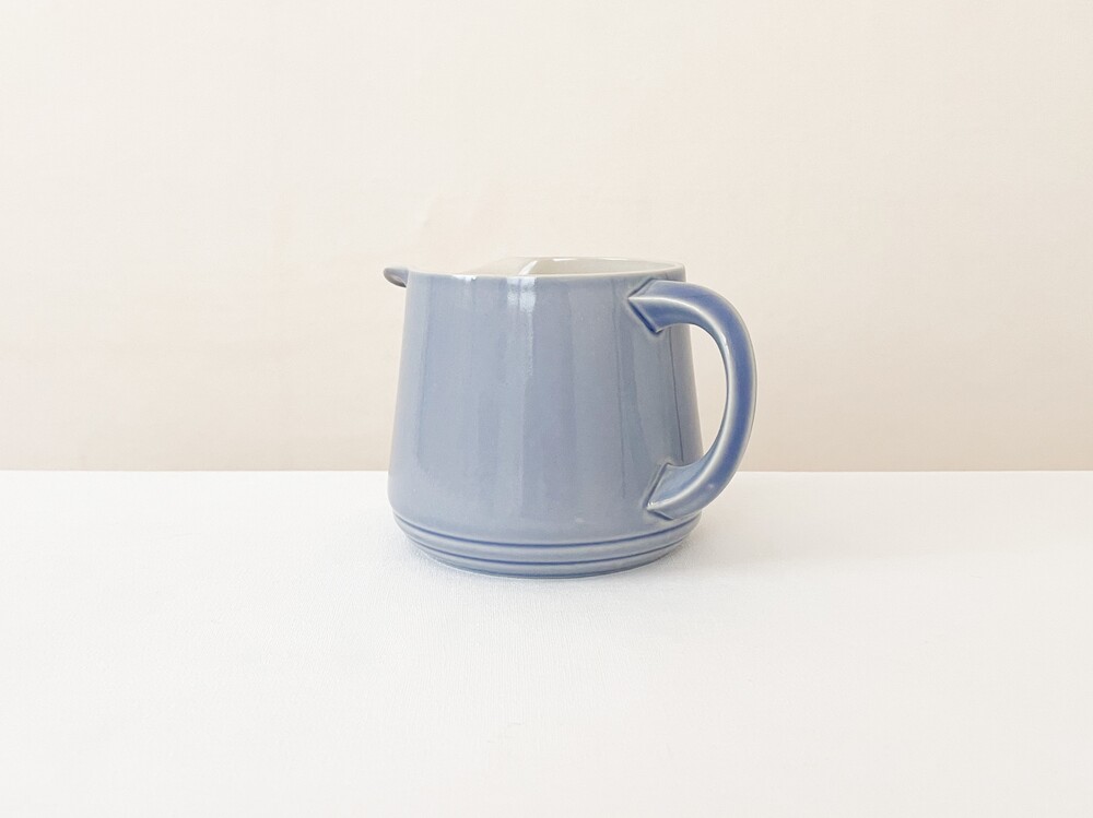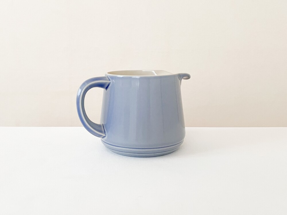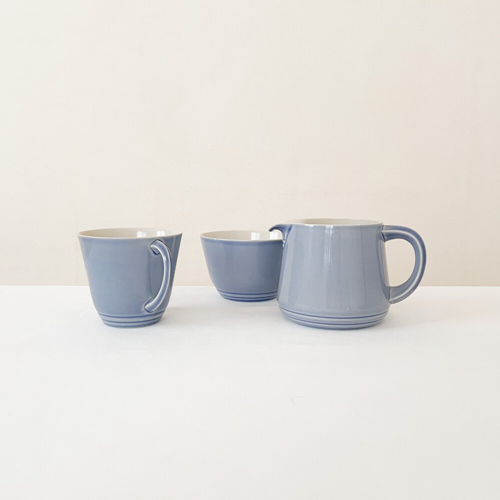브랭섬포터리는 1945년부터 테이블웨어를 만들었던 영국의 브랜드로, 영국 미드센츄리 빈티지의 대표적인 브랜드로 명성이있는 풀의 헤드포터였던 에른스트로부터 설립되었습니다. 가볍고 군더더기없는, 시대의 흐름과 상관이 없을 수 있고 일상적으로 사용할 수 있는포슬린을 만드는 것을 추구하고있습니다. 브랭섬이라는 이름으로 처음 도자기를 만들때부터 현재까지 한 가지의 시리즈에 색의 차이로만 변화를 주는- 한번 사용되었던 색은 다시 만들어내지 않는, 흥미로운 고집스러움을 보여주기도하는브랜드입니다. 소개해드리는 제품들은 1940년대에 만들어진 것으로, 얇고 단단한 포슬린을 소재로합니다. 소재에서 전해지는 가볍지않은 분위기와 단조로운듯 섬세한- 아르데코와 미드센츄리 사이의 아름다운 디테일들이 보여집니다. 경쾌한 곡선들의 레이어로 완성 된 찻잔과 크리머, 티보울이 준비 되어 있습니다. 바탕이 되는 소재고유의 아주 작은 스페클들을 가지고 있는 차분한 베이지의 포슬린과 겉 면에 보여지는 라벤더가 섞인 환한 파랑이 조화롭습니다. 소재와 색, 면과 면이 만들어내는 섬세하고 아름다운 장면들과 함께, 깊은 휴식을 위한 차마시는 시간을 보내기 위한 티웨어로 사용하기에 잘 어울립니다.