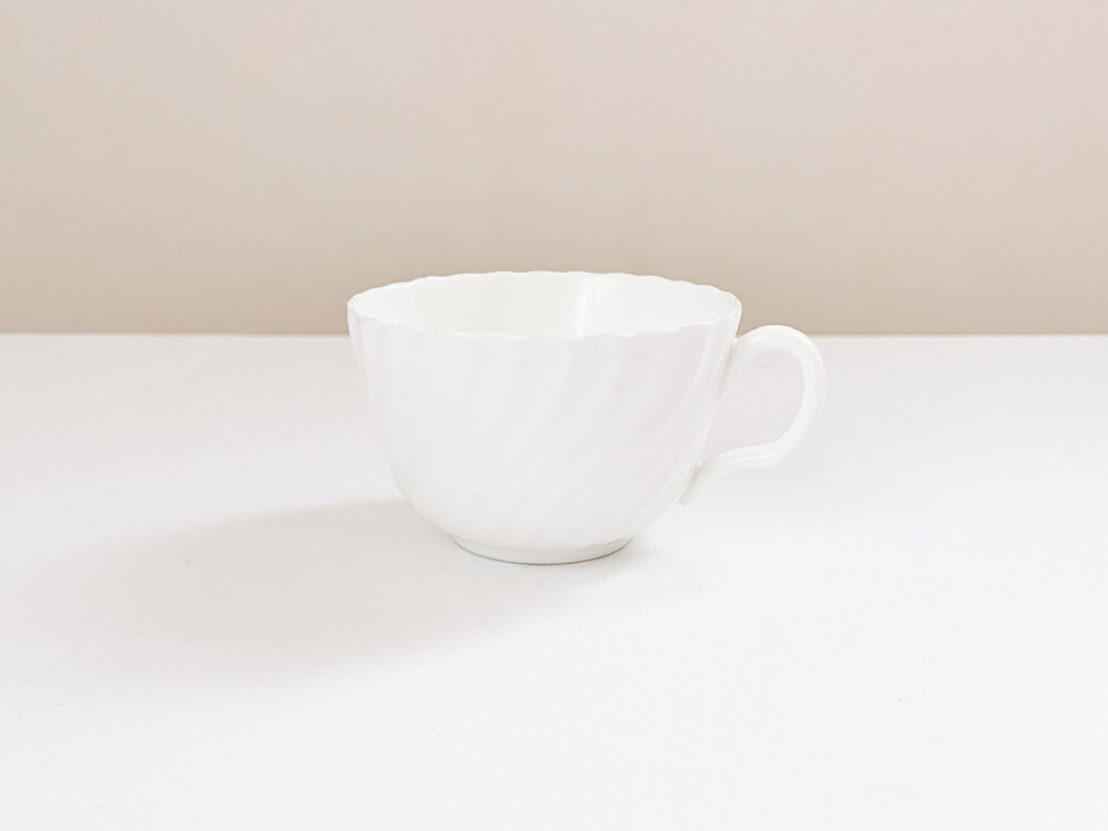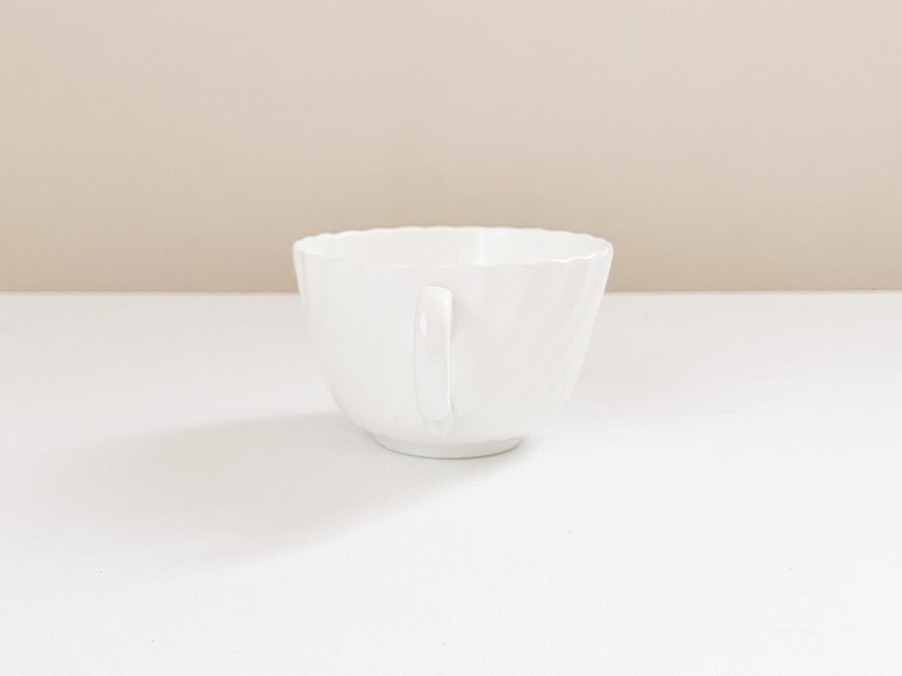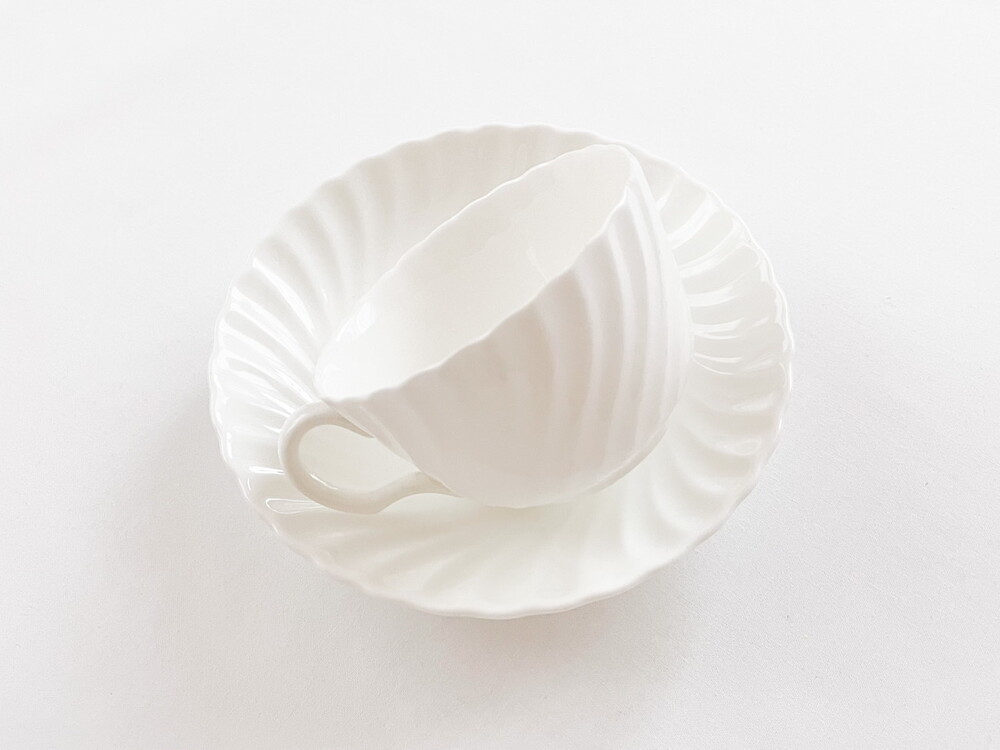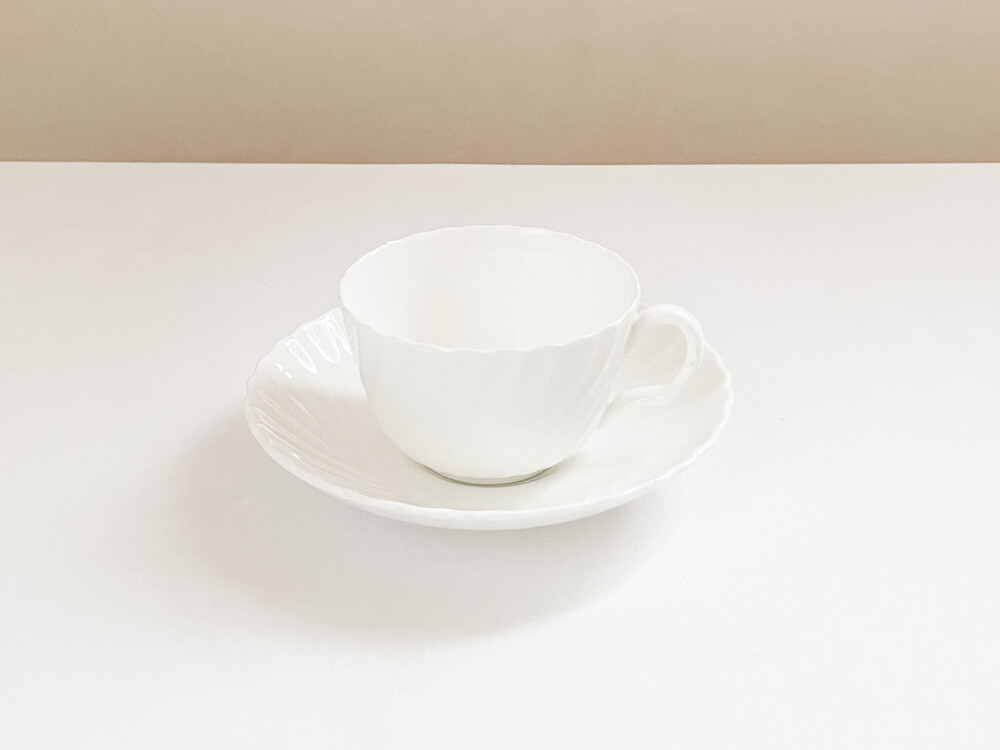 민튼은 1793년 영국도자기의 중심지인 스태포드셔-스토크온트렌트에서 본차이나를 만들기 시작했습니다. 고전의 범위에서 벗어나지 않은 이국적인 분위기를 가진 무늬와 장식으로 꾸며진 본차이나로, 영국과 프랑스를 비롯한 유럽에서 명성을 누렸던 브랜드입니다. 소개해드리는 제품은 1940년대에 제작 된 찻잔세트 입니다. 고운결의 아이보리 본차이나를 소재로하며, 넓직한 동그라미의 찻잔과 위를 향해 오목한 선을 그리는 잔받침으로 구성되어있습니다. 잔의 겉면과 잔받침의 가장자리에는 잔잔하게 일렁이는 물결이나 찰랑거리는 드레스의 아랫단을 떠올리는 레이스 패턴이 장식되어 있습니다. 우아한 무게감과 맑고 환한 분위기를 전해줍니다. 우유를 넣은 커피나 차한잔, 아이스크림이나 요거트를 담아내는 그릇으로 사용하기에 알맞습니다.