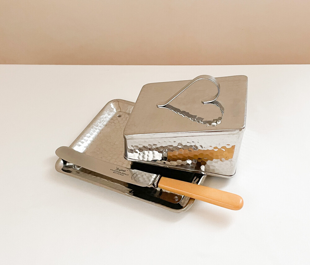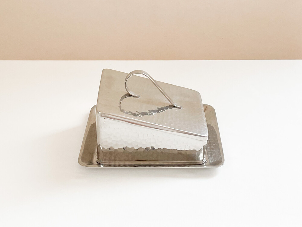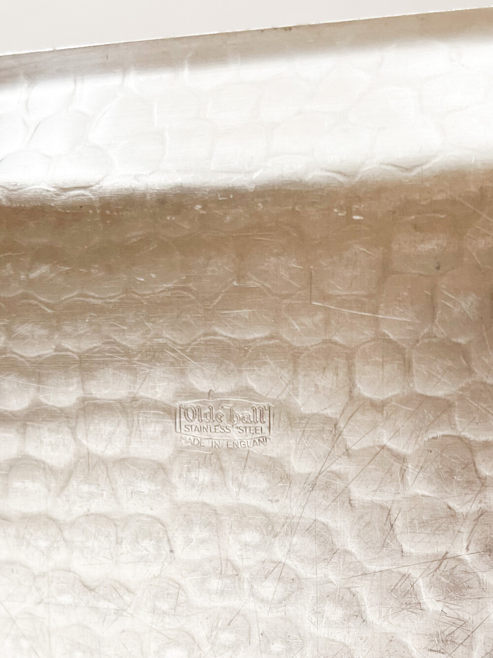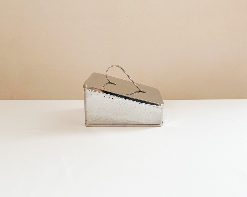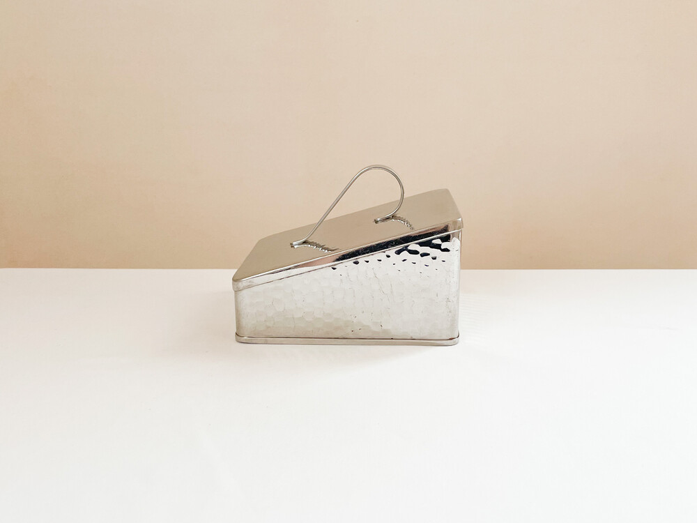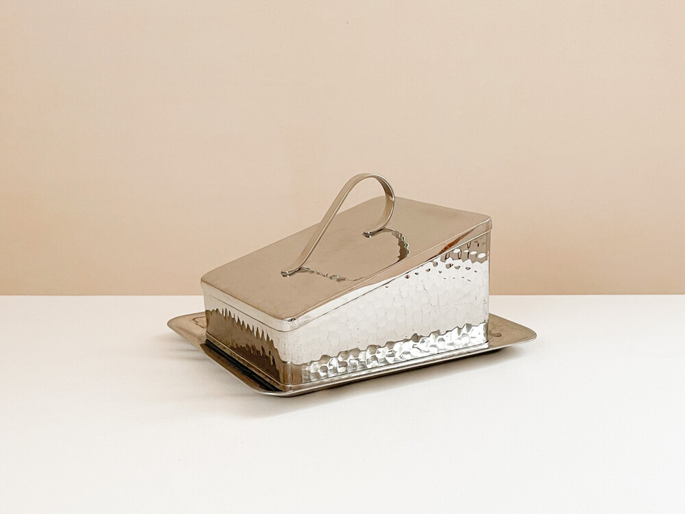 올드홀은 1893년 잉글랜드 버밍엄 근처의 블록스위치에서 탄생한 브랜드입니다. 튼튼하고 간편히 사용할 수 있는 소재에대한 관심과 일상생활에 직접적으로 도움이 될 수 있는 물건들을 만드는것을 추구했습니다. 마당을 가꾸는일과 농사를 위한 하드웨어들을 만드는것으로 시작하여 1900년대 초반에 들어 욕실이나 부엌의 수건걸이나 방문의 손잡이 같은 집안의 물건들로 범위를 넓혔고, 1920년대 후반부터 베이크웨어나 식사시간을 위한 물건들을 제작하기 시작하며 명성을 가지게 됩니다. 1940년대 중반즈음 부터는 이전의 여러가지 시도들로 부터 만들어진, 올드홀 고유의 제품들을 안정적으로 생산하며 지금에도 잘 알려진 올드홀의 모습을 갖춥니다. 소개해드리는 제품은 1940년대 만들어졌던 오리지널 해머드시리즈 중 하나입니다. 묵직하고 두터운 스테인리스스틸 소재로하며- 반듯하고 넓은 트레이와 넉넉한 공간을 가진 돔, 해머드 패턴과 둥근 흐름을 같이하며 전체의 균형을 단단히 만들어주는 핸들로 모양을 이룹니다. 아르누보를 떠올리는 섬세한 디테일과 균일한 망치질로 완성 된- 잔잔한 바람에 반짝이는 물결을 닮은 해머드 패턴이아름다우며, 스테인리스 스틸의 단정함과 유연하고 화사한 장식들이 만들어내는 조화로운 리듬이 보여집니다. 식탁위의 부드러운 버터나 조각 치즈를 위한 그릇으로, 케이크나 비스킷을 보관하는 트레이로 사용하기에 잘 어울립니다.