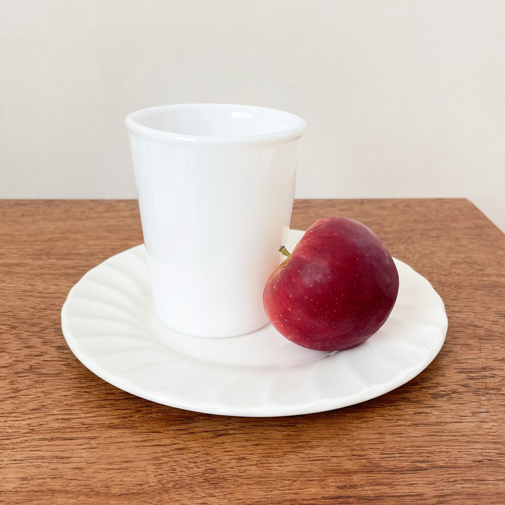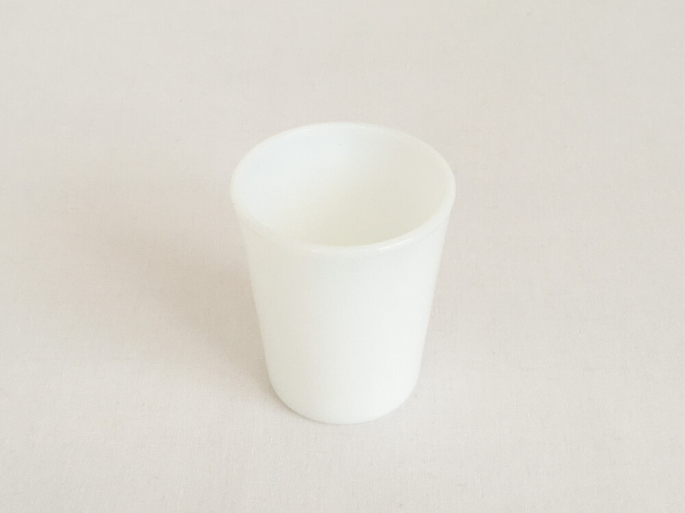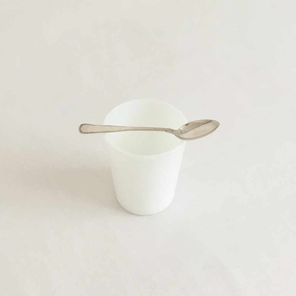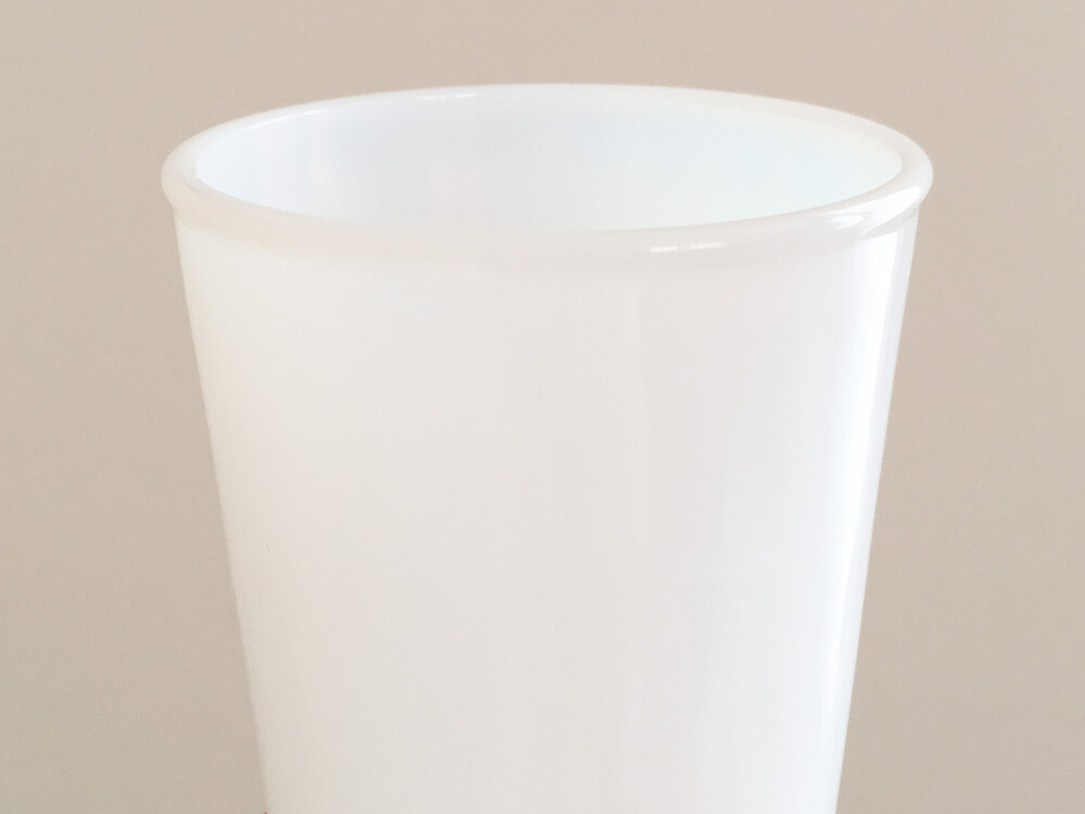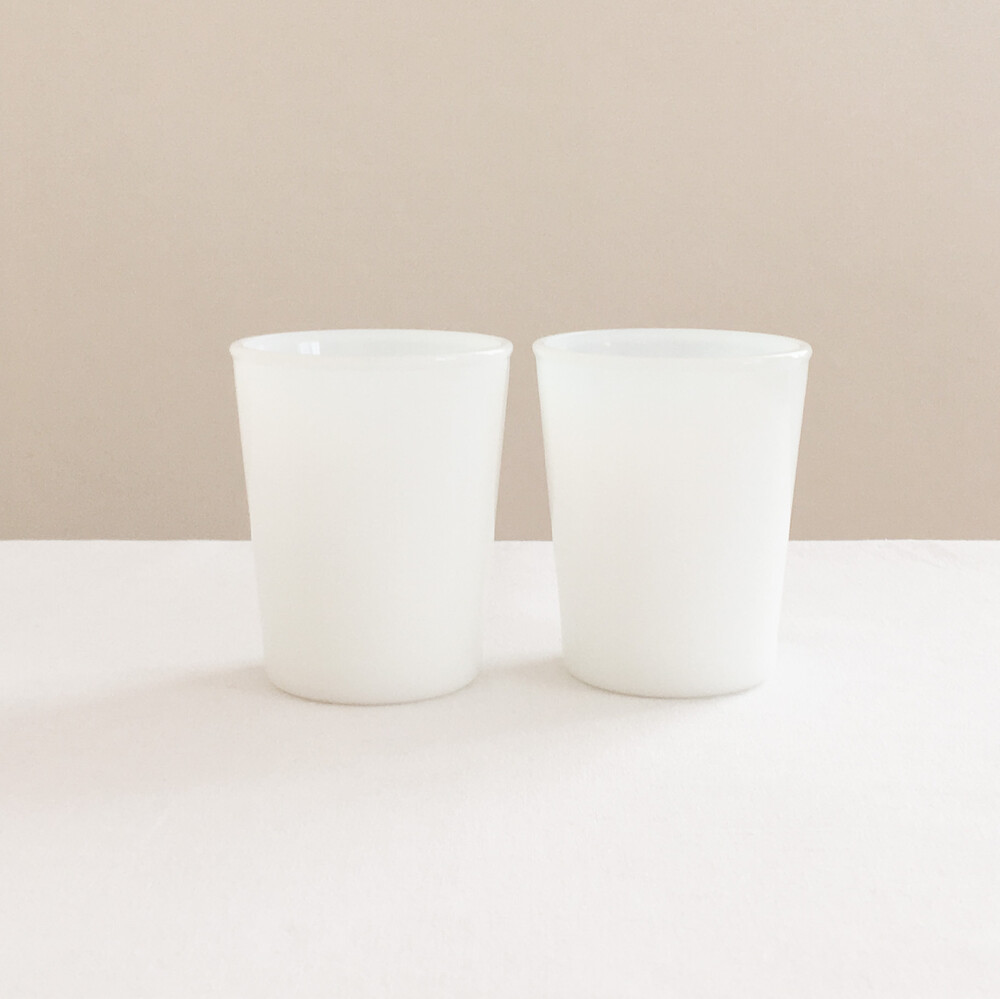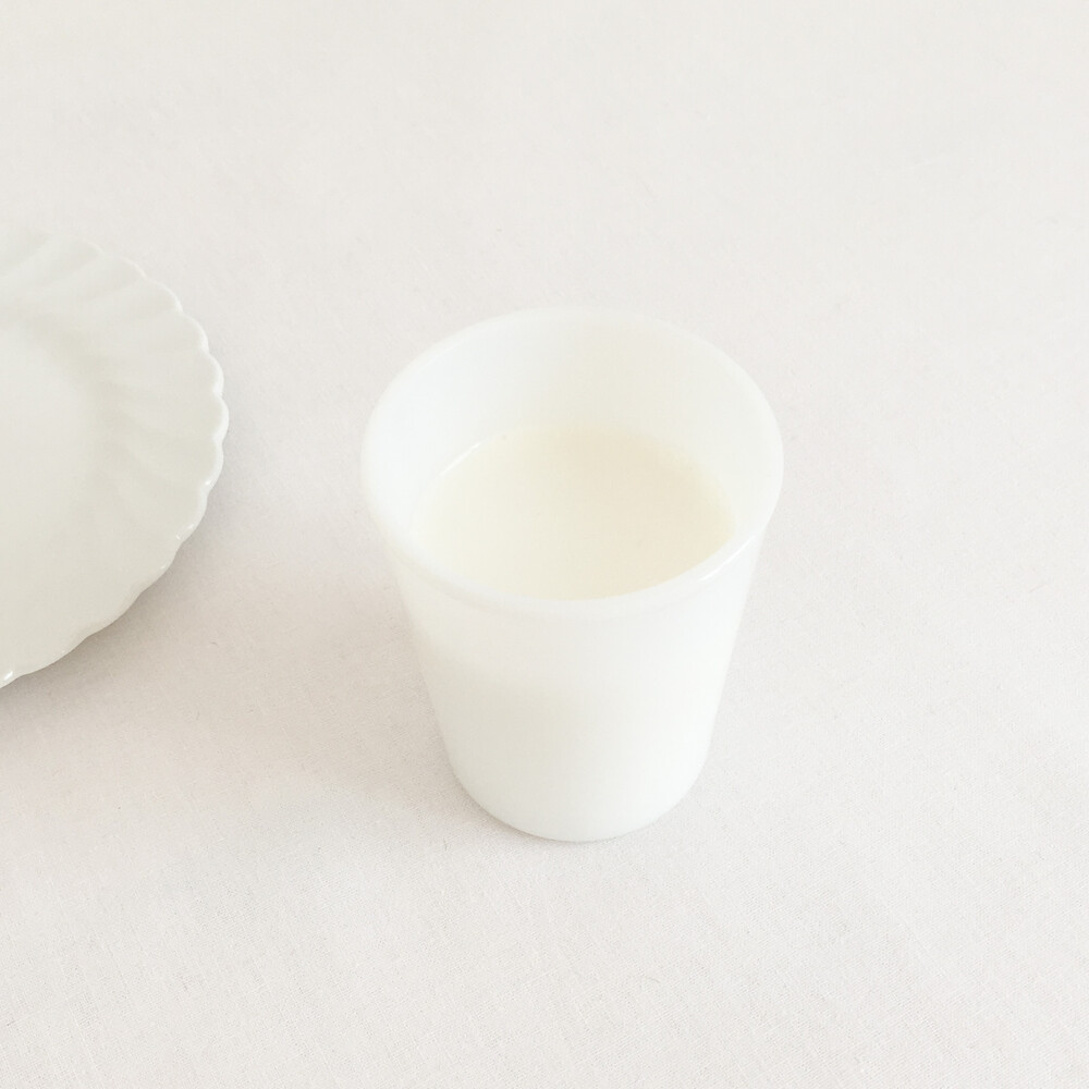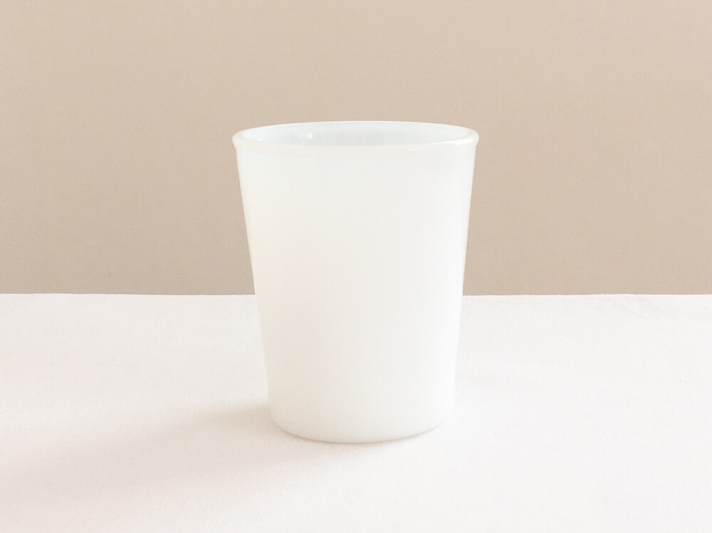 1950년대 프랑스에서 제작된 빈티지 유리컵입니다. 묵직하고 단단한 질감의 오팔린 글라스를 소재로하며, 여리고 부드러운 선으로 이루어진 단정한 실루엣을 보여줍니다. 뽀얀 우윷빛의 반투명유리에는 엷은 푸른빛과 햇빛이 담긴듯 반짝이는 따스한 색이 깃들어있는 컵은- 위를 향할 수록 살짝 넓어지는 반듯한 모양으로 만들어졌으며, 가장자리에는 얕은높이를 가진 둥근면으로 마무리되어 있습니다. 유리컵은 시간과 날씨에 따른 빛의 흐름과 컵안에 담겨진 무언가의 일렁임에 따라 섬세하고 아름다운 변화를 보여줍니다. 화려하고 우아한 소재와 아주 간결하게 표현된 형태의 조화가 매력적인 모습입니다. 선명한색의 주스나 따뜻한 우유를 마시는 유리컵 또는 맑고 짙은 와인을 마시는 편안한 저녁시간의 컵으로, 꽃 한송이를 담아두는 테이블위의 작은 화병으로 사용하기에도 알맞습니다.