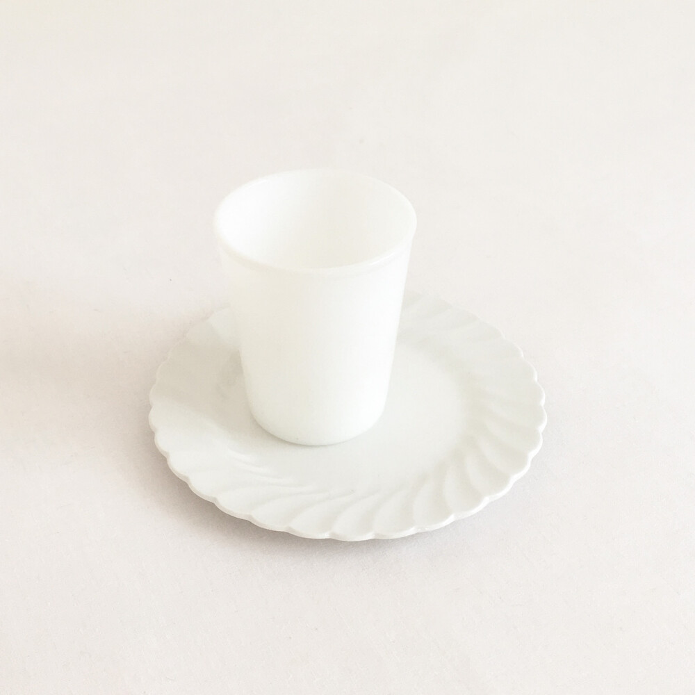 1950년대 프랑스에서 제작된 빈티지 유리컵입니다. 묵직하고 단단한 질감의 오팔린 글라스를 소재로하며, 여리고 부드러운 선으로 이루어진 단정한 실루엣을 보여줍니다. 뽀얀 우윷빛의 반투명유리에는 엷은 푸른빛과 햇빛이 담긴듯 반짝이는 따스한 색이 깃들어있는 컵은- 위를 향할 수록 살짝 넓어지는 반듯한 모양으로 만들어졌으며, 가장자리에는 얕은높이를 가진 둥근면으로 마무리되어 있습니다. 유리컵은 시간과 날씨에 따른 빛의 흐름과 컵안에 담겨진 무언가의 일렁임에 따라 섬세하고 아름다운 변화를 보여줍니다. 화려하고 우아한 소재와 아주 간결하게 표현된 형태의 조화가 매력적인 모습입니다. 선명한색의 주스나 따뜻한 우유를 마시는 유리컵 또는 맑고 짙은 와인을 마시는 편안한 저녁시간의 컵으로, 꽃 한송이를 담아두는 테이블위의 작은 화병으로 사용하기에도 알맞습니다.