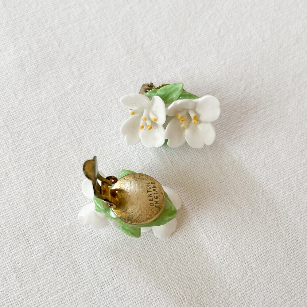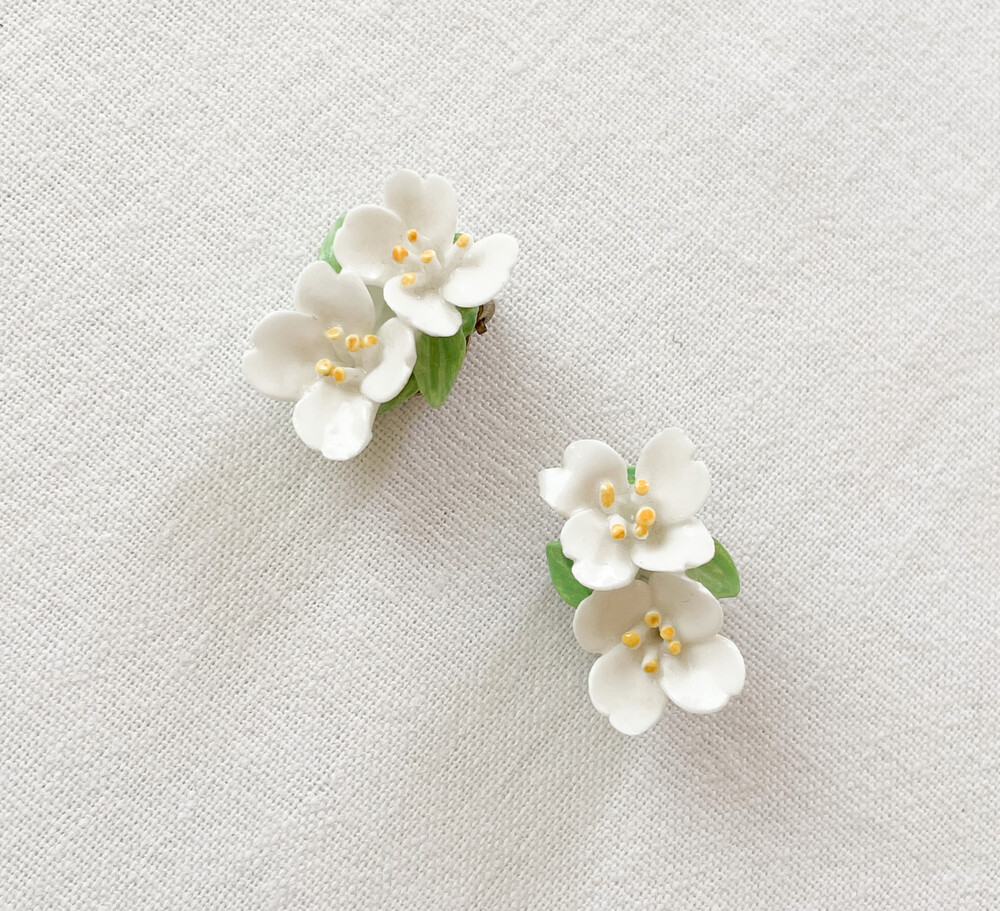 1940s porcelain blooms ear clips