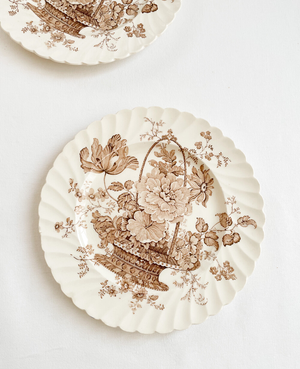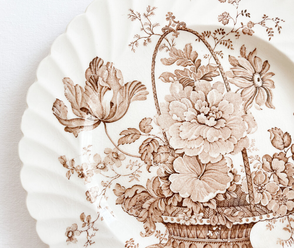 1940s staffordshire england flower basket plate