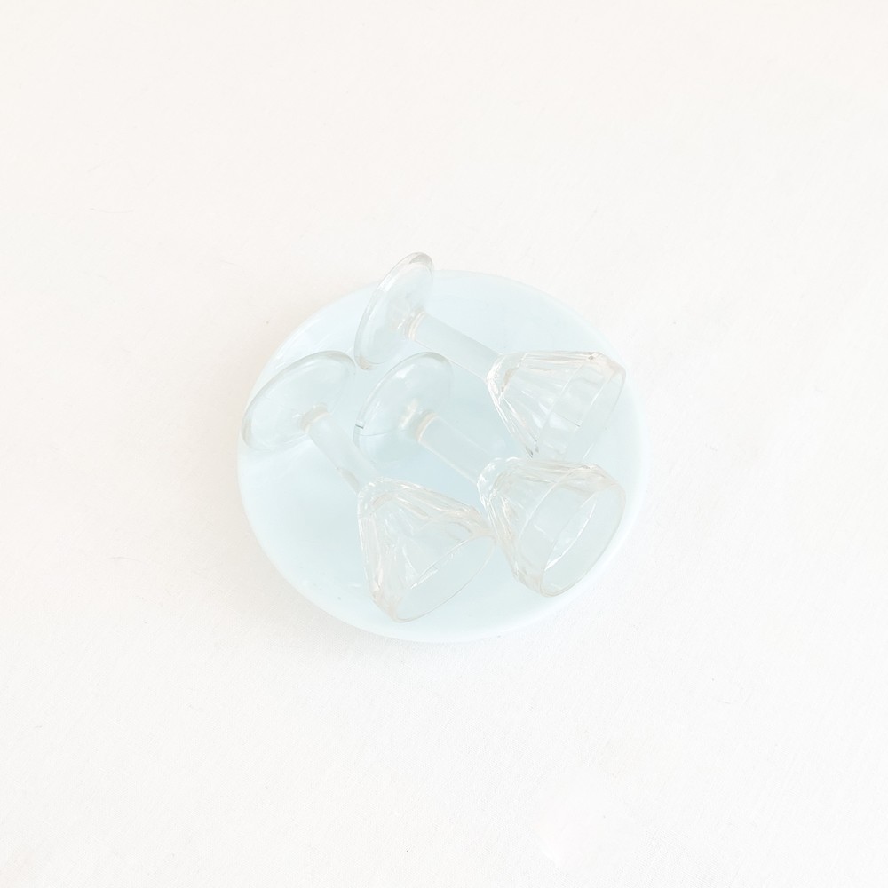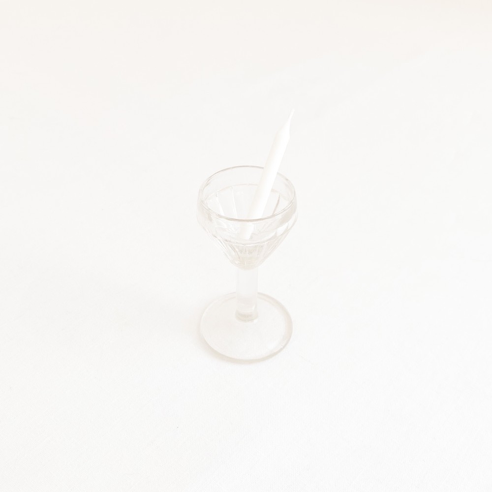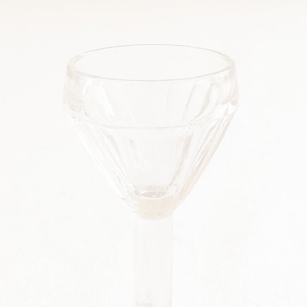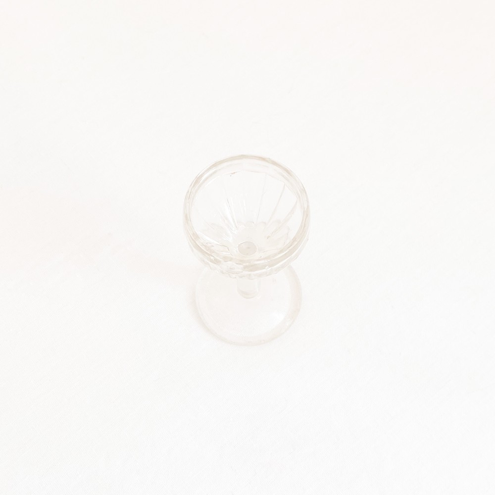 알코록은 1825년, 프랑스 북부지역에서 유리제품들을 제작했던 Arc를 전신으로 하는 브랜드로- 편하게 사용할 수 있는 내구성, 유리가 가지고 있는 고유의 미감, 실용적이며 제너럴한 모습을 가진 유리소재의 테이블웨어를 만들었습니다. 소개해드리는 제품은 1950년대 초반에 만들어진 작은 술잔입니다. 투명하고 도톰한 강화유리를 소재로한 유리컵은 고깔모양의 보울, 기다란 비율의 반듯한 스템, 평평한 동그라미의 베이스로 구성되었습니다. 셰리나 독주를 마시는 숏글라스의 정형적인 모습과 실용적인 소재가 만들어내는 적당한 균형을 살펴볼 수 있습니다. 보울에는 꽃잎을 닮은 가지런한 장식들이 새겨져 유리의 반짝임을 더욱 돋보이게 합니다.