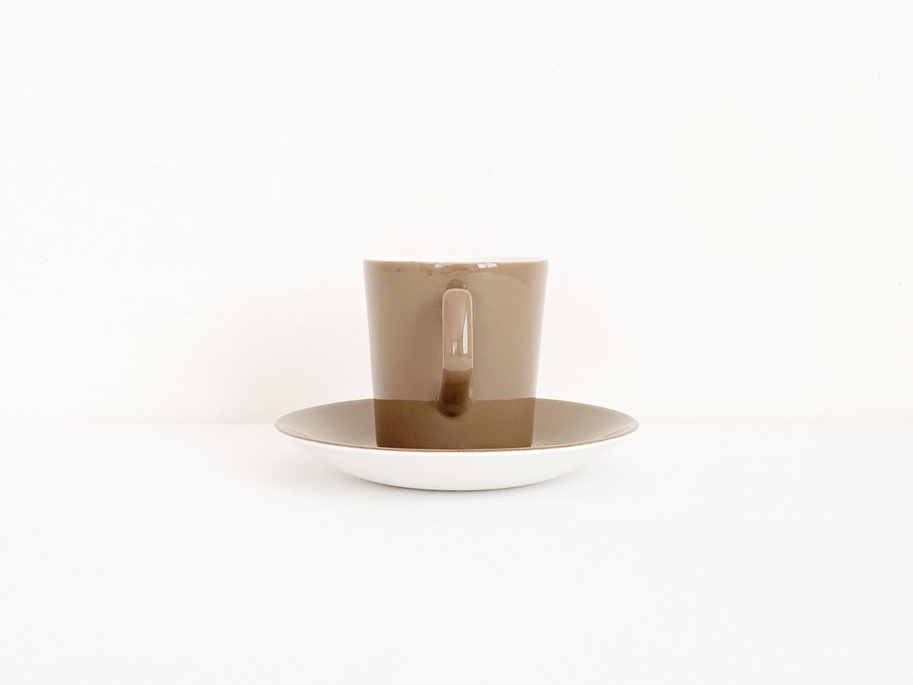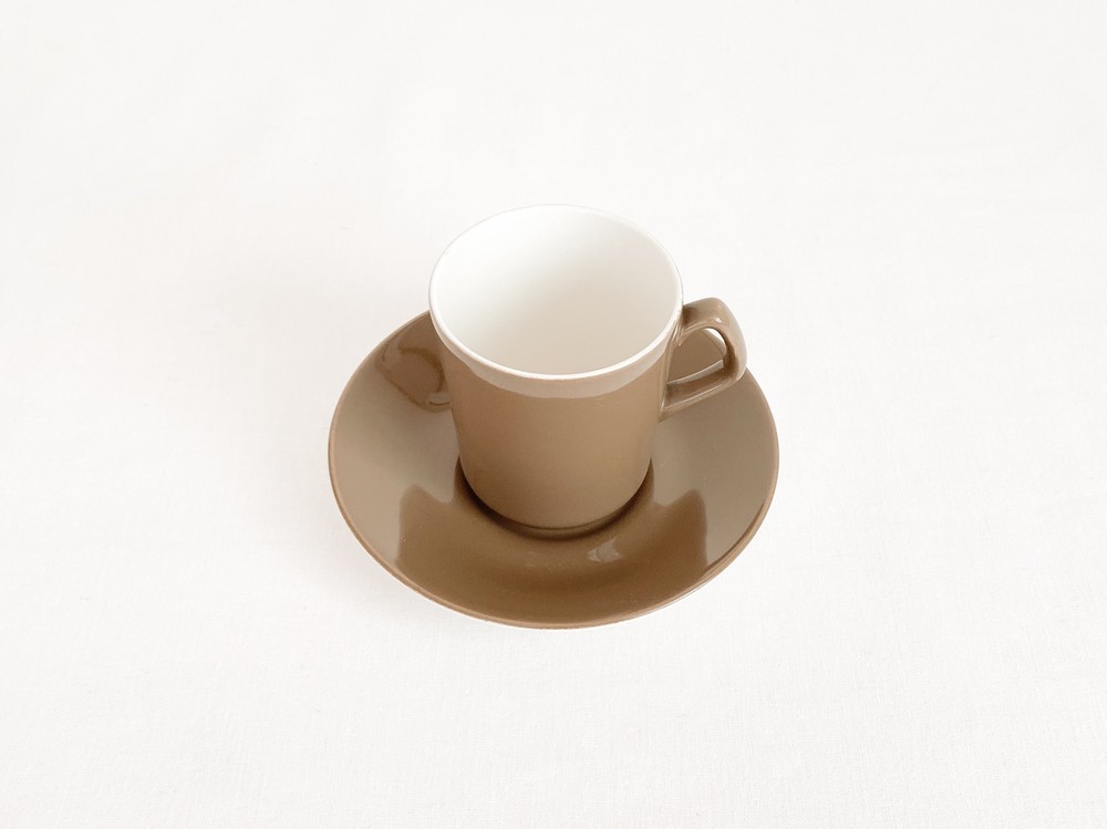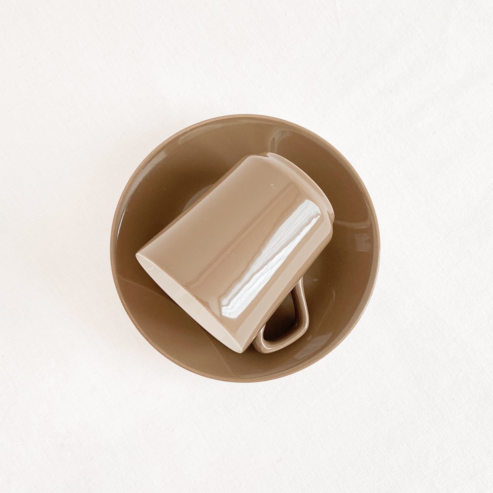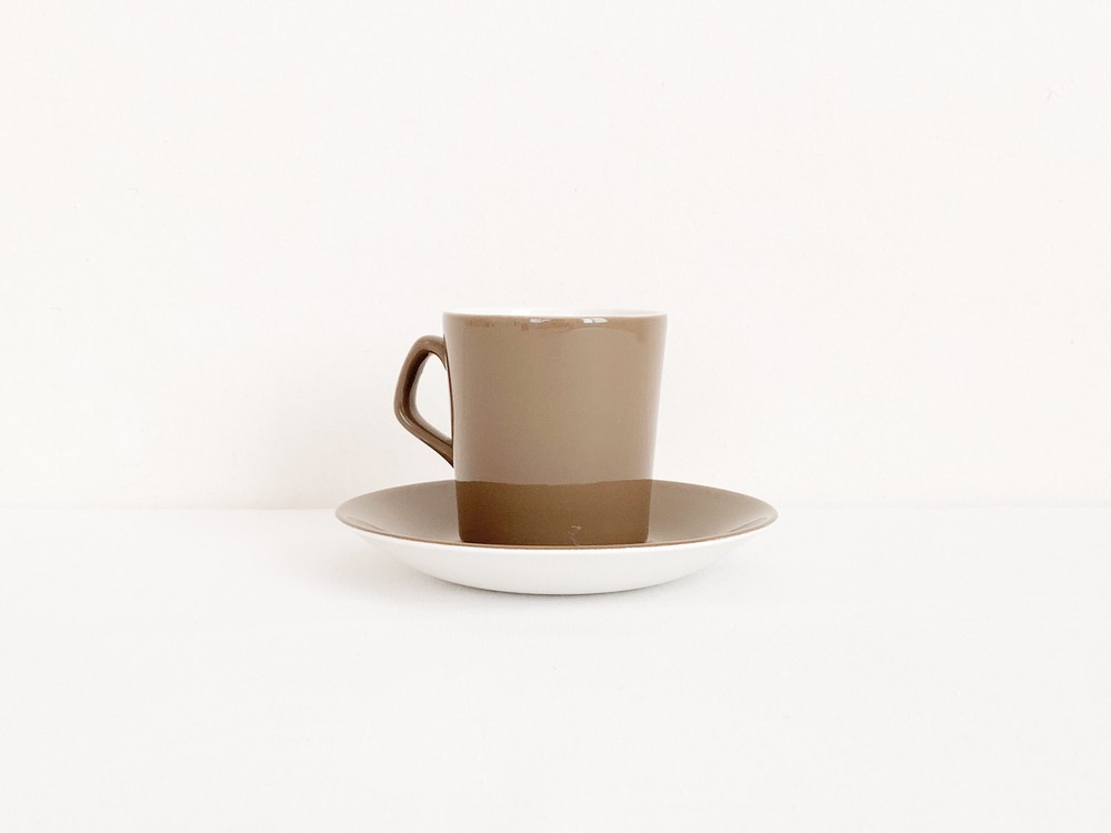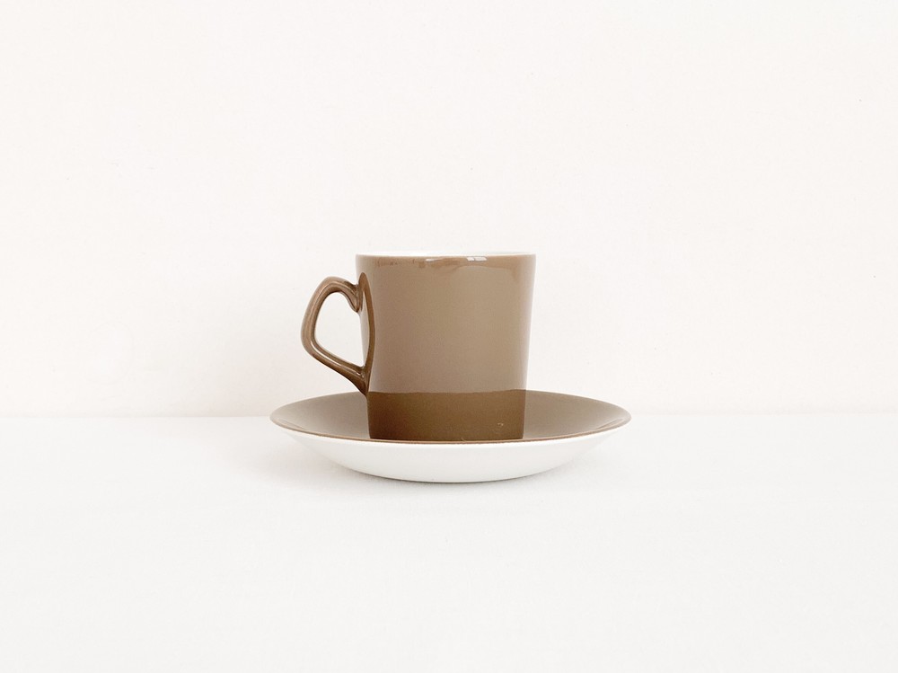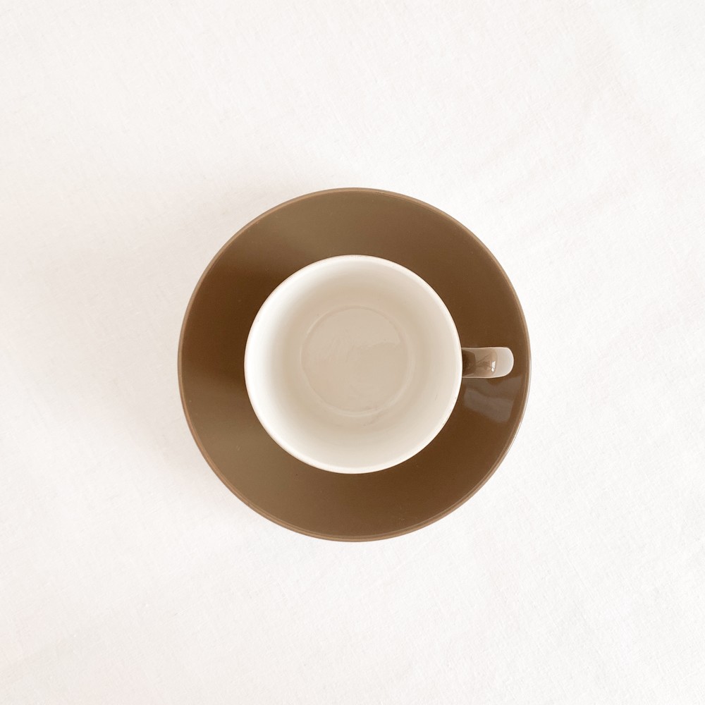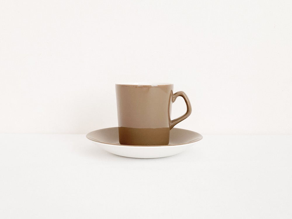 1950년대에 제작된것으로 전해지는 베스윅의 빈티지 찻잔세트입니다. 베스윅은 1800년대 후반 동물모양의 도자기 오나먼트를 만드는것으로 시작된 영국의 브랜드입니다. 베스윅은 맑고 청아한 질감을가진 포슬린과 내구성이 좋은 스톤웨어의 장정을 고르게 가진 소재의 사용으로 입지를 견고히 하고 콜클로우나 로열덜튼, 월트디즈니 같은 브랜드들과의 경계없는 협업을 통해 제품의 범위를 넓혔으며- 특별한소재와 다양한 방식으로 모아진 표현에대한 물리적인 방법과 트랜드를 해석해내는 시선에대해 꾸준히 좋은평가를 받고 있습니다. 소개해드리는 제품은 크림색의 세미포슬린를 소재로 만들어진 찻잔세트입니다. 아주 단정하고 섬세한 실루엣의 기다란 찻잔과 완만하게 위를 향해 펼쳐진 잔받침으로 구성되어있습니다. 찻잔과 잔받침의 겉면에는 차분한 초록빛이 살짝 감도는 부드러운 갈색이 입혀져있으며, 바탕이되는 크림색과 아름다운 조화를 이룹니다. 우유를 넣은 코코아나 향이좋은 밀크티를 마시는 잔으로, 매일편하게 사용하는 따스한 컵과 작은 접시로 사용하기에 잘 어울립니다.