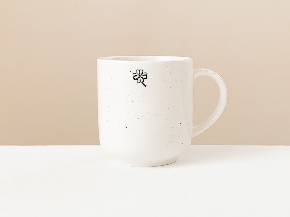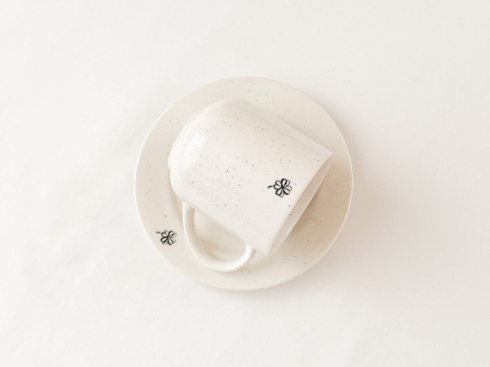 1950년대 영국에서 만들어진 빈티지 스탬프를 모티브로 제작된 찻잔 입니다. 여러용도로 편하게 사용하기에 알맞은 스톤웨어를 소재로 만들어진 제품으로, 몰드를 사용해 모양을 만들어내고, 여러번에 걸쳐 결을 다듬어낸 후 무늬와 유약을 입혀 오랜시간 동안 구워내는 과정을 동해 완성이 됩니다. 제품이 만들어지는데에는, 프랑스 Anneyron지역의 순도높은(제작의 편리성을 위해 섞이게 되는 흙과 물이외의 물질이 섞이지 않음을 뜻합니다) 흙과 유약 그리고 화학제품이 첨가되지 않은 안료가 사용됩니다. 둥글고 단정한 선으로 다듬어진 컵은 넉넉하고 둥근 실루엣과 여유있는 손잡이로 모양을 이루고 있습니다. 컵의 한켠에는 바살트를 재료로한 살랑이는 클로버 무늬가 새겨졌으며, 겉면에는 잔잔한 스페클 무늬가 보여집니다. 오랜시간이 담긴 스탬프 특유의 자연스런 결, 담담한 실루엣과 색들로부터 여운이 전해집니다. 매일의 식사시간, 그리고 정성을 담아 준비한 특별한 테이블을 위한 다정한 그릇으로 사용하기에 잘 어울립니다.