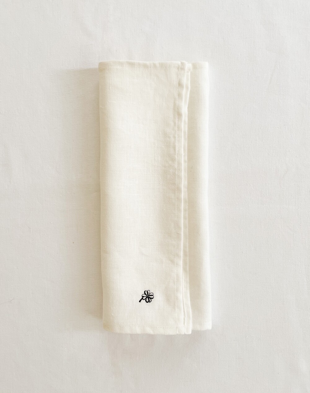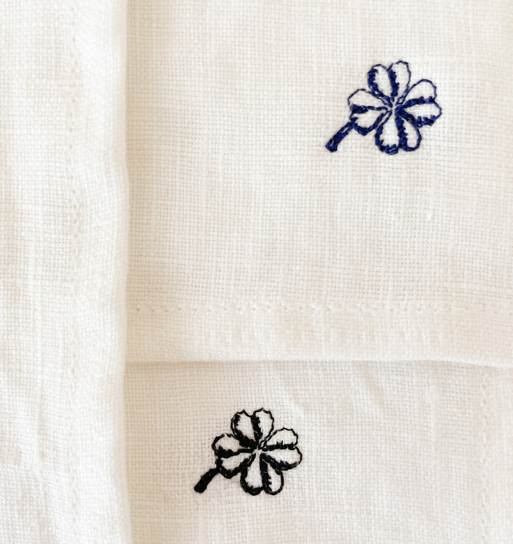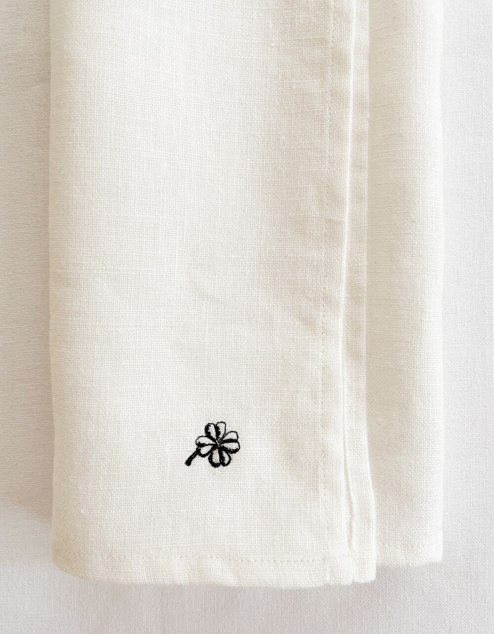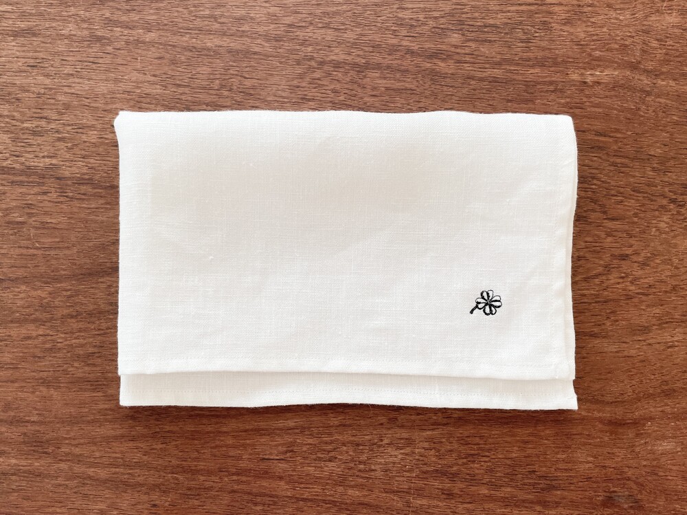 1950년대 영국에서 만들어진 빈티지 스탬프를 모티브로 제작 된 테이블 클로스입니다. 기분좋은 찰랑임을 가진 적당한 무게의 프렌치 리넨을 정돈하고, 한켠에 클로버 자수를 새겼습니다. 하얀색에 가까운 밝은 아이보리와 편안하고 단정한 분위기를 가진 검정, 우아한 네이비의 조화가 아름다우며, 프렌치 리넨 고유의 단단하고 자연스러운 짜임과 클로버의 살랑이는 듯한 모양이 무척 잘 어울립니다. 커틀러리와 그릇들을 놓아두거나, 과일이나 티웨어를 감싸두는 정돈을 위한 부엌의 물건으로- 초를 켜거나 화병을 올려두는 장식을 위한 클로스로 사용하기에 잘 어울립니다.