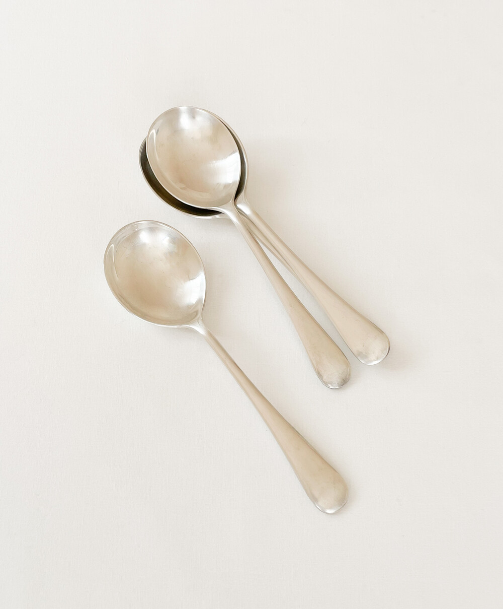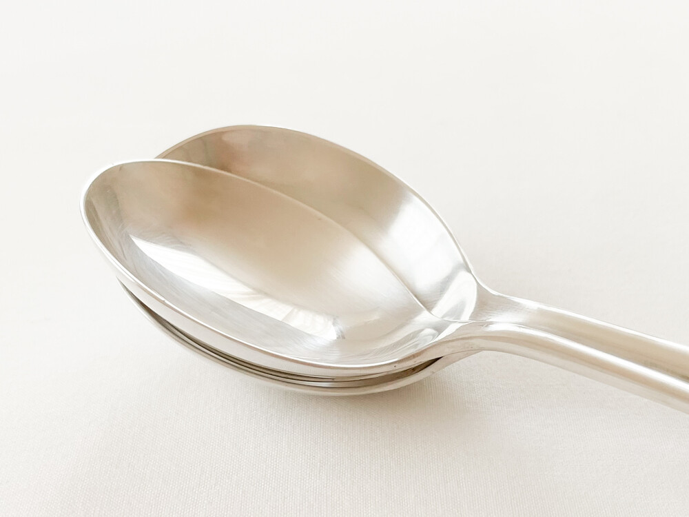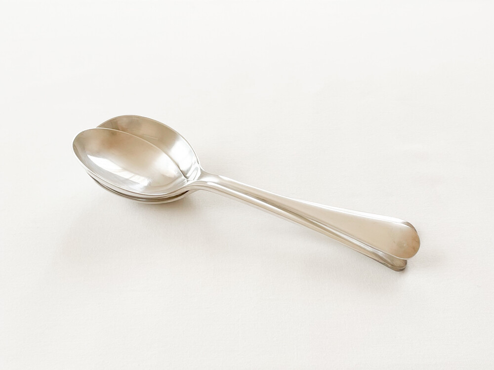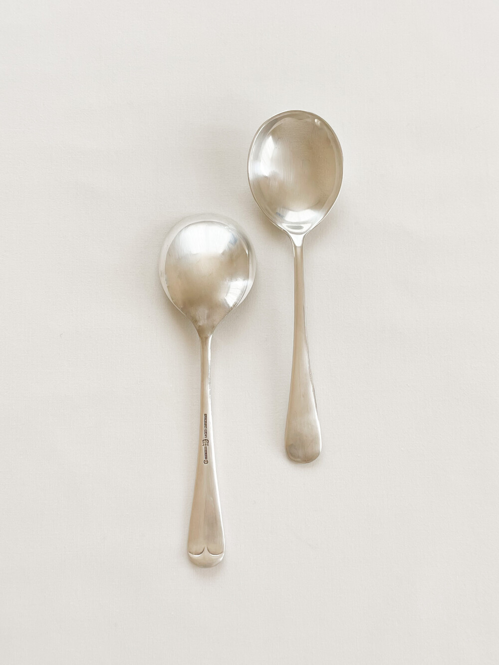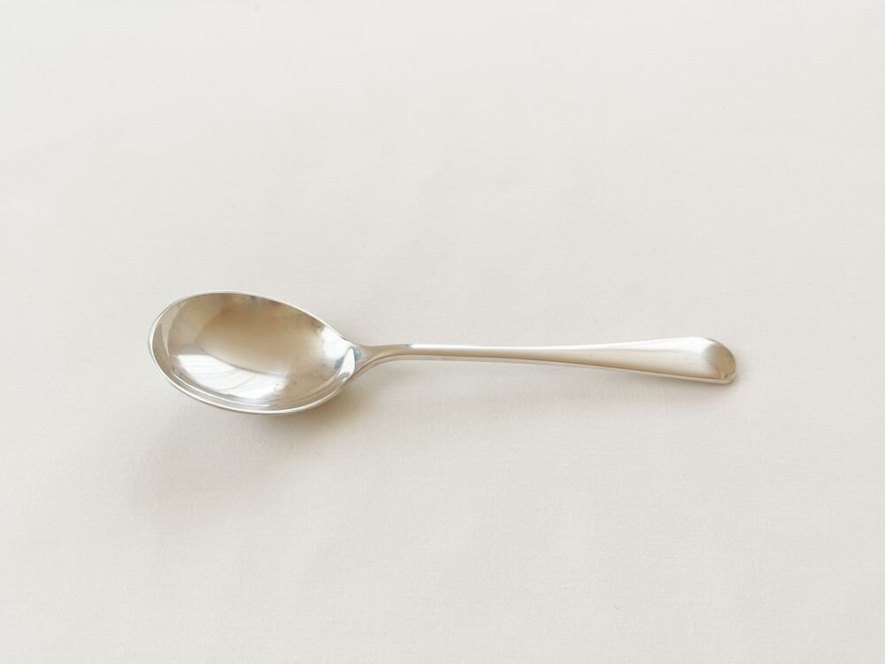 엘킹톤은 1800년대 초 엘킹톤 형제에 의해 버밍엄에서 시작 된 실머스미스입니다. 아주 정교한 실버-실버플레이팅 테이블웨어들로 일찍이 로열워런티를 가지게 되며 왕실의 식기를 제작하고 V&A의 꾸밈과 소장품을 위한 실버웨어들을 만들어내며 명성을 단단히 합니다. 넓은 카테고리와 일정한 품질의 제품들로 대중적인 인기를 가지게 되었으며 garrard mappin & web같은 영국의 실버웨어 브랜드를 키워낸 것으로 기록되어있기도 합니다. 소개해드리는 제품은 1950년대 초 즈음 만들어진 수프스푼입니다. 니켈실버에 순은을 두텁게 입힌 실버플레이티드를 소재로, 고전적인 올드잉글리쉬패턴으로 모양을 갖추었습니다. 둥글고 넓은 보울과 엘킹톤 특유의 가늘고 기다란 곡선으로 이어지는 핸들의 모습이 무척 우아합니다. 완벽에 가까운 편안한 균형과 고전의 특별한 아름다움을 간직한 제품입니다. 수프나 시리얼, 파스타디쉬를 위한 스푼으로- 플레이트의 한켠에 놓아 잼이나 스프레드, 스파이스를 담아내는 스푼으로 사용하기에도 잘 어울립니다.