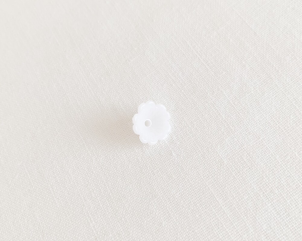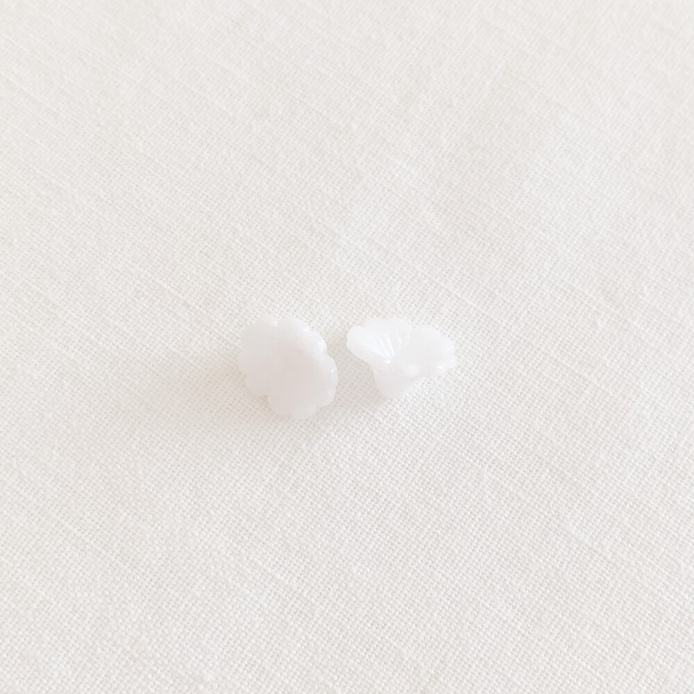 1950년대 프랑스에서 제작 된 단추 입니다. 벨bell 모양의 활짝핀 꽃을 모티브로 만들어진 단추는, 깨끗한 하얀색의 아크릴을 소재로 합니다. 눈이부신듯 매끄러운 질감과 꽃잎의 잔잔한 펼쳐짐이 섬세하게 표현 되어 있습니다. 만개가 시작 여리고 깨끗한, 꽃잎을 바라보는 듯한 잔잔한 감정이 전해지는 제품입니다. 우아한 진주목걸이를 걸어본날, 헤어핀이나 버튼홀- 단정한 외투의 깃이나 카디건의 한켠에 놓아 화사하고 경쾌한 리듬을 더해줄 장식으로 사용하기에 잘 어울립니다.