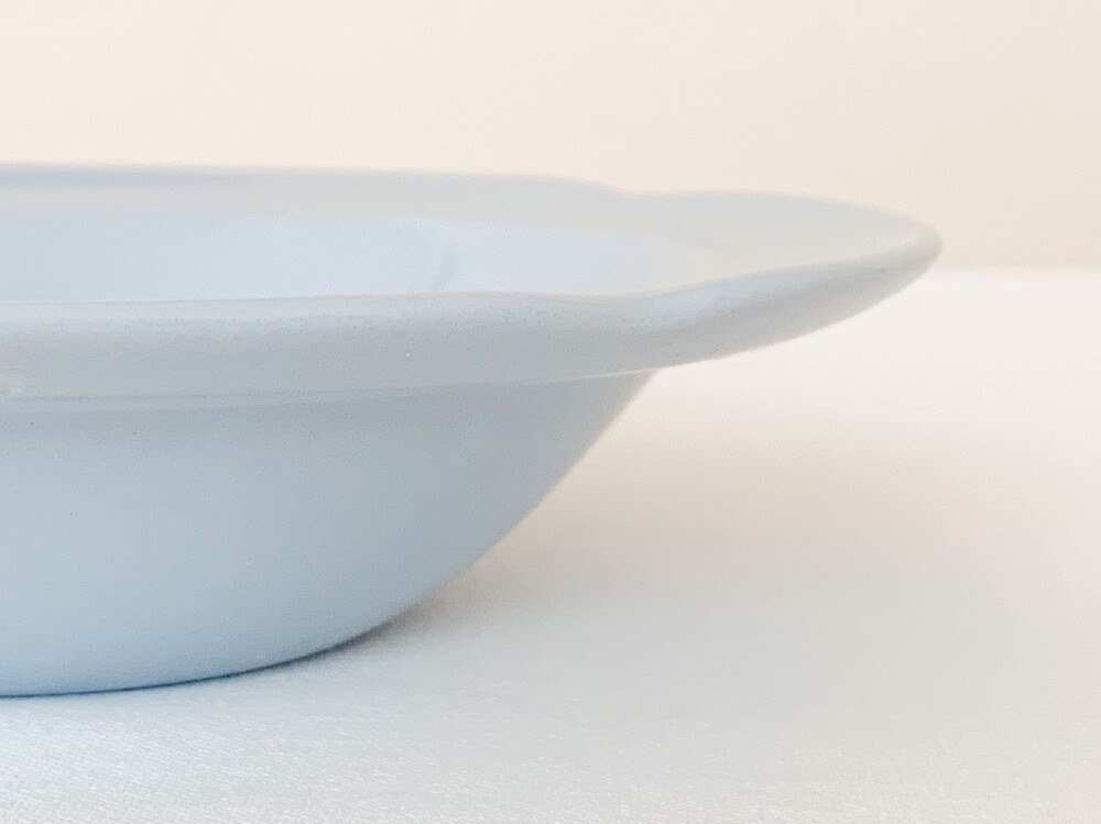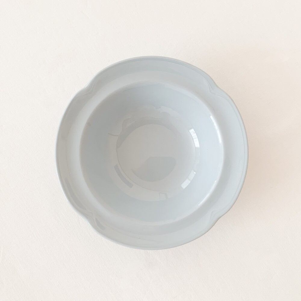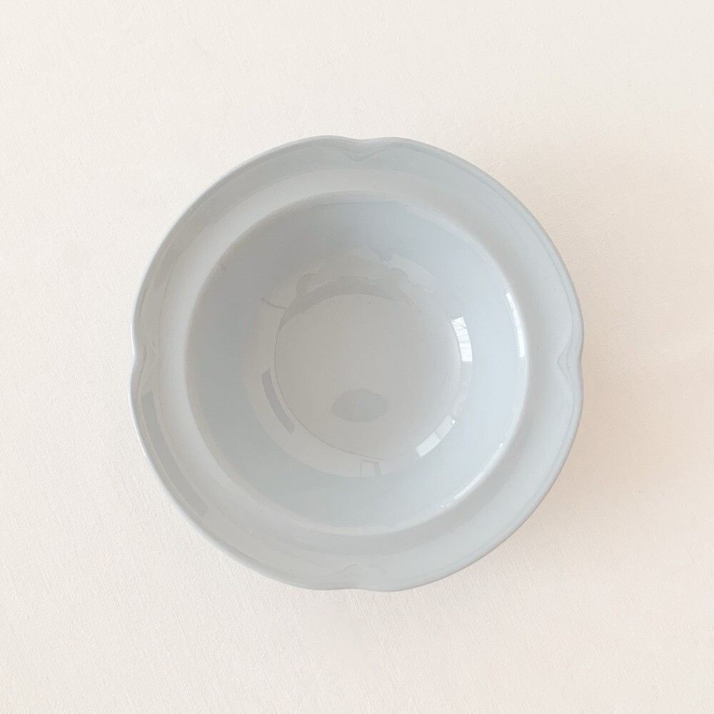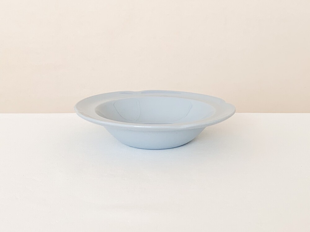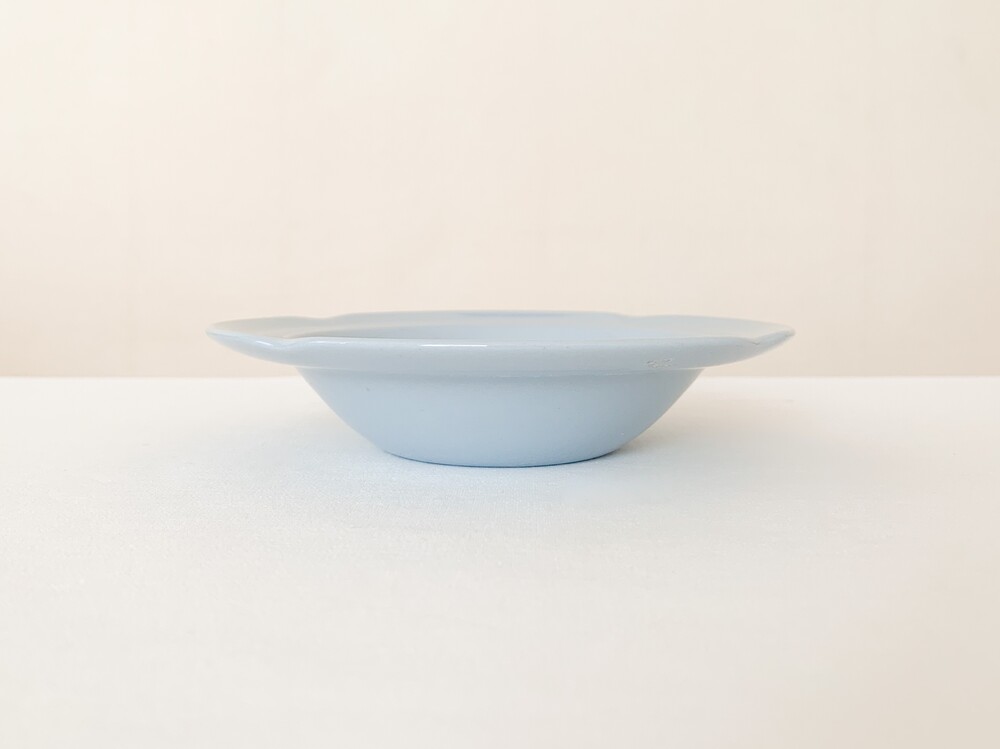 존슨브라더스는 1883년 영국 도자기의 중심지 스토크온트렌트에서 시작된 브랜드입니다. 화이트웨어라는 식탁의 기본이 될 수 있는 모티브를 가지고, 사용과 관리가 편리한 도기와 좋은 내구성이 좋은 자기의 특징을 두루 갖춘 테이블웨어를 만들었습니다. 1900년대에는 영국 왕실이 주최가되는 어워드에서 좋은성과를 거두며 가치를 증명하였고, 쓰임새좋은 생활용품과 훌륭한 수집품으로서의 위치를 유지하고 있습니다. 소개해드리는 제품은 1950년대에 제작된 프룻보울입니다. 단단한 내구성의 아이언웨어를 소재로하며, 페인팅이나 유약으로 색을 입힌것이 아닌 흙에 푸른빛의 안료를 배합해 색을 표현한 방법으로 만들어졌습니다. 밝고 따스한 빛이 스며있는 차분하고 엷은 파랑이 아릅답습니다. 섬세한 터치로 다듬어진 꽃잎을 닮은 가장자리의 장식과 고운 색감, 소재 무게감과 단정한 꾸밈에서 전해지는 우아한 분위기가 보여집니다. 아이스크림이나 따뜻한 파이를 위한 디저트그릇으로, 뮤즐리나 포리지를 담아내는 간결한 식사시간의 그릇으로 사용하기에 잘 어울립니다.