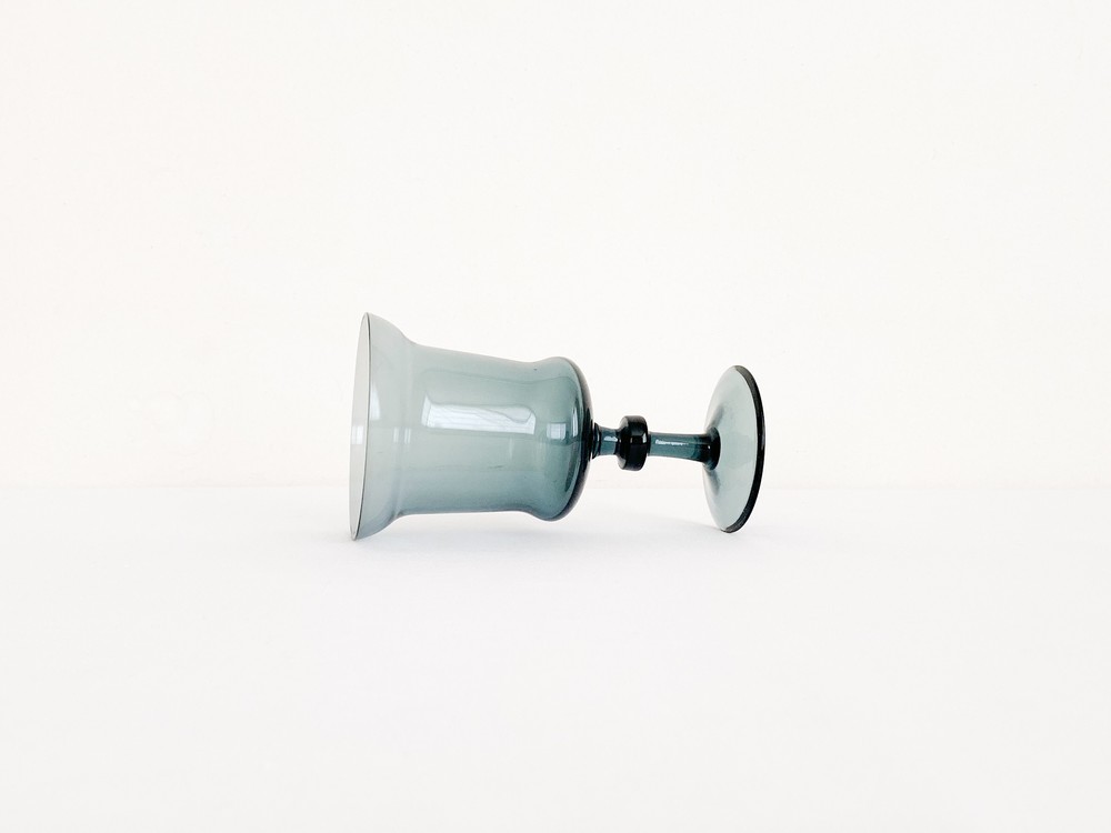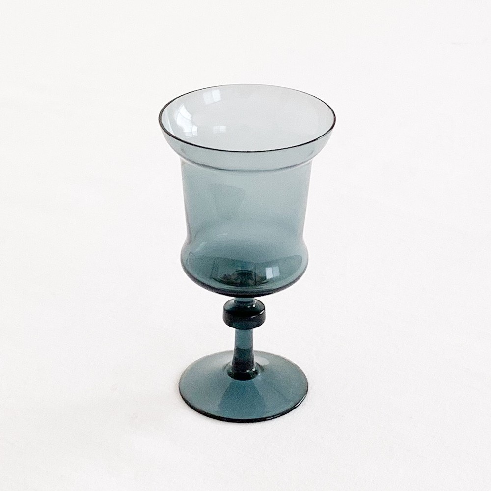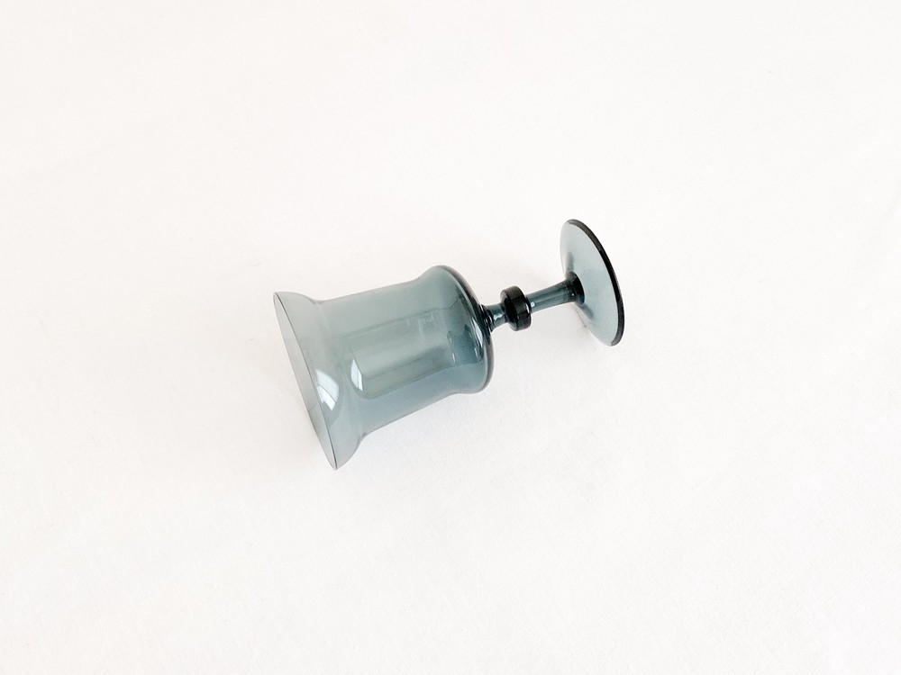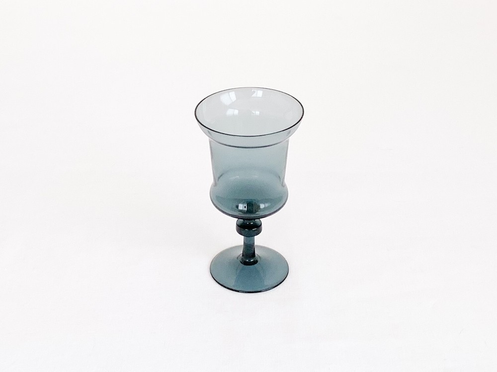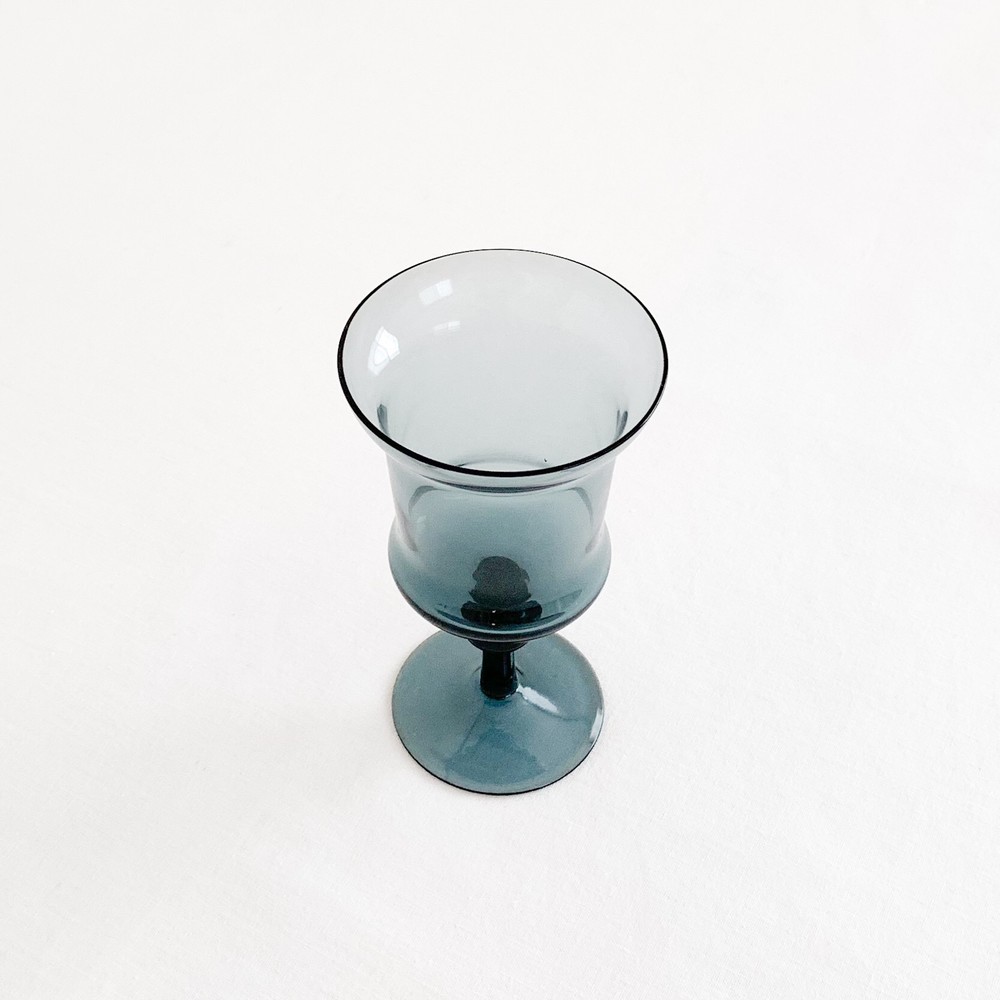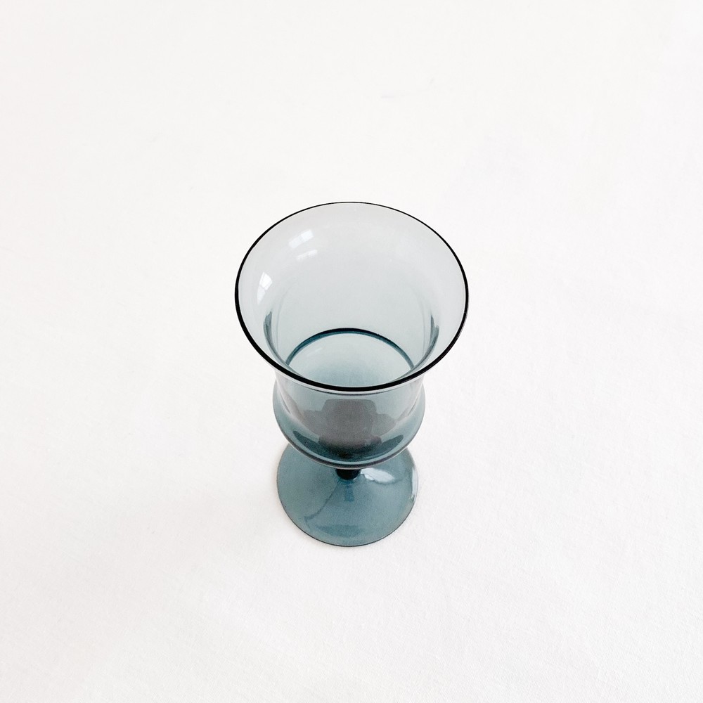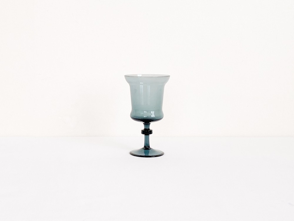 1950년대 초반, 영국에서 만들어진것으로 전해지는 유리고블렛입니다. 매끄럽고 묵직한, 짙은 푸른빛의 유리를 소재로 합니다. 단정하고 완벽한 균형을 바탕으로- 무게감있는 화려함을 보여주는 고블렛은, 위를 향해 넓고 둥글게 펼쳐지는 보양의 보울, 안정감있는 핸들의 역할을 가진 링모양이 장식된 스템, 완만한 선으로 말끔하게 정돈된 베이스로 구성되어있습니다. 짙게 반짝이는 푸른색은- 맑고 투명한 유리의 특성과 훌륭한 조화를 이루고, 고블렛의 섬세한 실루엣을 따라 음영을 달리하는 모습이 매우 아름답습니다. 특별하게 준비한 식사시간의 물잔이나 와인을 마시는 잔으로 사용하기에 잘 어울리며, 화려한 색의 꽃을 담아두는 화병이나 공간의 분위기를 가꾸어주는 우아한 오브제로 두기에도 적당합니다.