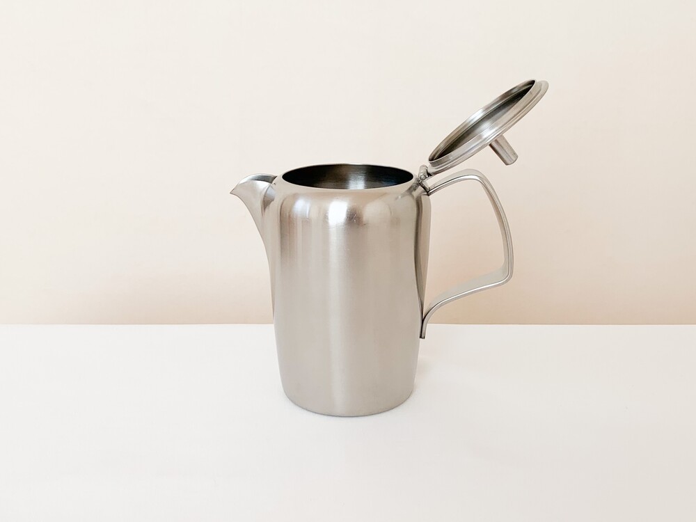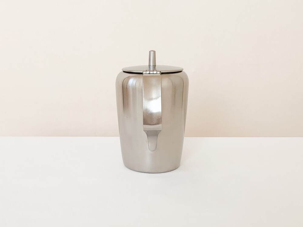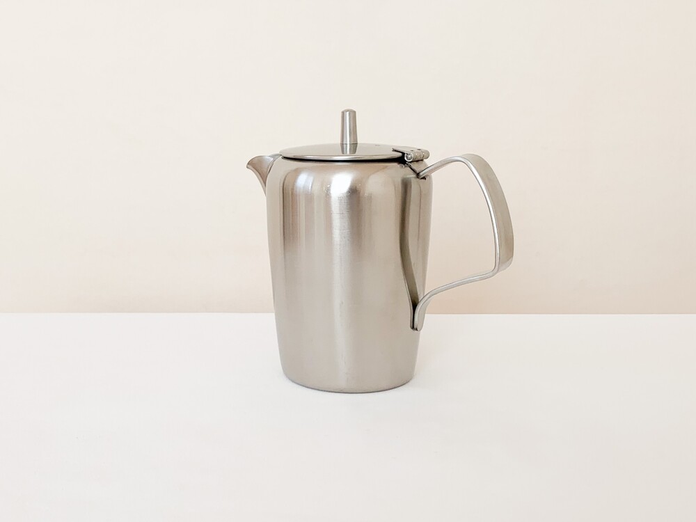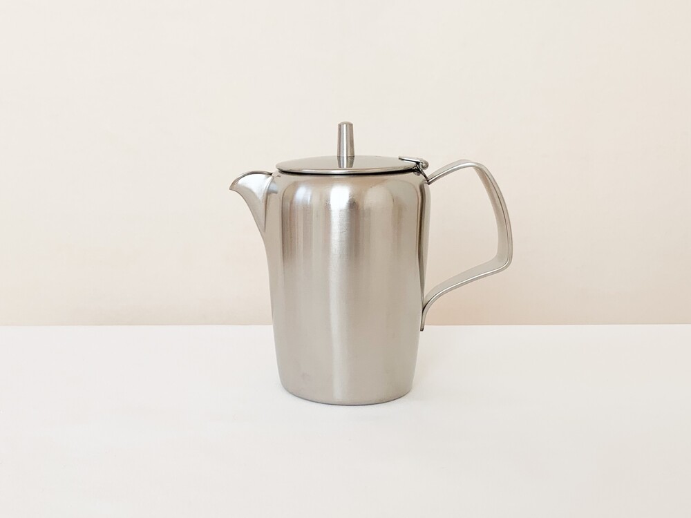 소개해드리는 제품은, 전성기의 올드홀을 맞이하기 위한 돋움의 시간이었던 1950년대 중후반에 만들어진 티팟입니다. 밀도가 높고 매끄러운 스테인리스 스틸을 소재로하며- 위를 향해 살짝 넓어지는 풍성하고 고전적인 분위기의 바디, 차나 커피를를 잔에 담을때의 결을 생각한 아름다운 실루엣의 스파우트, 전체의 우아한 분위기를 돋보이게 해주는 단아한 뚜껑과 핸들로 구성 되어있습니다. 높은 품질의 스테인리스스틸이 소재로 쓰인 만큼, 직화사용에서도 얼룩이 쉽게 생기지 않습니다. 변함없는 말끔한 소재와 정성스런 손길이 닿은 부분들에서 전해지는 편안하고 우아한 무게감을 살펴 볼 수 있습니다. 매일 사용하는 따뜻한 물주전자나 커피팟으로, 때때로 꽃을 담아두는 오브제로 사용하기에 잘 어울립니다.