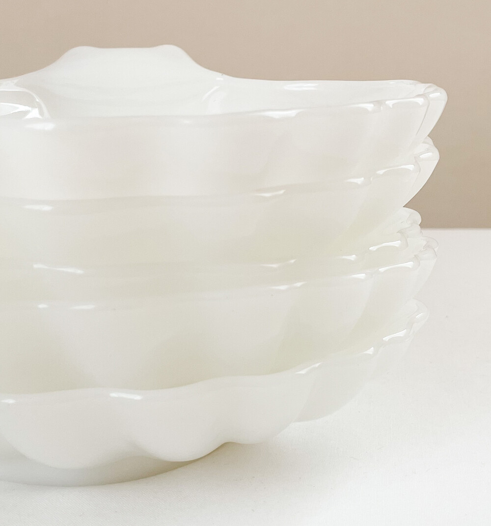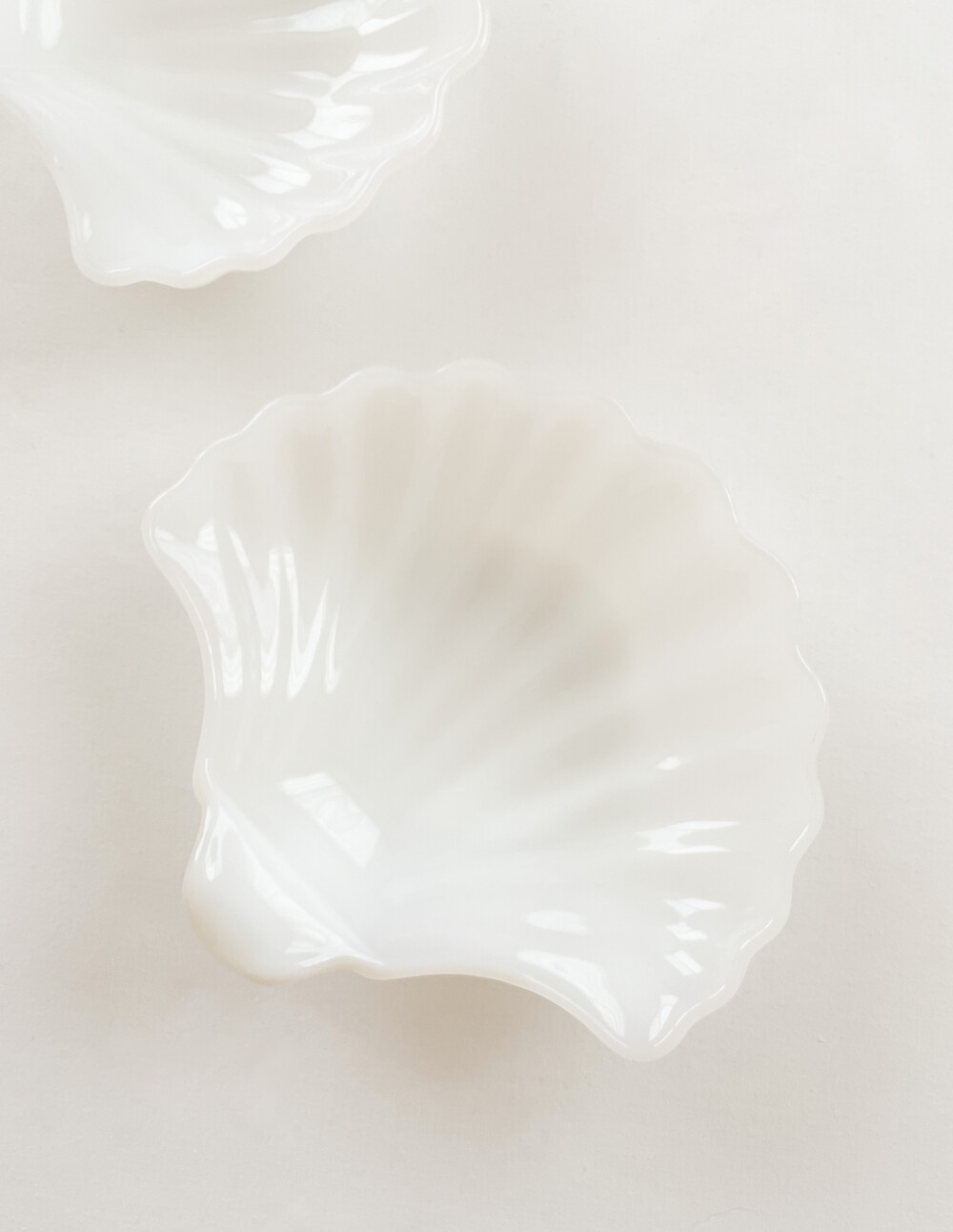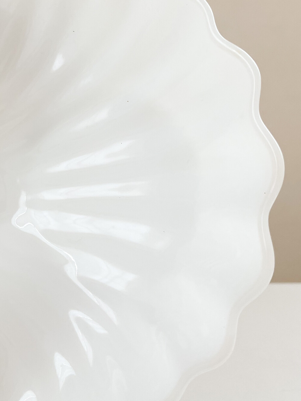 1950년대 영국에서 만들어진 쉘디쉬입니다. 매끄러운 질감과 은은한 투명함을 가진 오팔린글라스를 소재로 하며, 흐르는듯 부드럽고 가지런한 곡선들이 펼쳐져 있는 조가비 모양을 가지고 있습니다. 흔치않은 넉넉한 크기와 단단한 소재는 일상에서 여러 용도로 활용하기에 알맞으며, 수집품으로서 매우 높은 가치를 가지고 있기도 합니다. 소재와 모티브에 담겨있는 여유롭고 동화적인 감정, 놓여지는 공간의 빛을 머금어 보드랍게 내보여주는 오팔린글라스 고유의 화사한 분위기가 아름답습니다. 욕실이나 세면대의 비누를 담아두는 넉넉한 접시나 티테이블의 디저트 트레이로, 여름날 저녁의 선선한 바람과 함께 하는 식사시간의 그릇으로 사용하기에 잘 어울립니다.