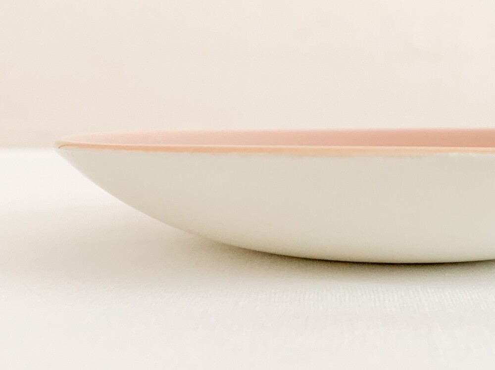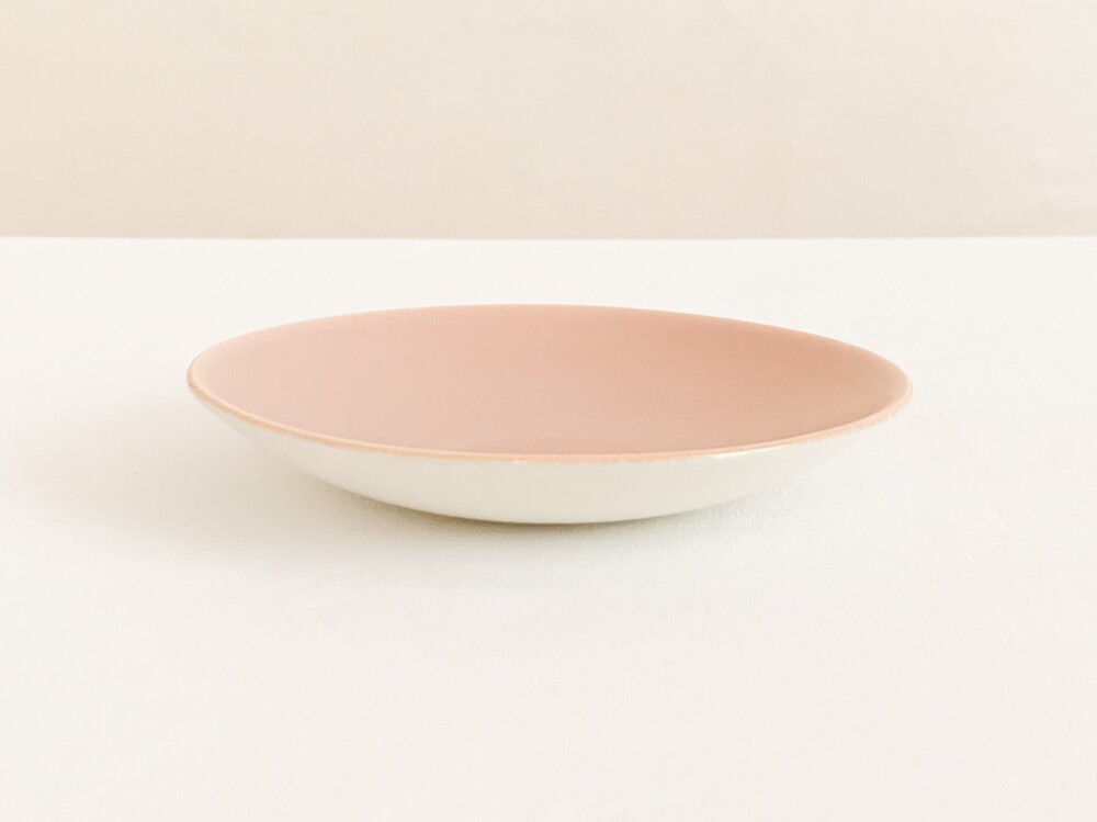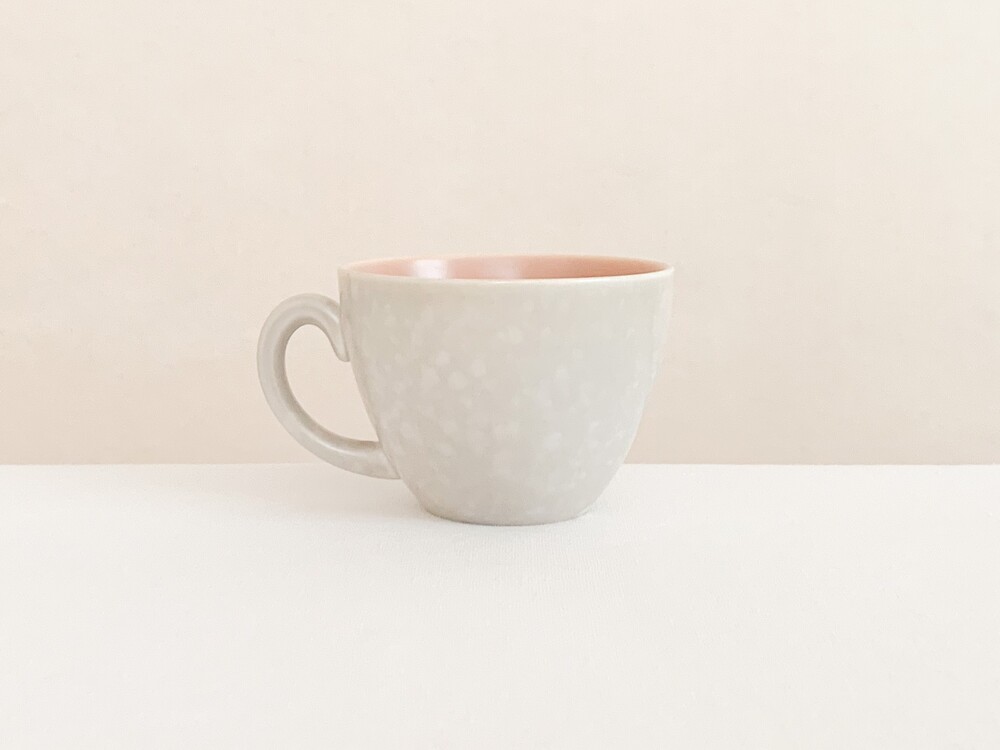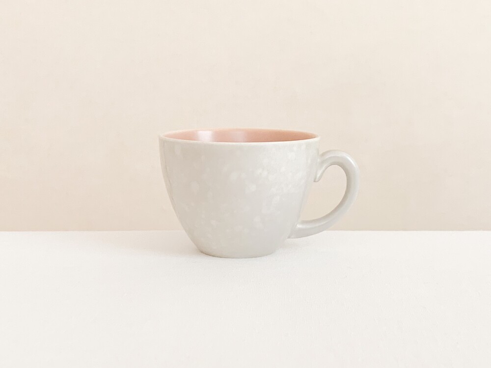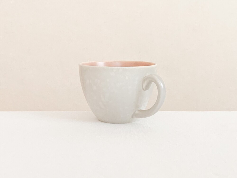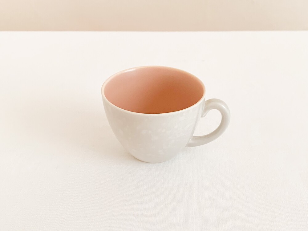 엷은분홍과 일렁이는 회색으로 장식된 풀의 커피컵세트입니다. 풀은 1873년 건축용 도자기장식이나 타일을 만드는 회사로 시작되었고, 1900년대 초반부터 도자기 테이블웨어를 만들었던 영국의 브랜드입니다. 건축용 도자기제품을 만들었던 역사를 가지고 있는만큼 튼튼한 제질과 실용성, 그리고 기본에서 벗어나지 않은- 세련된 디자인을 특징으로 합니다. 소개해 드리는 제품은 1950년대 중반에 제작되었습니다. 둥글고 단정하며 우아한 선을 살펴볼 수 있으며, 손에 편하게 들리는 모양으로 빚어진 손잡이가 있는 컵, 잔을 살짝 감싸안는듯 살며시 위를향해 펼쳐진 잔받침으로 구성되어있습니다. 컵과 잔받침의 안쪽은 바탕이 되는 소재가 은근히 비쳐나는 차분한 분홍빛으로, 컵의 겉면은 밝은 회색과 뽀얀크림색의 잔잔한 무늬가 입혀져있으며- 벨벳과 같은 은은한 광택을 가지고 있습니다. 잔잔하고 조용한 분위기를 가진 제품으로, 아이스크림을 둥글게 담아내거나, 뜨거운 커피를 위한잔으로 잘 어울립니다.