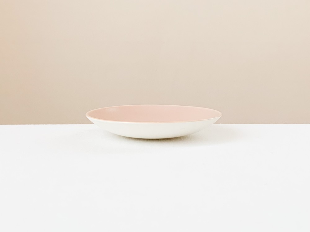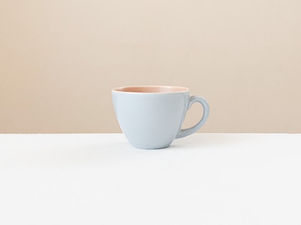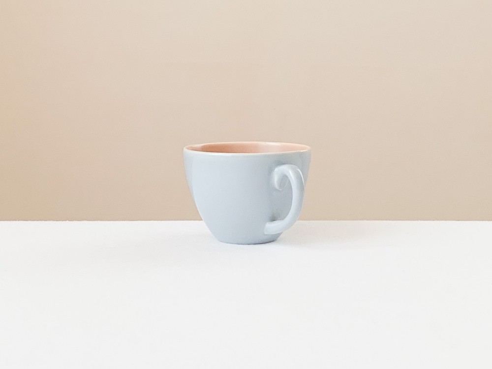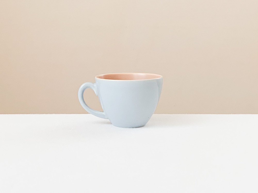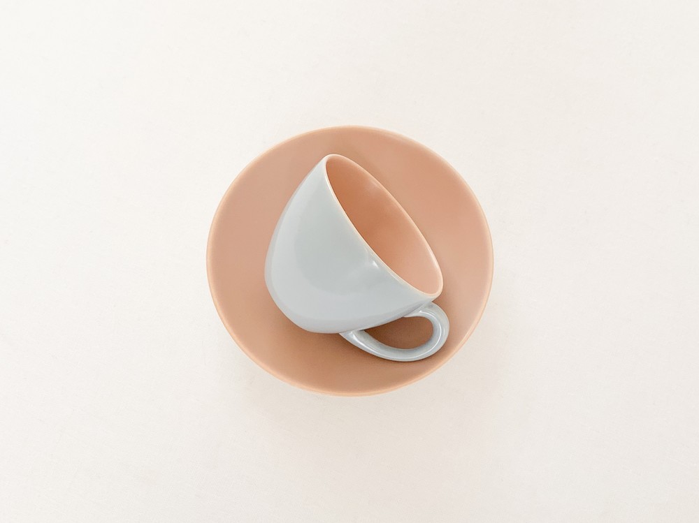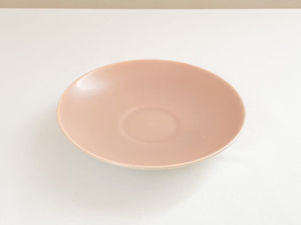 풀은 1873년 건축용 도자기장식이나 타일을 만드는 회사로 시작된- 1900년대 초반부터 테이블웨어를 만들었던 영국의 도자기 브랜드로, 깊이있는 색감들과 튼튼한 내구성을 특징으로 하며, 보여지는 모습에서 그리고 그안에 담겨있는 내용들(용도나 제작방식 등 보여지는 모습을 위해 가져야할 과정 등)에서도 보편적인 영국의 정체성을 잘 보여줍니다. 소개해드리는 찻잔세트는 풀이 본격적으로 정체성을 갖추어가기 시작했던 1950년대에 만들어졌습니다. 이시기에 주로 만들었었던 트윈톤시리즈 중 아주 희소성있는 한 가지로, 안개에 덮인듯한 엷은푸른색과 흐린분홍이 함께보여지는 제품입니다. 얇고 단단한 스톤웨어를 소재로하며 군더더기 없이 매끄러운 모습의 둥근 찻잔과 잔을 살며시 감싸는 듯 아래에서 위로 펼쳐진 모양의 잔받침으로 이루어졌습니다. 아름다운 색감이 돋보일 수 있는- 보드라운 광택을 가진 유약으로 마무리가 되어있으며, 바탕이되는 도자기의 크림색이 잔입구의 둘레와 잔받침의 가장자리에 드러나 만들어진 은근한 줄무늬가 보여집니다. 두 가지 색의 어울림에서 전해지는 잔잔한 결, 둥글고 고운 실루엣으로 부터 살펴 볼 수 있는 우아한 정서를 간직하고 있습니다.