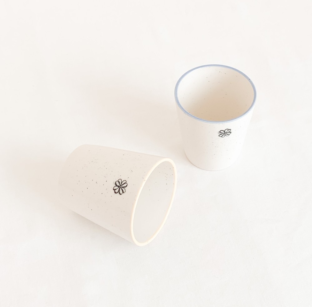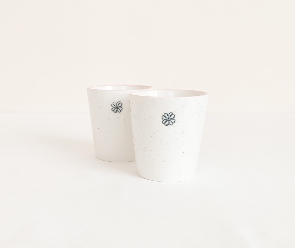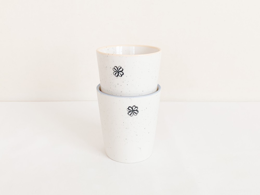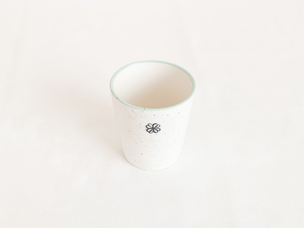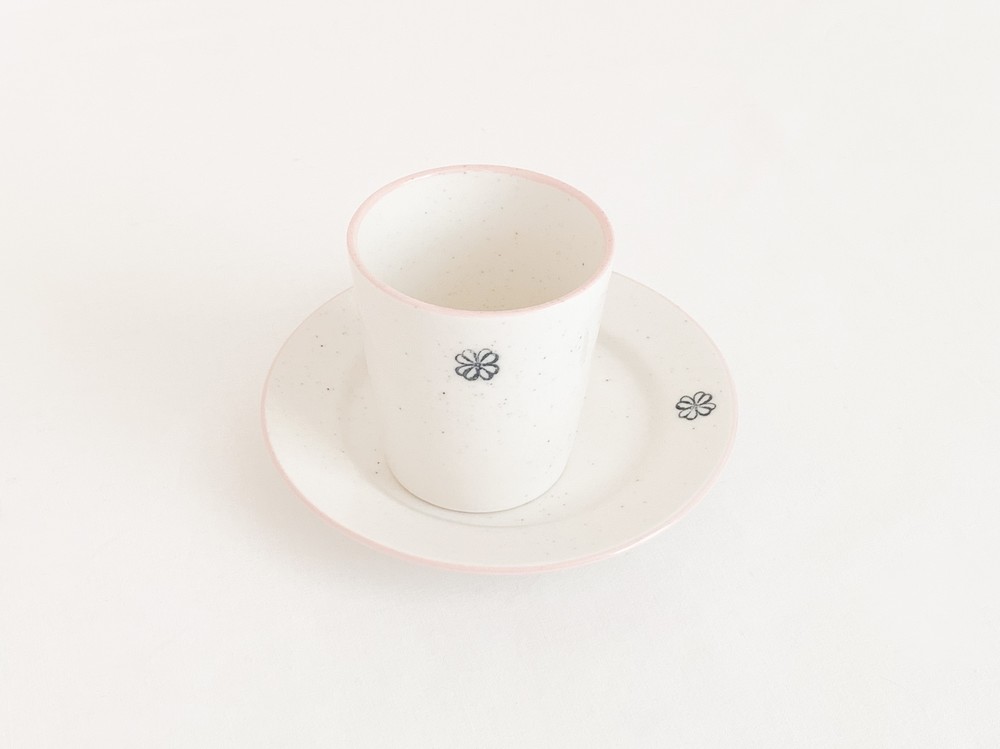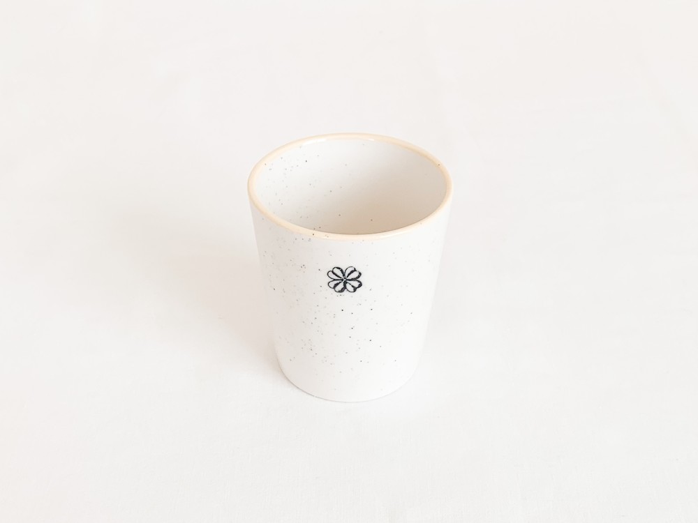 1950년대 영국에서 만들어진 빈티지 스탬프를 모티브로 제작된 컵입니다. 여러용도로 편하게 사용하기에 알맞은 스톤웨어를 소재로 만들어진 제품으로, 몰드를 사용해 모양을 만들어내고, 여러번에 걸쳐 결을 다듬어낸 후 무늬와 유약을 입혀 오랜시간 동안 구워내는 과정을 동해 완성이 됩니다. 제품이 만들어지는데에는, 프랑스 Anneyron지역의 순도높은(제작의 편리성을 위해 섞이게 되는 흙과 물이외의 물질이 섞이지 않음을 뜻합니다) 흙과 유약 그리고 화학제품이 첨가되지 않은 안료가 사용됩니다. 둥글고 단정한 선으로 다듬어진 컵은 위를 향에 살짝 넓어지는 실루엣의- 손에 가볍에 들리는 편안한 모양을 가지고 있습니다. 컵의 한켠에는 바살트를 재료로한 따스한 검정의 클로버 무늬가 새겨졌으며, 가장자리에는 가느다란 줄무늬가 고운흐름로 그려져 있습니다. 오랜시간이 담긴 스탬프 특유의 자연스런 결, 담담한 실루엣과 색들로부터 여운이 전해집니다. 매일의 식사시간, 그리고 정성을 담아 준비한 특별한 테이블을 위한 다정한 그릇으로 사용하기에 잘 어울립니다.