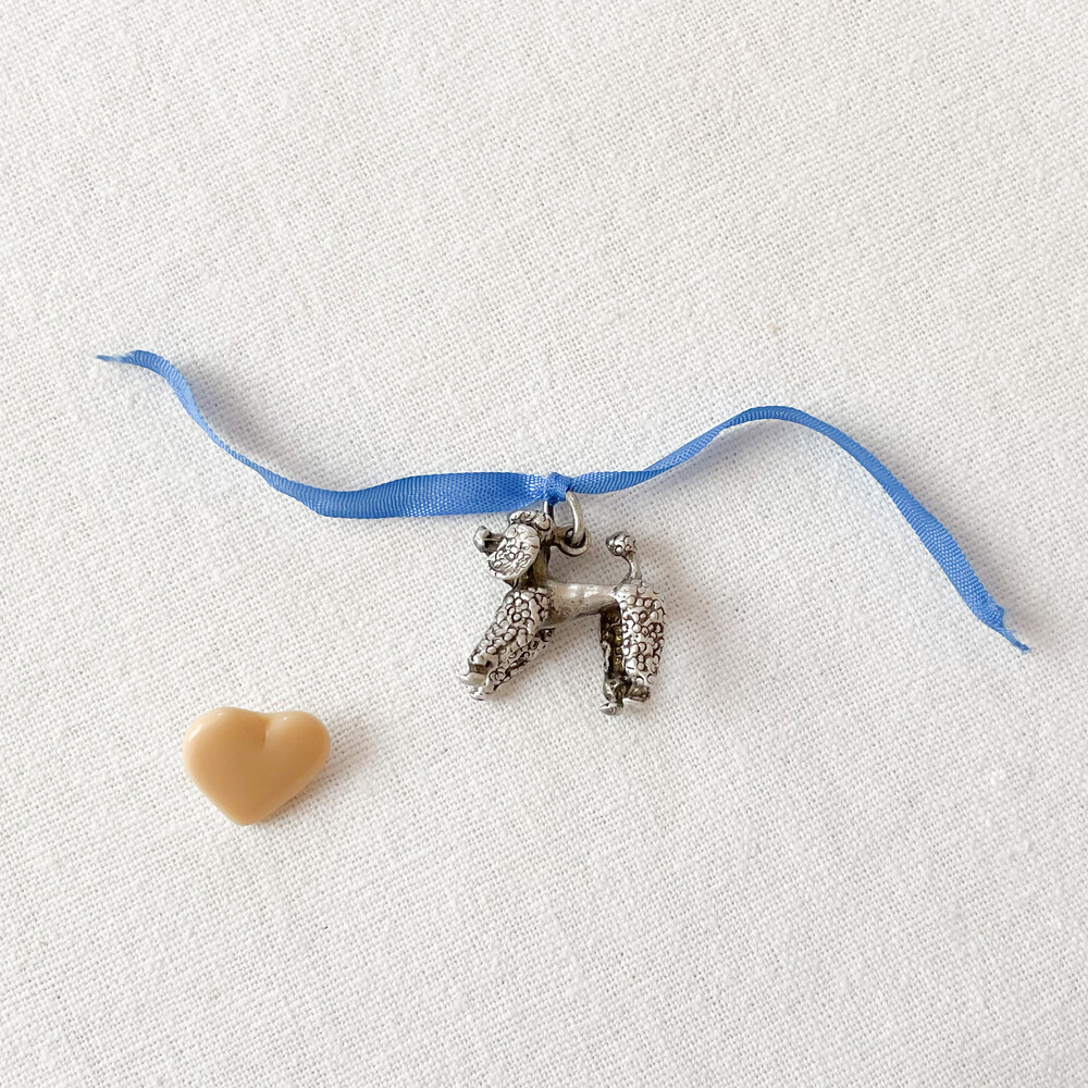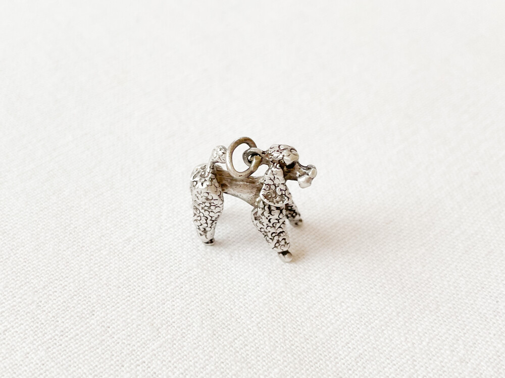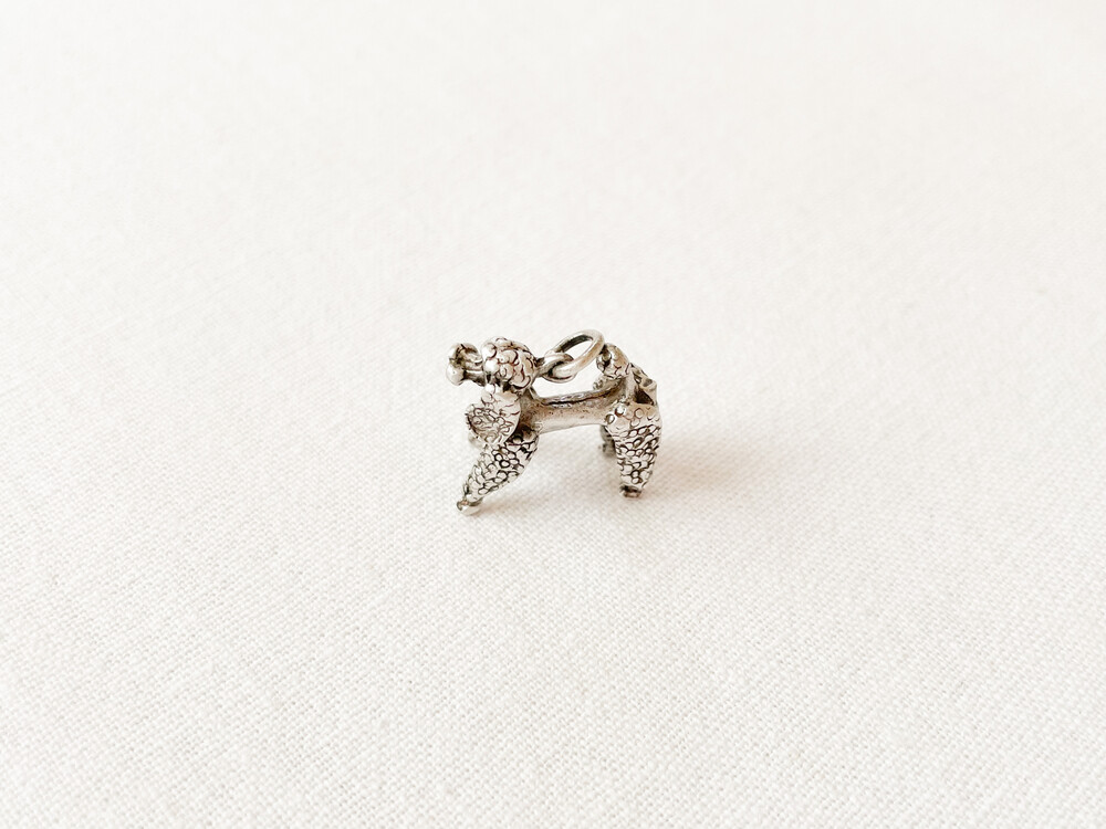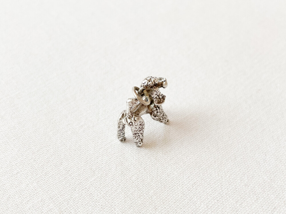 1950년대 영국에서 제작된 펜던트입니다. 고고하고 가벼운 자세로 반듯하게 서 있는 푸들을 모티프로 만들어진 제품으로, 순은을 소재로 합니다. 적당한 섬세함과 동화적인 부드러운 터치, 오랜시간과 함께 더욱 빛나는 소재의 결이 아름답습니다. 긴다리와 곱슬털의 푸들과 잘 어울리는 오발링이 연결되어있습니다. 푸들 모티프는 오래도록 우아함, 고귀함, 지성과 자존감의 의미를 담고 있습니다. 스웨터나 셔츠, 핸드백의 한켠을 장식하는 챰charm으로- 목걸이나 키링에 연결하는 팬던트로 사용하기에 알맞습니다.