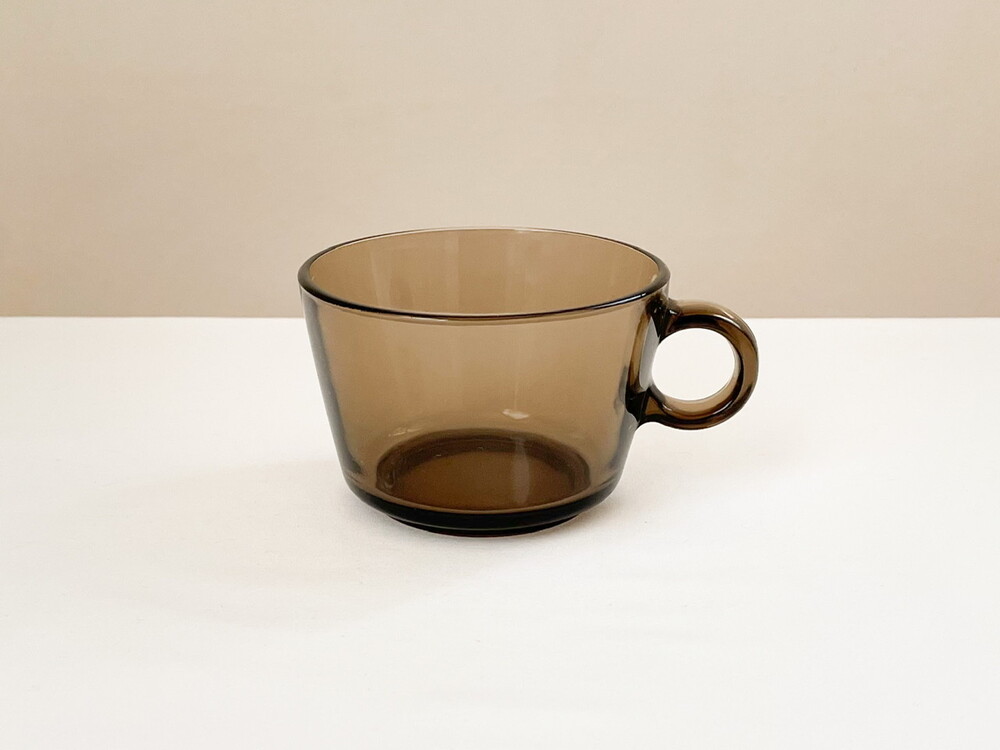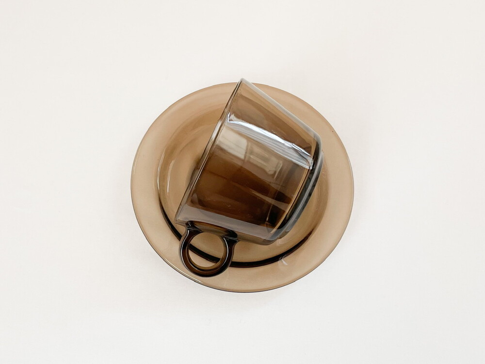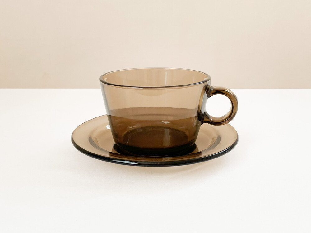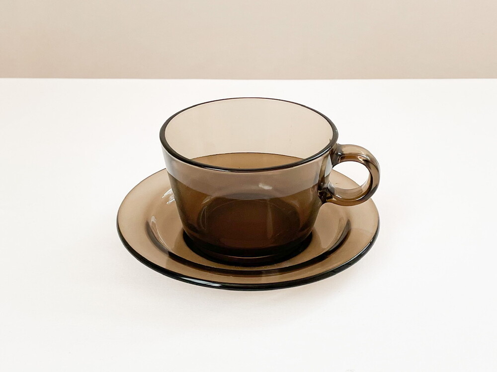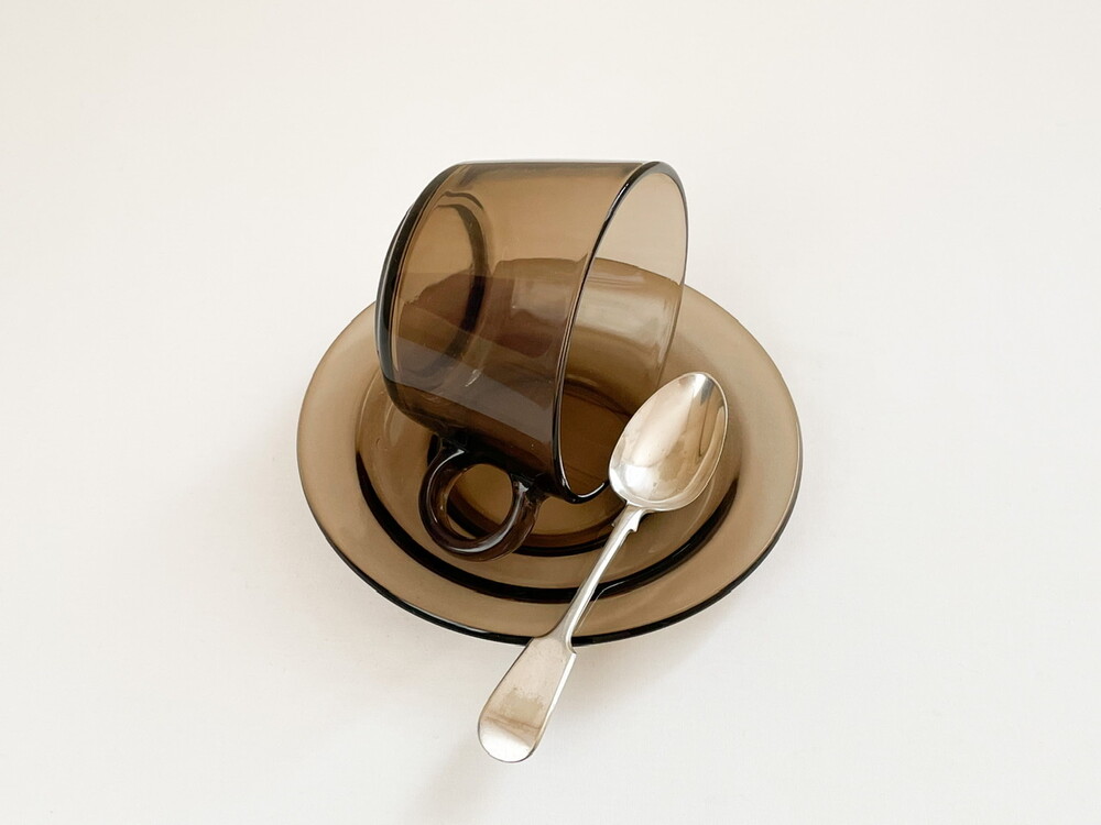 소개해드리는 제품은 1950년대에 아주 적은 수량으로 제작 된 것으로 기록되어있는, 베레코의 브렉퍼스트 찻잔세트입니다. 유앤웬즈데이에서 여러차례 소개해드린 베레코의 찻잔세트의 초기모델이 되는 제품으로, 따뜻한회색의 맑은 유리를 소재로 합니다. 둥근 면과 선들로 이루어진 도톰한 잔과, 1900년대 초반 유럽의 공예와 디자인의 흐름에 큰 영향을 준 아르데코 모티브의 잔받침으로 구성 되어있습니다. 잔받침에 섬세하고 매끄럽게 만들어진 동그란 층으로 부터 자연스럽게 연결되는 잔의 둥근 흐름들, 투명함과 투명함이 만나 보여지는 리듬의 겹쳐짐과 반짝임이 아름답습니다. 소중한 수집품으로서 충분한 가치를 가지고 있으며- 실용적인 소재와 단정한 모양, 넉넉한 크기는 매일 마주하는 식탁에 즐거움을 더해줄 그릇으로 사용하기에 알맞습니다. 본래의 용도에 맞춰 브리오슈를 곁들인 아침의 밀크티나 카페오레를 위한 잔으로, 뮤즐리나 수프를 담아내는 컵으로 잘 어울립니다.