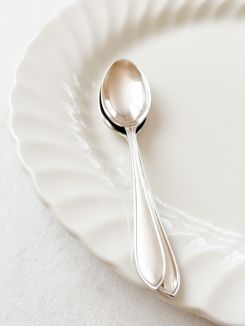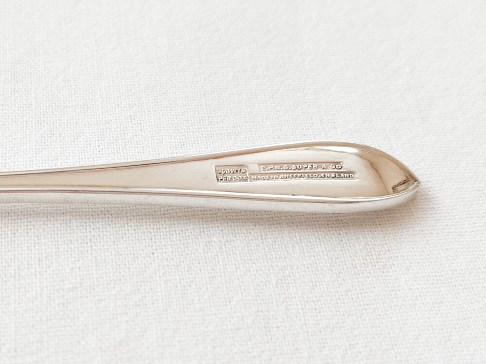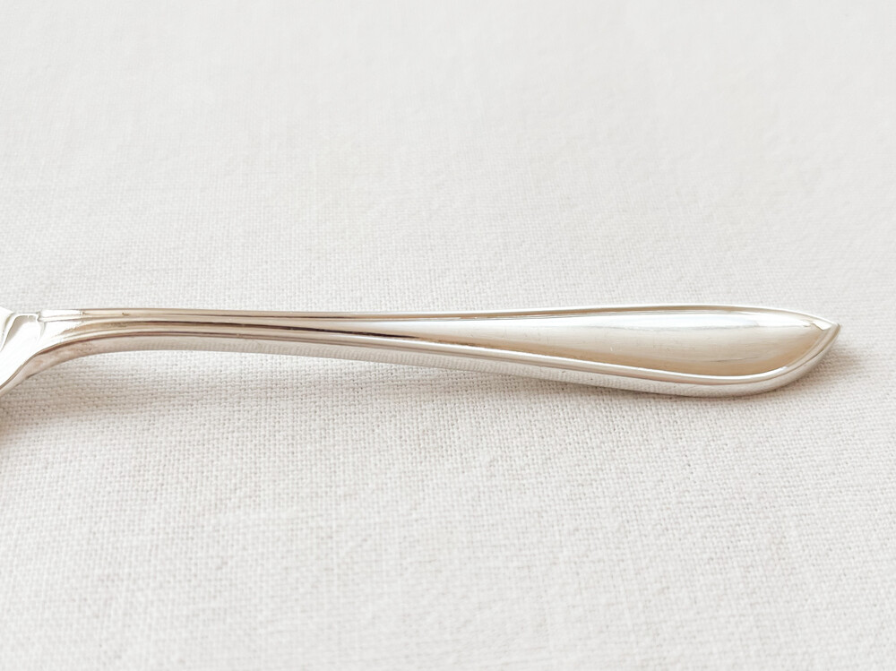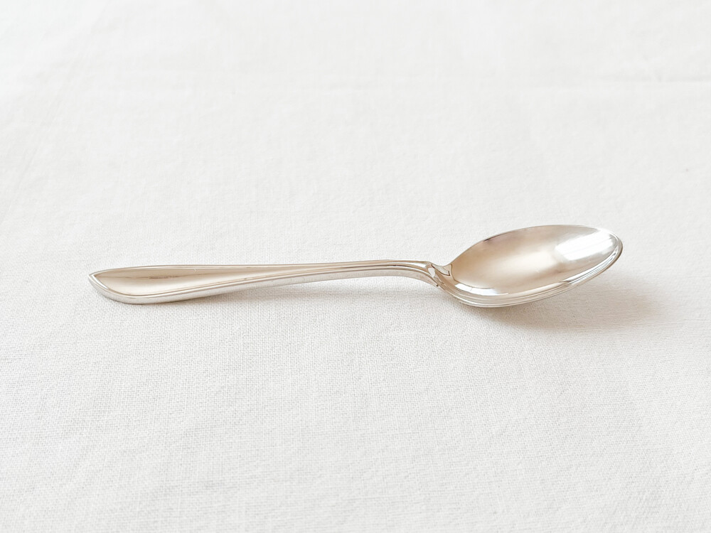바이너스는 영국 셰필드지방에서 1901년부터 커틀러리를 만들기 시작한 브랜드로, 전통적인 방법으로 은세공품을 제작하는 실버스미스가문의 아돌프 바이너로부터 설립되었습니다. 은을 다루는 섬세함과 동시대의 발전하는 재료들의 알맞고 세련된 균형을 특징으로 가지고 있습니다. 점차적으로 입지를 넓혀가던 바이너스는 1930년대에 들어 조지5세의 왕가에서 사용하는 식기들을 제작하게 되며 전성기를 맞이하고, 영국을 포함한 유럽과 북미, 일본등지에서 큰 인기를 가지게 됩니다. 소개해드리는 제품은 1950년대에 만들어진 수프스푼 입니다. 구리copper와 스틸 합금에 은을 입힌 아주 고급스러운 소재로 만들어진 제품입니다. 보드라운 달걀 모양의 보울과 길고 매끈한 핸들로 모양을 이루었습니다. 살랑이는 바람과 가득한 햇빛이 놓인 어떤 공간을 떠올리며, 느긋하고 편안한 감정을 전해줍니다. 찻잔에 설탕이나 꿀을 더하는 스푼으로, 케이크나 아이스크림을 위한 스푼으로 사용하기에 잘 어울립니다.