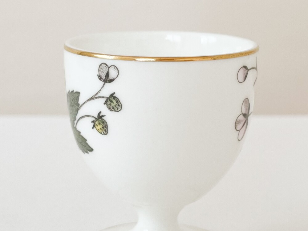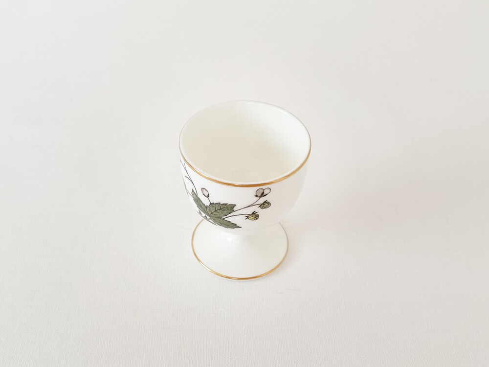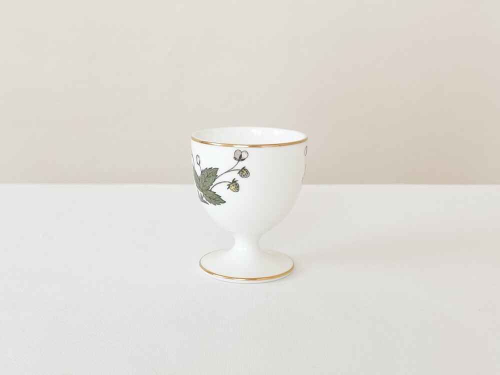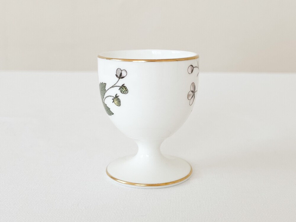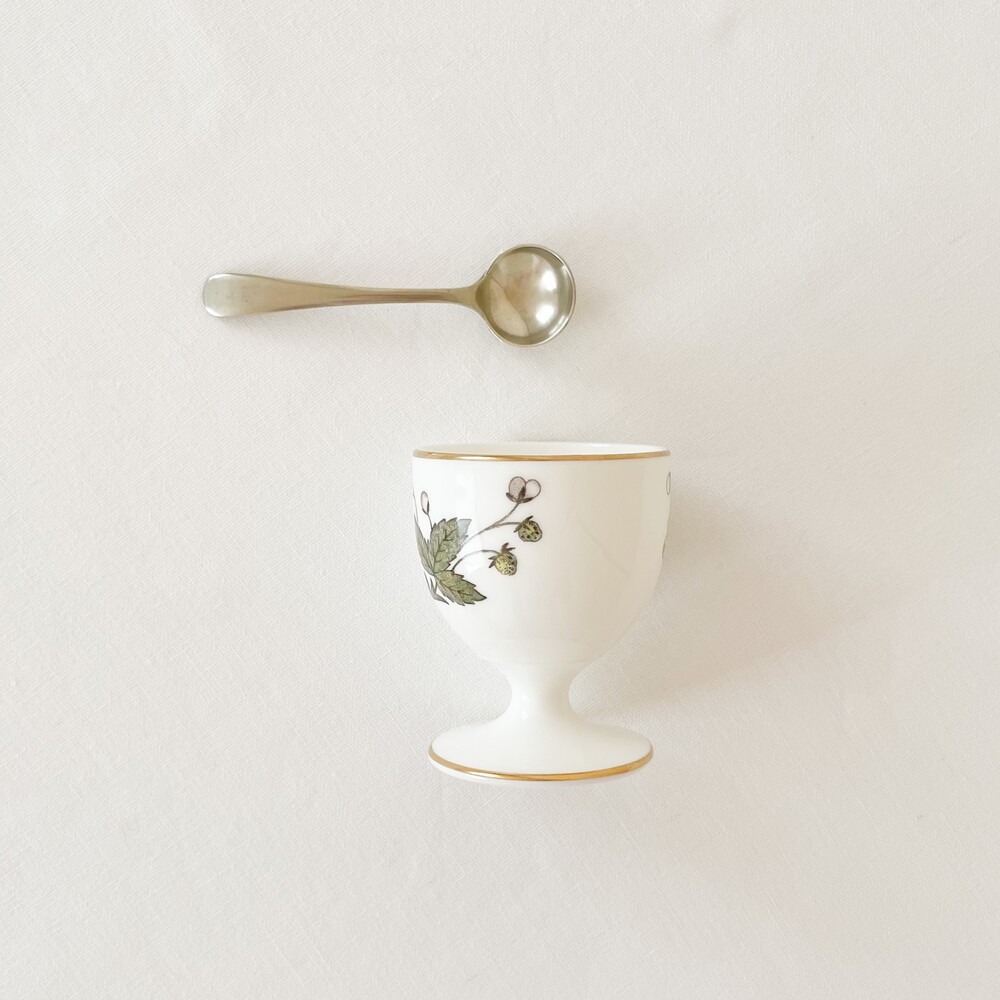 1960년대에 만들어진 웨지우드의 빈티지 에그컵입니다. 웨지우드는 1759년 부터 영국의 버슬램지역에서 도자기를 만들어온 브랜드입니다. 고급 티웨어와 식기들, 그리고 도자기 장식품들을 만들며 가치를 쌓아오는 웨지우드는 1760년대 부터 왕실에서 사용하는 도자기를 제작하게 되기도 합니다. 섬세한 디자인과 좋은 품질의 도자기를 꾸준히 만들어내며, 영국을 비롯한 도자기라는 카테고리를 대표하는 브랜드로 자리잡게 됩니다. 소개해드리는 제품은, 웨지우드 고유의 화사하고 고운결의 크림색의 본차이나를 소재로합니다. 소개해드리는 제품은 1950년대 후반에서 1960년대 초반에 만들어진 것으로, 오목하고 둥근 보울과 낮고 매끄러운 곡선의 스템-베이스로 모양을 이루고 있습니다. 컵의 겉면에는 낮은채도의 색들로 섬세하게 표현된 딸기넝쿨과 단정하게 그려진 22k골드의 줄무늬가 보여집니다. 런던의 V&A와 디자인뮤지엄 등 권위있는 박물관들에 소장되고있는 시리즈로, 눈에 닿는 아름다움과 테이블웨어 로서 가지고있는 형식, 무늬를 표현하는 방법 등 여러 방향에서의 높은 가치를 담아내고 있는 제품입니다. 살랑이는 촉촉한 공기가 가득한 봄날의 한장면, 고전이 가질 수 있는 단단한 아름다움을 살펴 볼 수 있습니다. 부드러운 달걀을 담아내는 아침식탁의 그릇으로, 초를 켜거나 작은 장신구를 보관하는 그릇으로 사용하기에 잘 어울립니다.