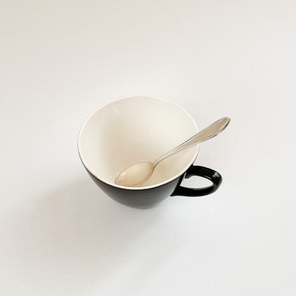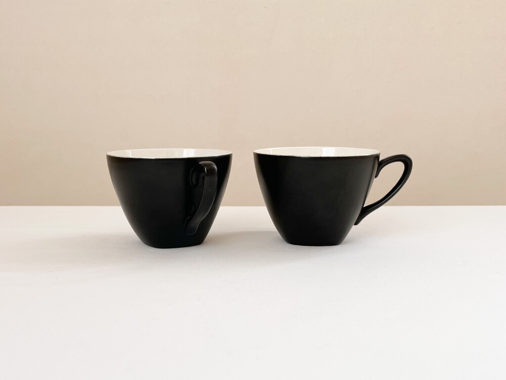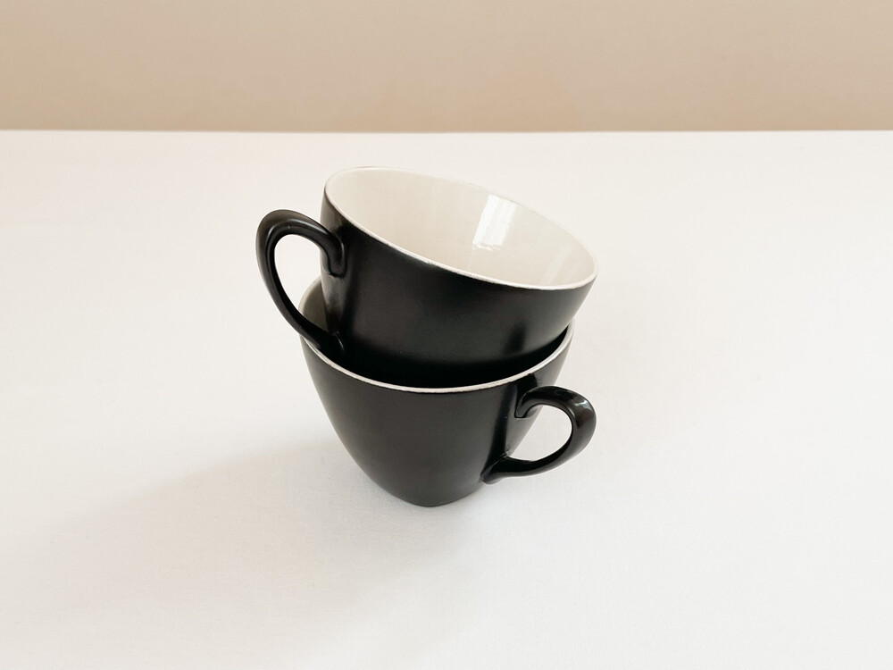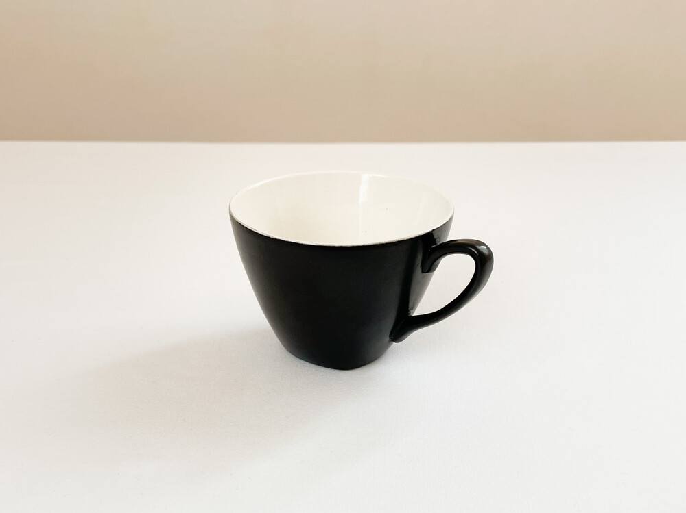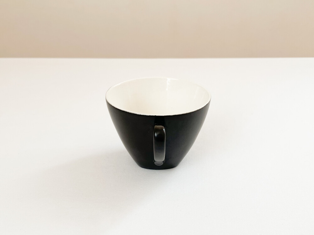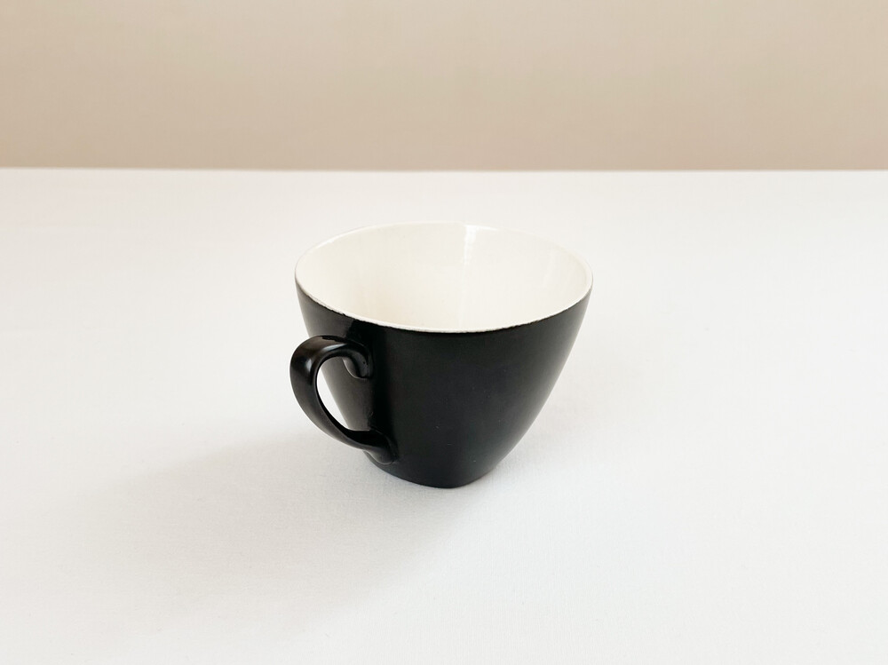 미드윈터는 잉글랜드 중부지방의 버슬렘지역에서 1910년에 부터 시작된, 그 당시의 세련된 트렌드를 이끌어 가던 테이블웨어 브랜드입니다. 소개해드리는 제품은 1955년에 만들어진 제품으로, 하비타트의 창립자로 잘 알려진 테렌스 콘란경에 의해 제작되었습니다. 미드윈터 고유의 군더더기 없는 섬세한 꾸밈과 세련된 디테일에 콘란의 터치를 더해내어 메뉴팩쳐와 아트피스의 가운데 즈음에 있는 높은 완성도를 만들어냈습니다. 스톤웨어를 소재로하며, 비교적 얇은 두께로 제작되어 가벼운 무게감을 가지고있지만 사용하기에 편리한 단단함을 가지고 있습니다. 겉면에 보여지는 벨벳질감의 에보니, 안쪽의 매끄러운 아이보리의 대비가 아름답습니다. 찻잔이 만들어질 당시인 미드센츄리 특유의 단정한 우아함이 깃들어있으며, 소재와 색감이 만들어내는 세련된 분위기가 전해집니다. 아이스크림이나 과일을 담아내는 디저트 그릇으로, 밀크티나 향긋한 커피를 위한 잔으로 사용하기에 잘 어울립니다.