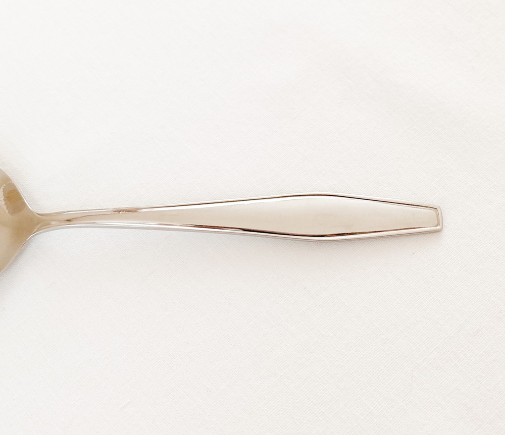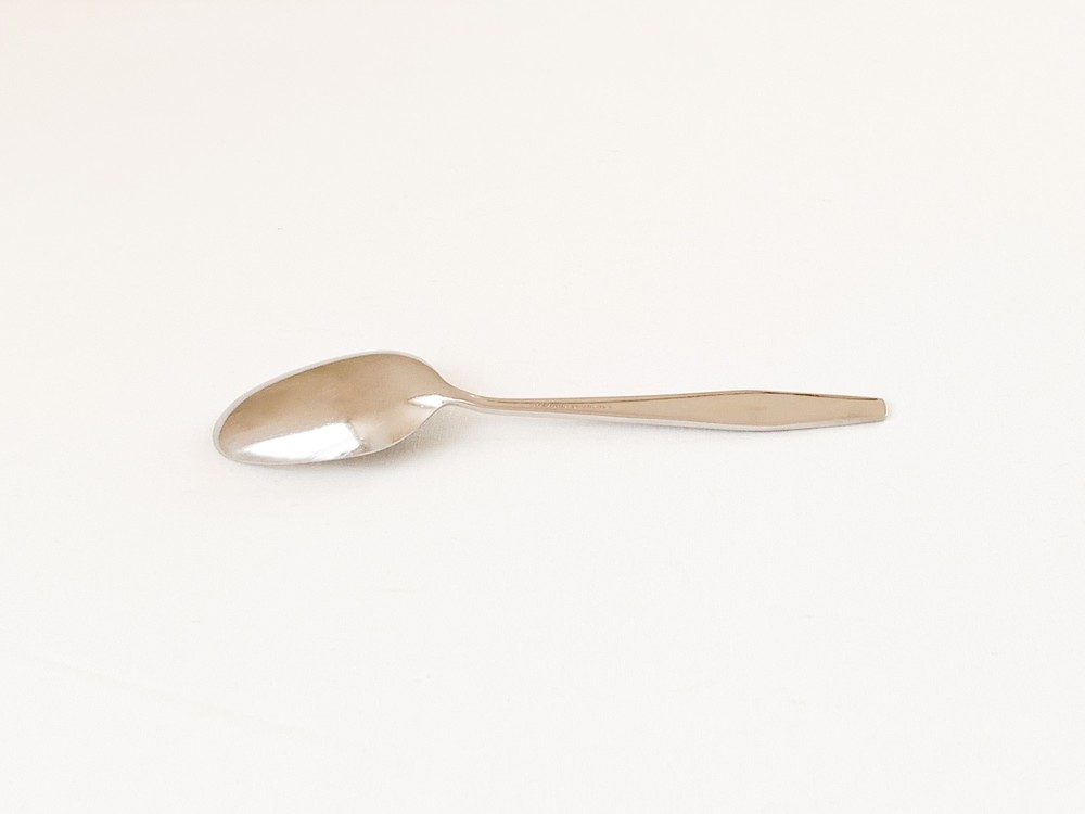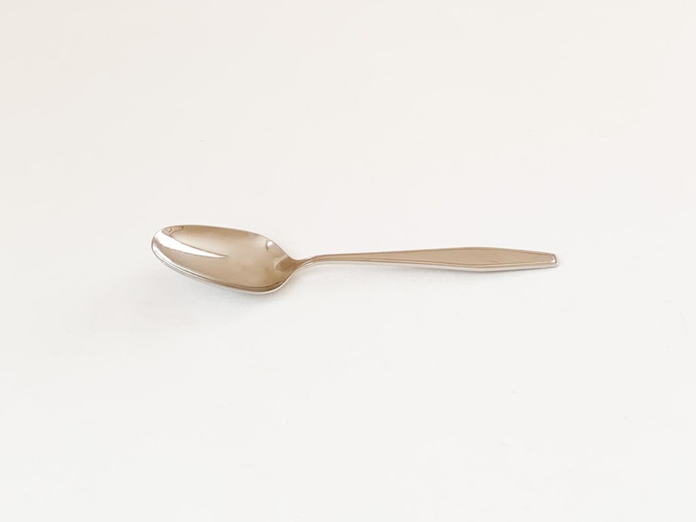 1960년대 후반 덴마크에서 만들어진 빈티지 디저트 스푼입니다. 북유럽 특유의 간결하고 실용적인 디자인이 발전하는 방향을 따라, 그 모습을 이루어내는 소재 또한 같은 흐름을 가지게 되었습니다. 내구성이 좋은 패브릭이나 여러가지 기능의 가지런히 정돈된 목재, 질좋은 스테인리스스틸이 대표적인 소재로- 그 중 스테인리스 스틸은 다른 재료들과 함께 넓은 범위에서 사용되며, 덴마크의 하우스홀드 제품을 대표하는 모티브가 됩니다. 소개해드리는 디저트스푼은 단단하고 고른결을 가진 스테인리스스틸을 소재로 합니다. 끝을 향해 살짝 좁아지는 실루엣의 보울, 매끄럽고 날씬한 핸들로 모양을 이루고 있습니다. 보울과 핸들- 양끝의 납작한듯한 스퀘어팁은 시작과 끝을 하나의 흐름으로 연결해주며, 단정하고 섬세한 매무새를 완성해줍니다. 담담하고 세련된 소재, 세심한 표현들로 부터 깊이있는 아름다움이 전해집니다. 아이스크림이나 케이크를 위한 스푼으로, 매일사용하는 식사시간의 커틀러리로 사용하기에 알맞습니다.