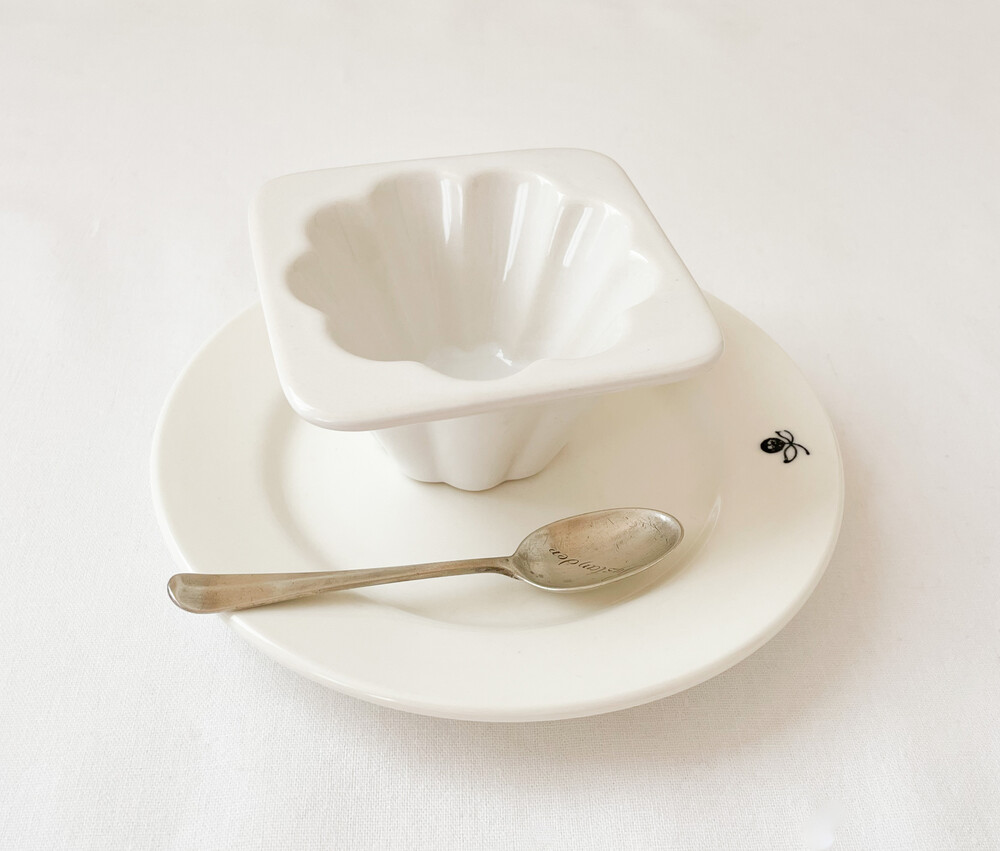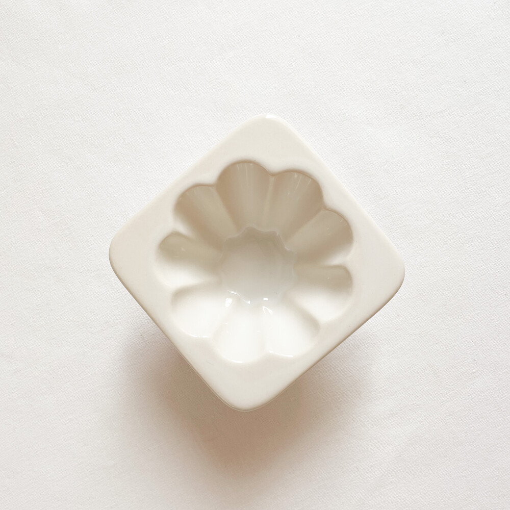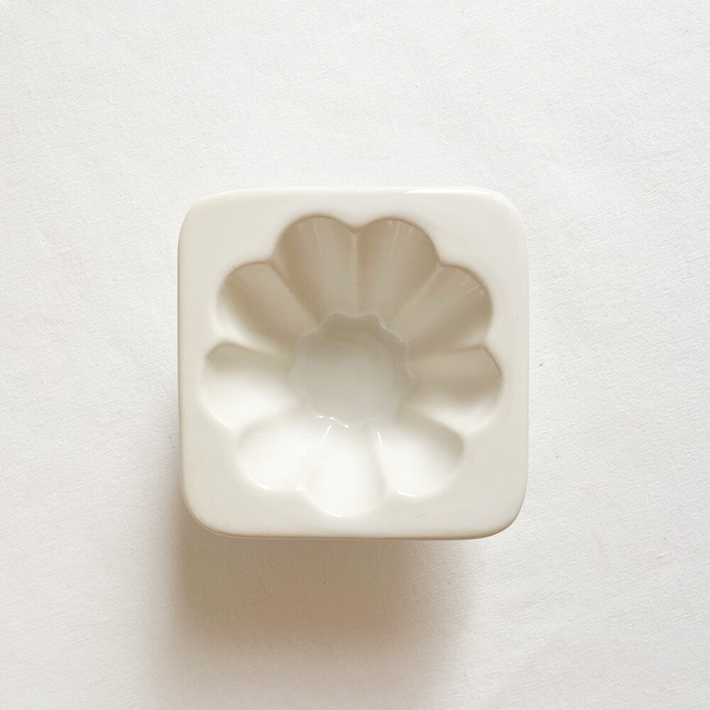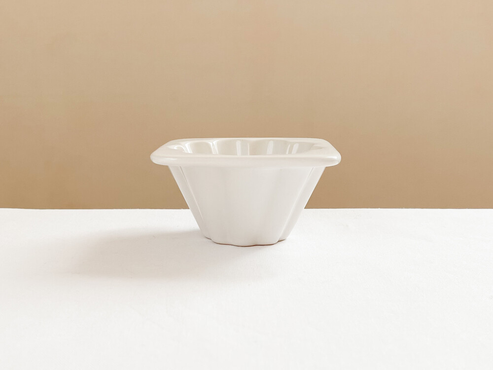 영국의 스토크 온 트렌트 지역에서 1800년대부터 테이블웨어를 만들었던 스튜디오 브랜드에서 만들어진 빈티지 푸딩보울 입니다. 영국배경의 영화의 부엌이나 식탁에 자주 등장하며 공간의 분위기를 완성해주는 아이코닉한 제품으로, 1960년대에 스톤웨어를 소재로 제작 되었습니다. 따뜻한 크림색의 스톤웨어에 새하얀 유약을 입혀 보드랍고 자연스런 빛을 담아냈으며, 둥글고 가지런한 꽃송이가 펼쳐진듯한 고전적인 형태를 가지고 있습니다. 차갑거나 따뜻한 푸딩을 만드는 용도의 보울로, 스톤웨어 특유의 편안하고 따뜻한 감수성과 보울이 만들어질 당시인 60년대의 밝고 단정한 분위기가 보여집니다. 따뜻한 아침식탁을 위한 머핀이나 브레드푸딩을 구워내는 오븐-투-테이블웨어로 알맞으며, 차마시는 시간을 위한 작은 디저트 그릇으로 사용하기에도 잘 어울립니다.