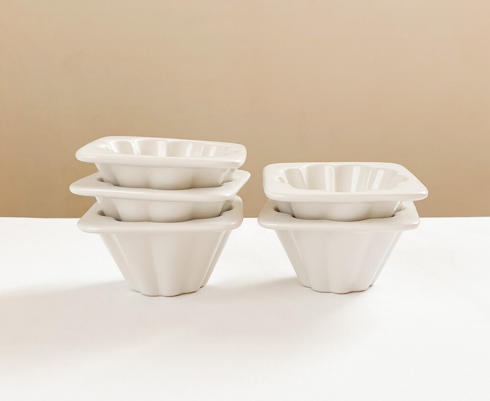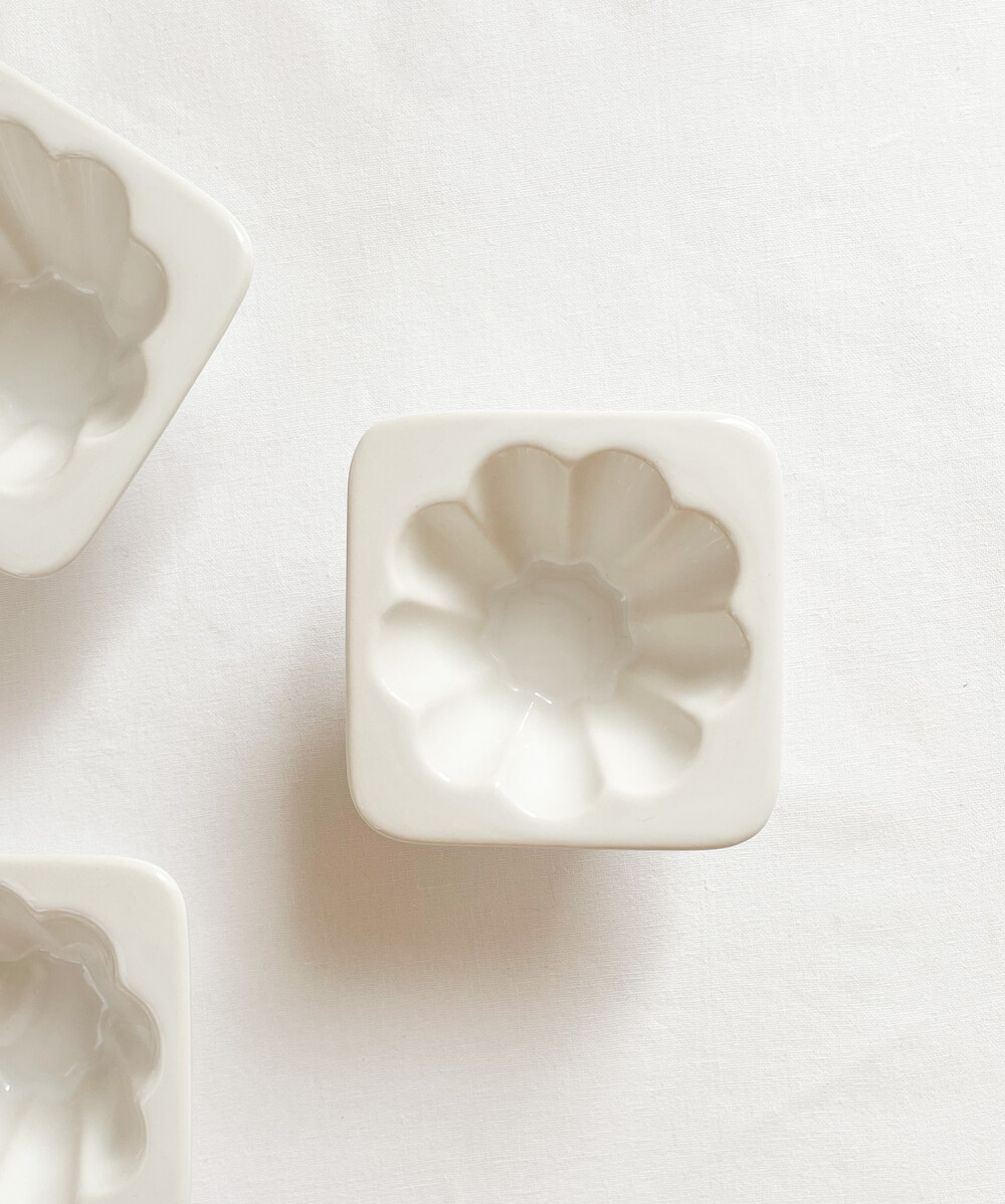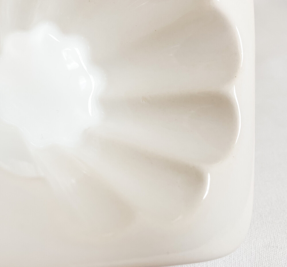 영국의 스토크 온 트렌트 지역에서 1800년대부터 테이블웨어를 만들었던 스튜디오 브랜드에서 만들어진 빈티지 푸딩보울 입니다. 영국배경의 영화의 부엌이나 식탁에 자주 등장하며 공간의 분위기를 완성해주는 아이코닉한 제품으로, 1960년대에 스톤웨어를 소재로 제작 되었습니다. 따뜻한 크림색의 스톤웨어에 새하얀 유약을 입혀 보드랍고 자연스런 빛을 담아냈으며, 둥글고 가지런한 꽃송이가 펼쳐진듯한 고전적인 형태를 가지고 있습니다. 차갑거나 따뜻한 푸딩을 만드는 용도의 보울로, 스톤웨어 특유의 편안하고 따뜻한 감수성과 보울이 만들어질 당시인 60년대의 밝고 단정한 분위기가 보여집니다. 따뜻한 아침식탁을 위한 머핀이나 브레드푸딩을 구워내는 오븐-투-테이블웨어로 알맞으며, 차마시는 시간을 위한 작은 디저트 그릇으로 사용하기에도 잘 어울립니다.