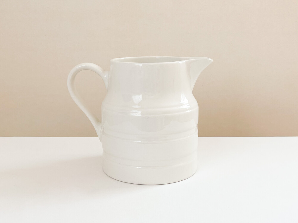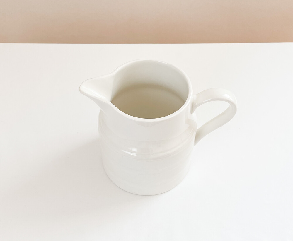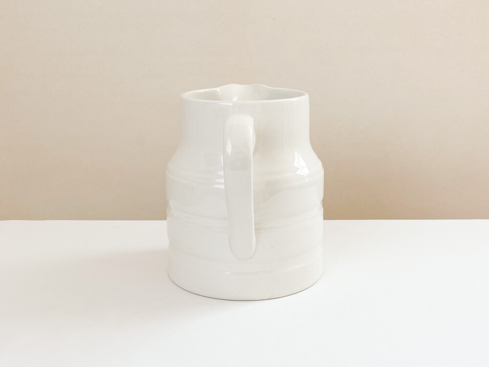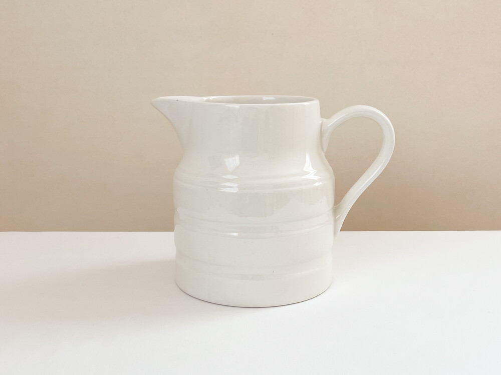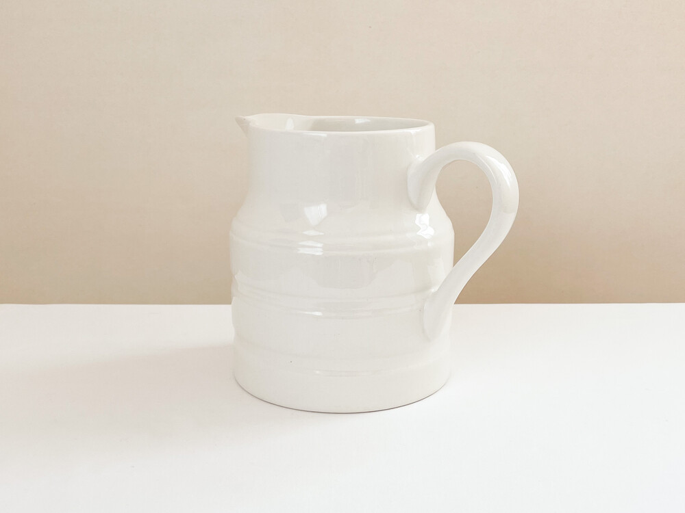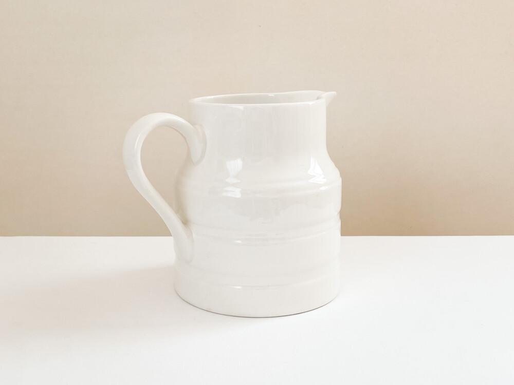 영국의 스토크 온 트렌트 지역에서 1800년대부터 테이블웨어를 만들었던 스튜디오 브랜드에서 만들어진 빈티지 워터저그입니다. 영국배경의 영화의 부엌이나 식탁에 자주 등장하며 공간의 분위기를 완성해주는 아이코닉한 제품으로, 1960년대에 스톤웨어를 소재로 제작 되었습니다. 소재 고유의 담담하고 깨끗한 빛, 그와 잘 어울리는 명료한 선들을 가지고 있습니다. 스톤웨어 특유의 편안하고 따뜻한 감수성과 저그가 만들어질 당시인 60년대의 경쾌하고 세련된 위트가 함께 보여집니다. 꽃과 잎사귀를 담아두는 화병으로, 차를 마시는 넉넉한 티팟이나 주스저그로 사용하기에 잘 어울립니다.