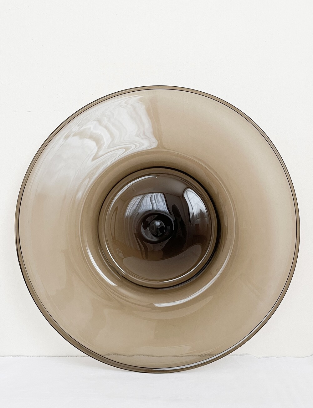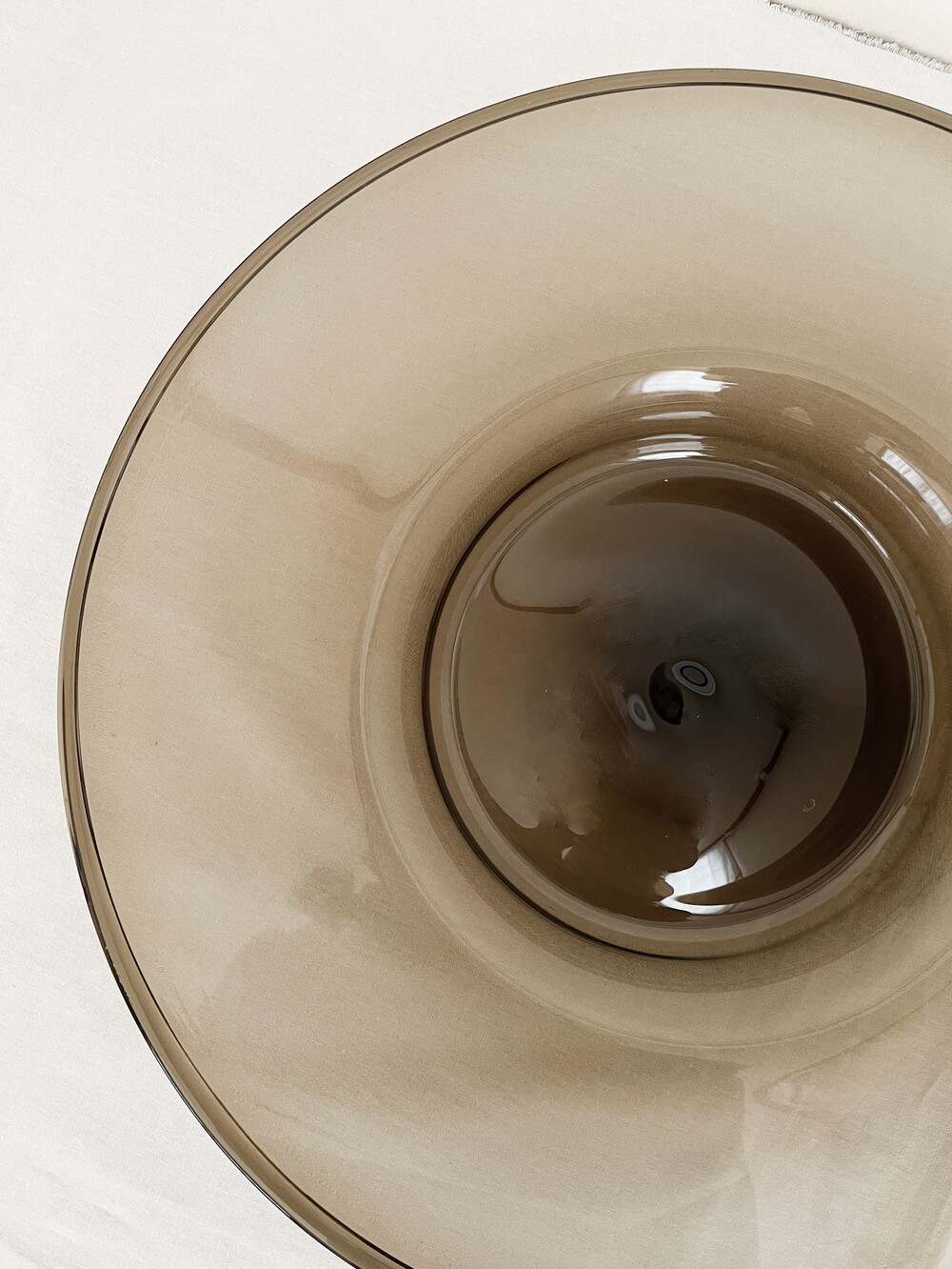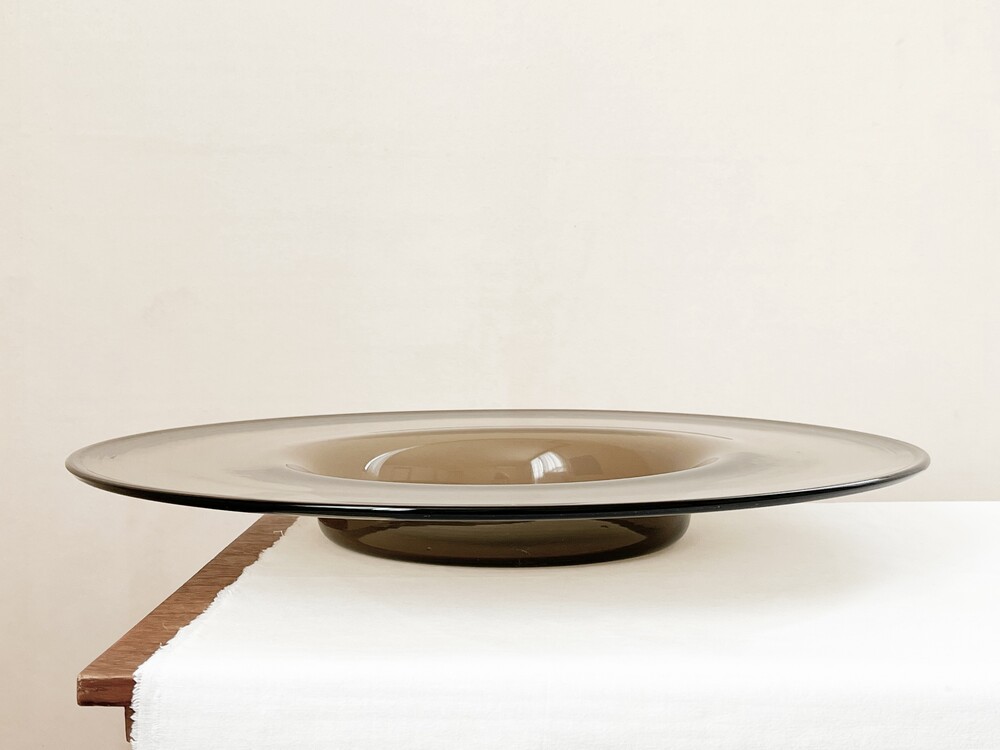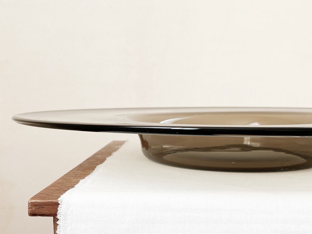 1960년대 초반 프랑스에서 만들어진 빈티지 베이슨입니다. 1892년 프랑스 북부의 아르크지방에서 제작된 것으로, 각 공정의 마스터들이 모여 유리물건을 만들었던 스튜디오의 제품입니다. 소개해드리는 베이슨은 따스함을 머금은 맑은 빛의 압착강화유리를 소재로하며, 넓은 가장자리와 오목한 바닥면의 둥근 모양을 가지고 있습니다. 이음새가 없이 완성된 부드러운 곡선들, 시원스래 펼쳐진 넉넉한 크기로부터 전해지는 우아한 무게감, 실루엣의 흐름을 따라 겹쳐지고 펼쳐지는 겹들이 아름답습니다. 기다란 꽃가지나 잎사귀, 단정한 모습의 꽃송이들, 다가오는 계절을 알리는 구근들을 가지런히 뉘여 담아 두기에 잘 어울리며, 과일을 담아두거나 자주 사용하는 물건들을 정돈하는 바스켓으로 놓아두기에도 알맞습니다. 단정한 모습이지만 조금은 생경하기도한 스케일의 베이슨은 빛을 머금은 조각같기도, 휼륭한 가구같은 존재가 되기도 합니다.
