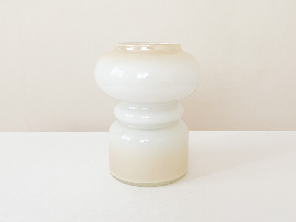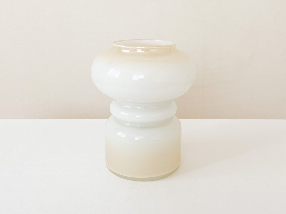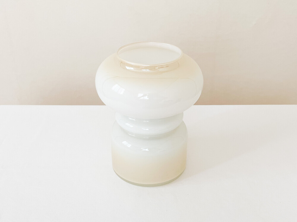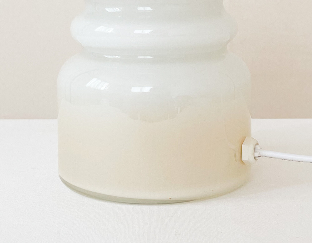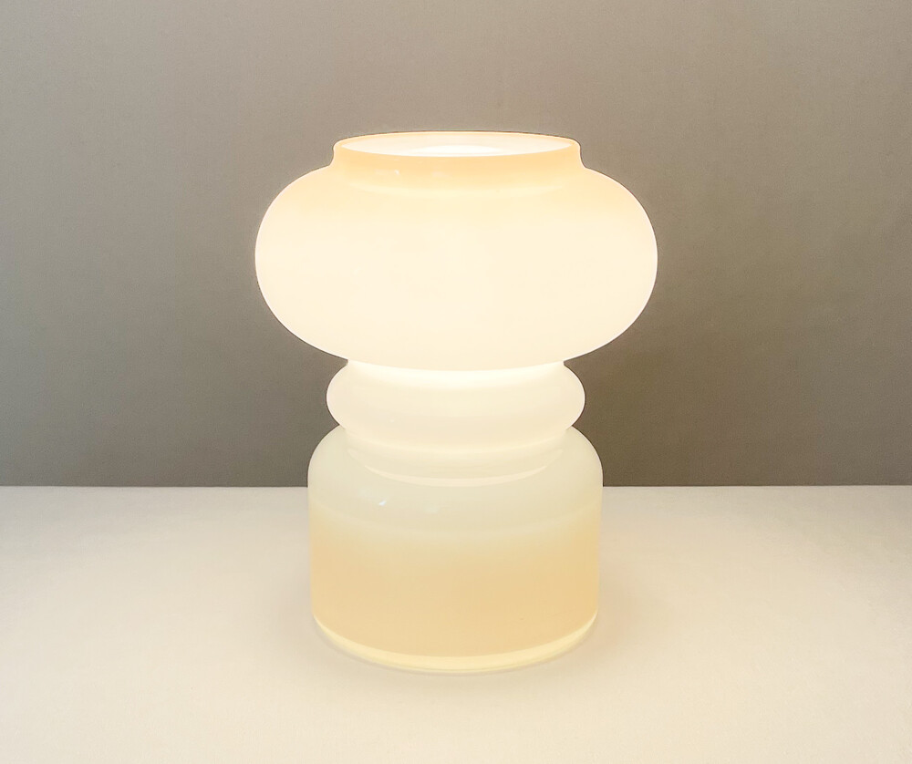 하비타트는 1964년에 설립된 영국의 하우스홀드 브랜드로, 산업디자이너로서 중요한 위치를 가지고있는 콘란에의해 시작 되었습니다. 하비타트라는 이름이 의미하는 것처럼 살아가는데 필요한 여러가지 물건들을 만들어내고있습니다. 미드센츄리디자인과 바우하우스를 기반으로, 보기좋은 디자인과 실용성- 좋은품질과 맥락을 잘 갖춘 적당한 제품들을 제작하며 영국 및 유럽내에서 지금도 보편적인 인기를 유지하고 있습니다. 소개해드리는 제품은 하비타트가 문을열었던 1960년대 중후반즈음의 테이블램프입니다. 초창기 하비타드의 유리제품과 관련해 교류가 많았던 네덜란드의 hala zeist에서 제작된 제품으로- 콘란이 직접적으로 하비타트에 관여했을 당시의 제품이 가지는 높은 소장가치와 더불어, 유럽 미드센츄리 조명의 중심에 있었던 hala zeist의 제작제품이라는 귀중한 의미가 담겨있습니다. 투명한 유리 사이에 새하얀색의 유리를 겹쳐낸 단단한 유리를 소재로하며, 같은 흐름으로 연결되는 다양한 동그라미들이 만들어내는 밝은 리듬의 실루엣으로 형태를 갖추고 있습니다. 램프의 위와 아래에는 바탕이 되는 하얀 유리와 잘 어울리는- 베이지에 가까운 맑은 오렌지색이 번지는듯한 모습으로 입혀져 있습니다. 매끄러운 소재와 실루엣, 아름담게 담겨진 오렌지 플러쉬는 빛을 전하는 물건인 램프의 의미와 함께 아름다운 조화로움을 전해줍니다. 램프의 작동에 필요한 플러그와 전선은 국내에서 안전하게 사용할 수 있도록 인증이 된 제품으로 수리가 완료되었습니다. 불을 켰을때에는 은은하게 램프를 감싸는 빛이 보여집니다. 램프에 담긴 시간과 이야기로부터 우아함과 위트가 전해집니다. 책장이나 선반에 놓아두는 아름다운 장식으로, 소파곁이나 침실에 두는 편안한 조명으로 사용하기에 잘 어울립니다.