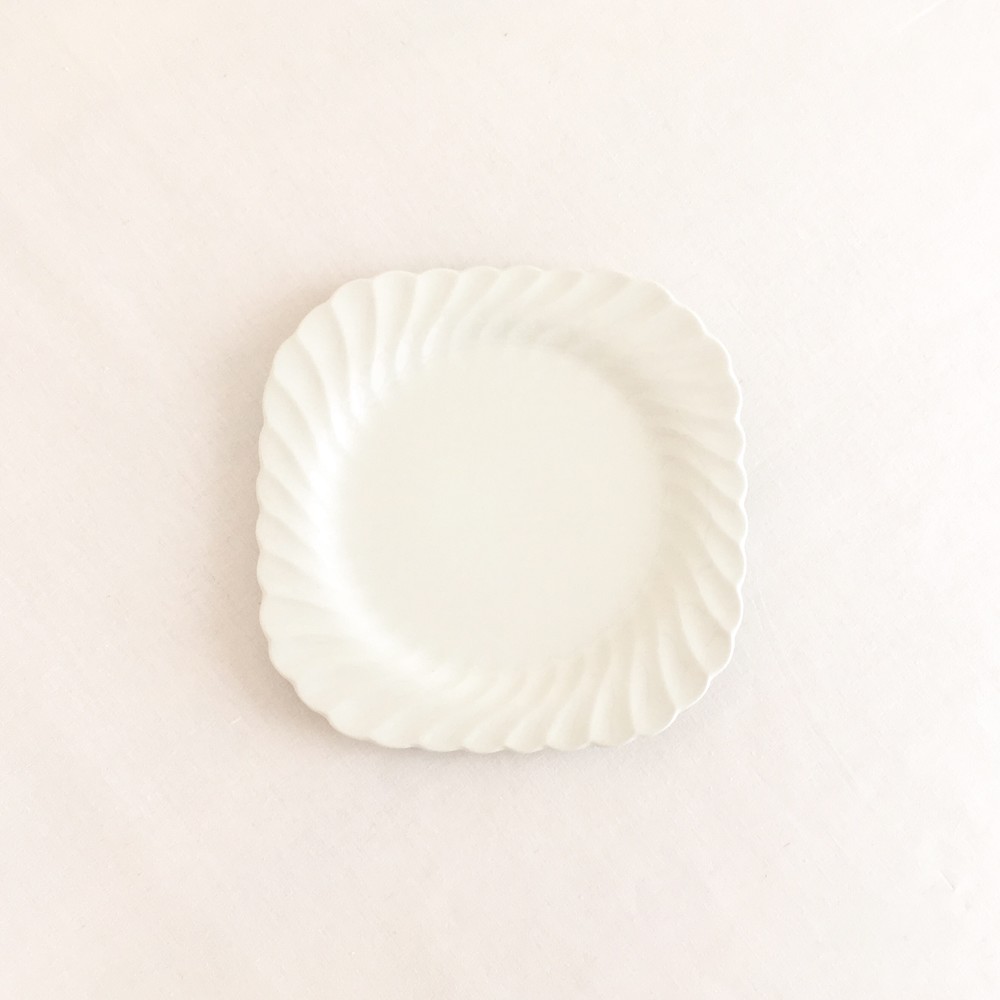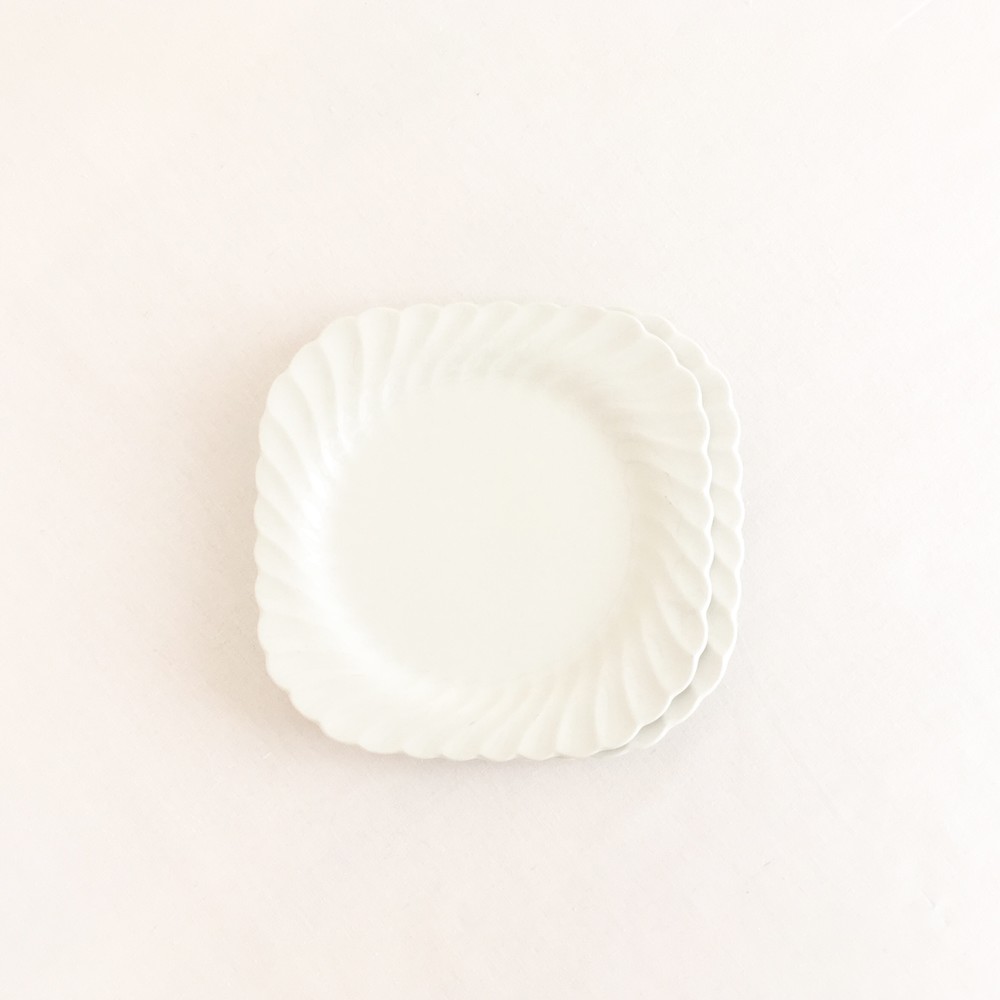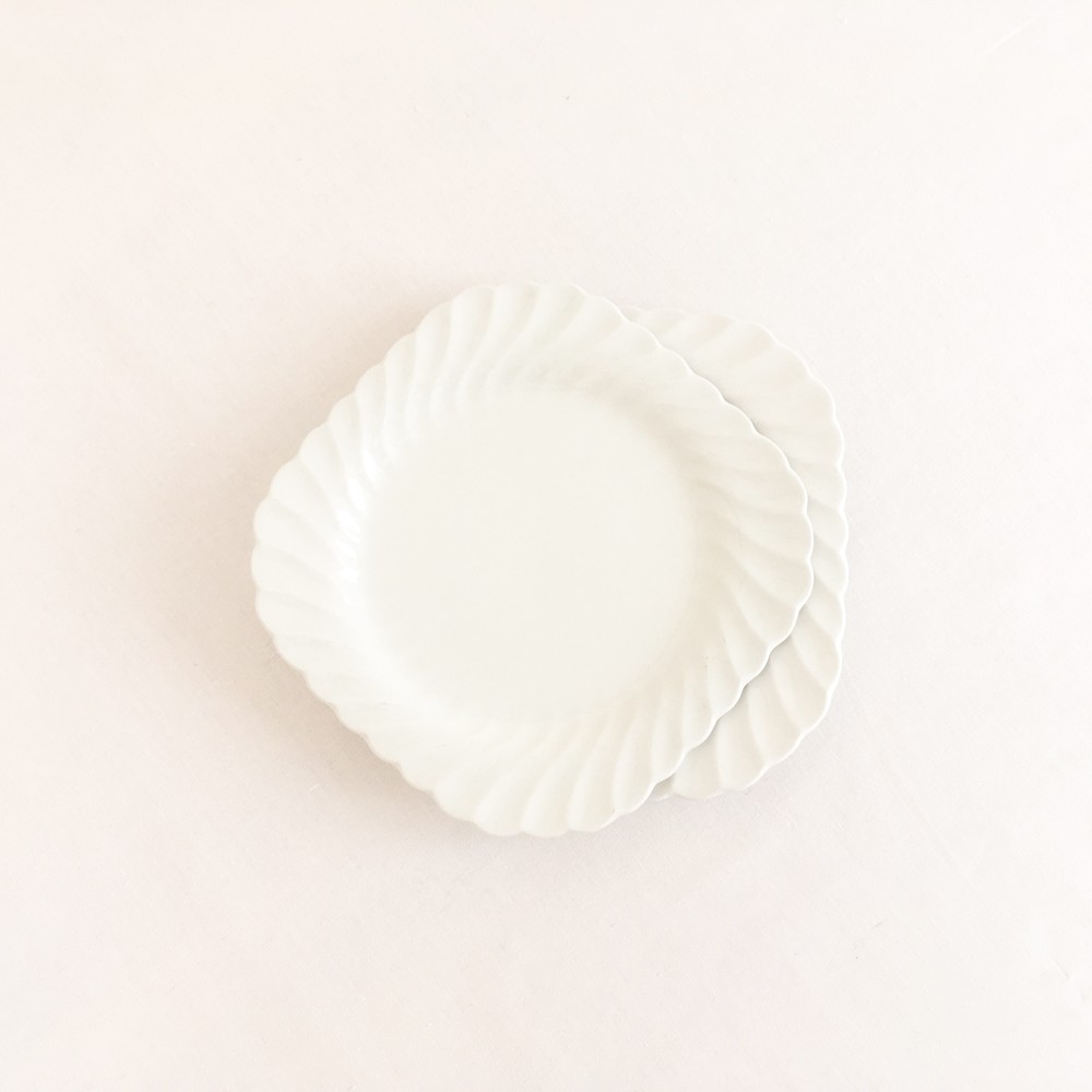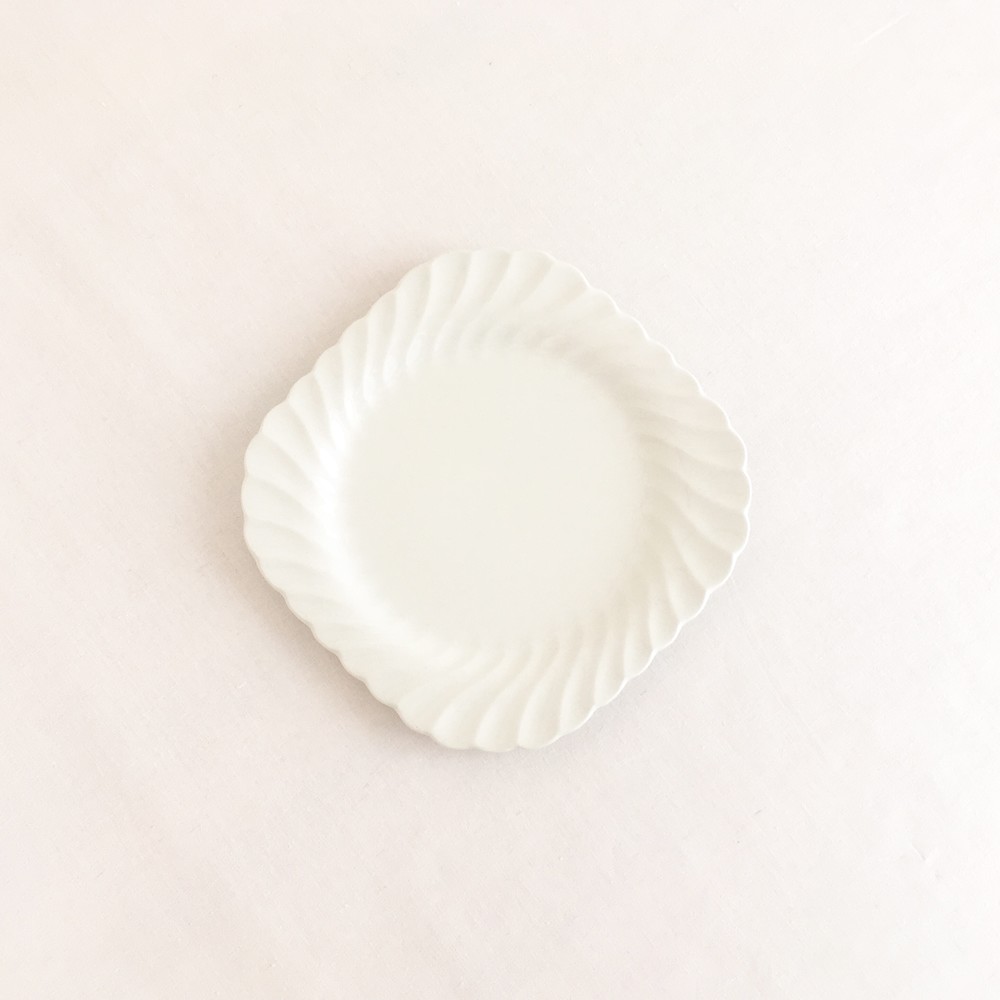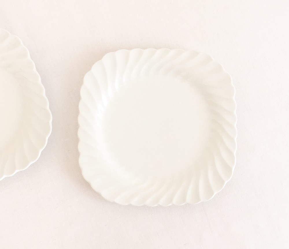 존슨브라더스는 1883년 영국 도자기의 중심지 스토크온트렌트에서 시작된 브랜드입니다. 화이트웨어라는 식탁의 기본이 될 수 있는 모티브를 가지고, 사용과 관리가 편리한 도기와 좋은 내구성이 좋은 자기의 특징을 두루 갖춘 세미포슬린 테이블웨어를 만들었습니다. 1900년대에는 영국 왕실이 주최가되는 어워드에서 좋은성과를 거두며 가치를 증명하였고, 쓰임새좋은 생활용품과 훌륭한 수집품으로서의 위치를 유지하고 있습니다. 소개해드리는 제품은 1960년대에 제작된 케이크플레이트입니다. 단단하고 깨끗한 광택이 보여지는 세미포슬린이 재료로 사용되었으며, 여리고 섬세한 곡선들이 보여집니다. 모서리가 둥근 사각형의 접시는, 유연하고 가지런히 펼쳐지는 가장자리의 물결모양 장식을따라 평평한 동그라미모양으로 연결되며 전체의 형태를 이룹니다. 흐트러짐 없이 우아하고 단정한 아름다움을 간직한 제품입니다. 차마시는 시간의 크림케이크나 쇼트브레드를 담아내는 그릇으로 알맞으며, 반짝이는 작은 물건들을 정돈하는 트레이로 사용하기에도 아주 잘 어울립니다.