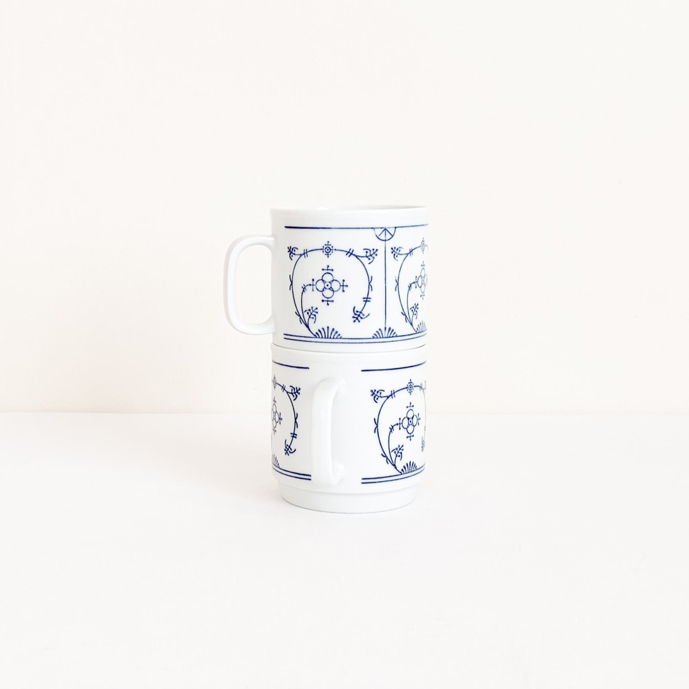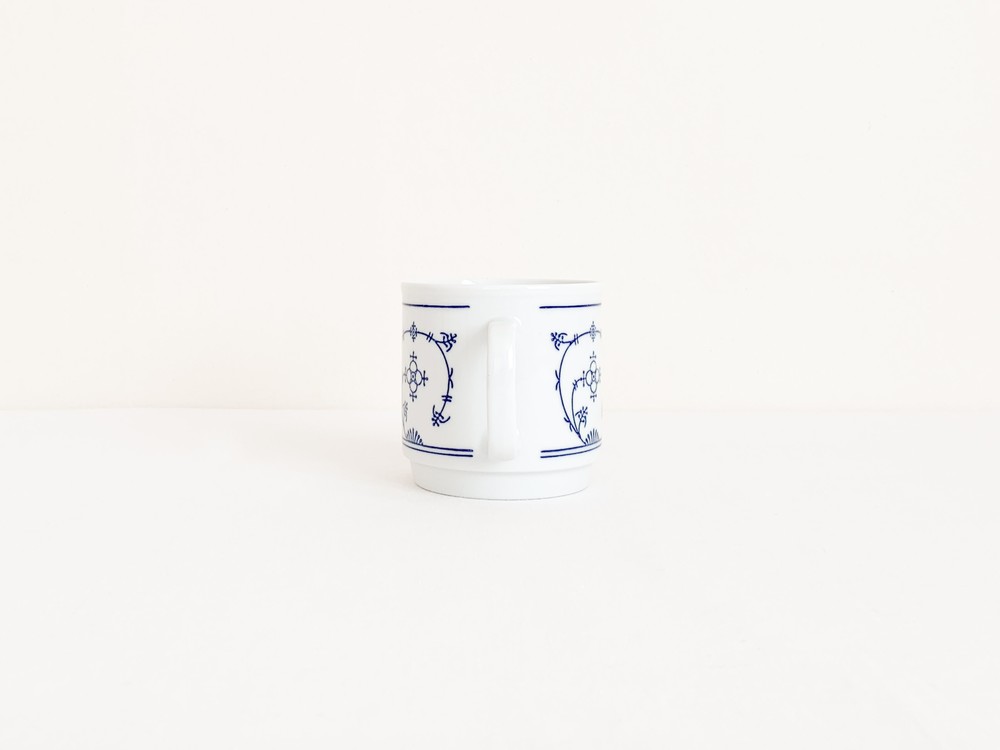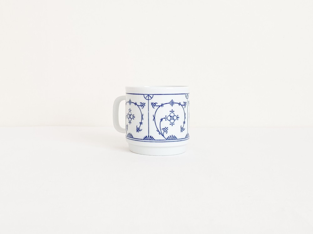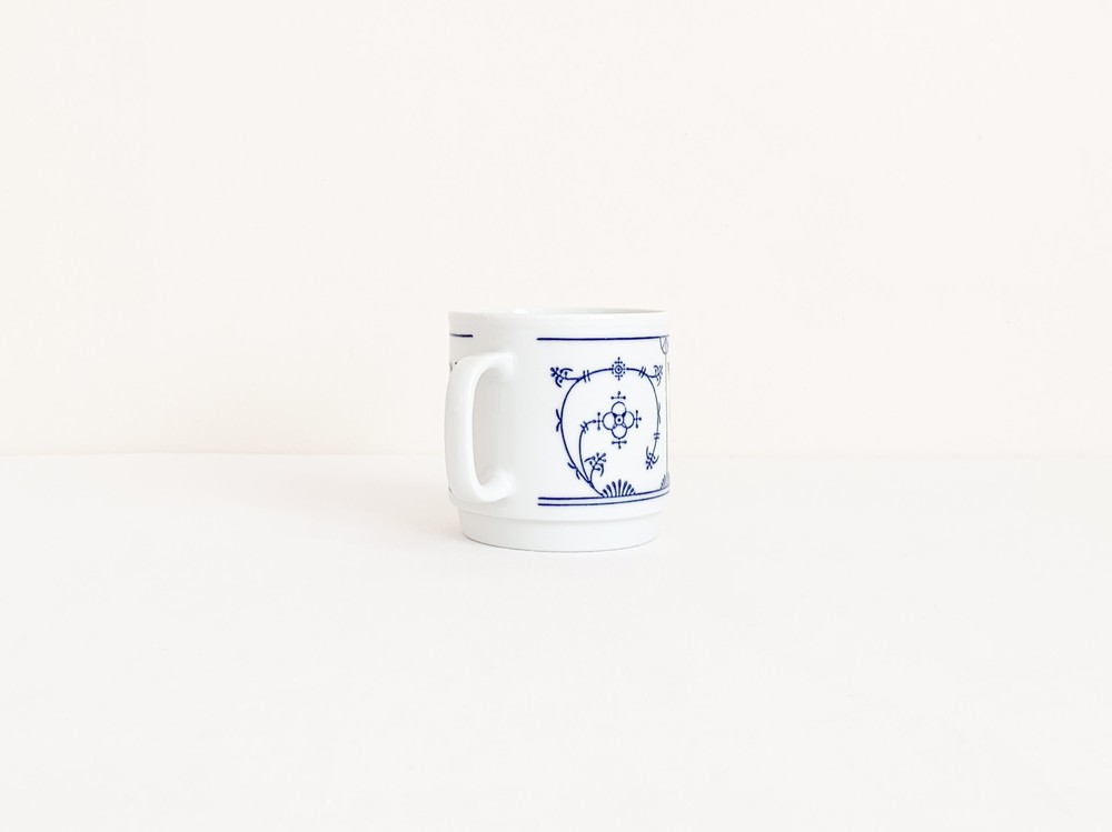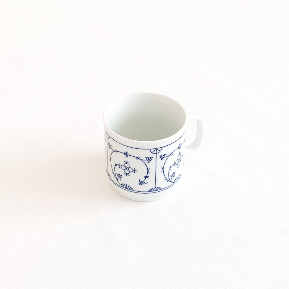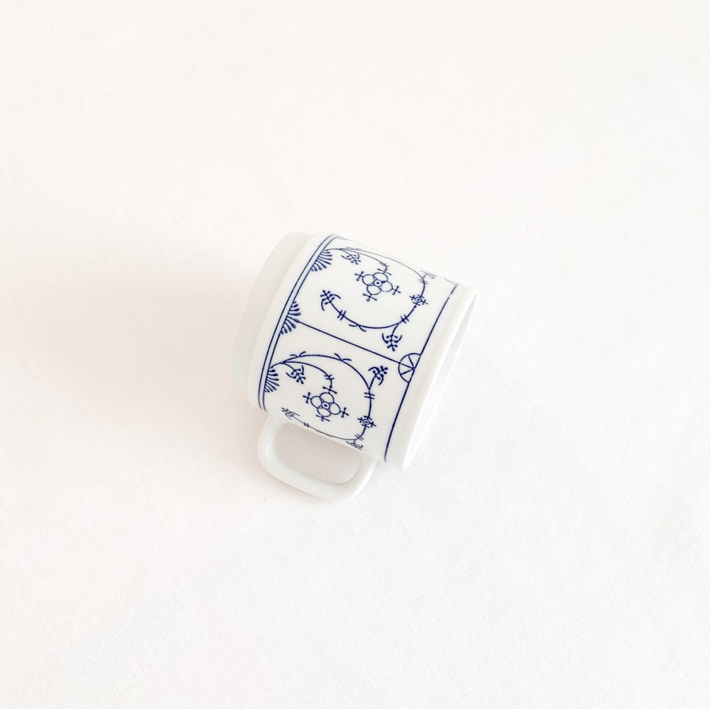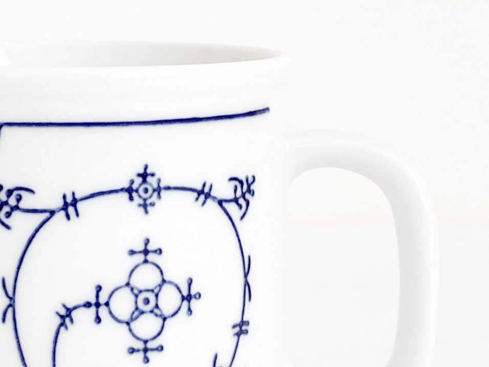 1844년부터 독일의 튀링겐 지방에서 테이블웨어를 만들어온 칼라의 빈티지 머그입니다. 칼라는 제품이 제작되는 각각의 공정에 맞는 마스터들에의해 세심하게 도자기가 만들어지는 방식을 지켜오며, 고전적인 코발트 블루의 줄기과 꽃무늬를 하얀 포슬린 위에 그려넣은 테이블웨어들로, 독일을 대표하는 파인포슬린 브랜드로 자리하게 됩니다. 소개해 드리는 제품은 1960년대에 만들어진것으로, 칼라 고유의 분위기를 잘 전해주는 코발트 블루의 무늬로 꾸며졌습니다. 창백하고 맑은 하얀색 포슬린의 겉면에 꽃과 식물의 줄기을 모티프로한 가느다란 그림이 그려지고 고운결의 유약이 얇게 입혀져있으며- 균형있는 형태와 정확한 면분할안에 조금은 불규칙하게 펼쳐진 무늬의 배열과 함께 아주 여성적이고 화려하며 과장됨없는 표현이 보여집니다. 머그의 바닥면은 스태킹스탠드의 모습으로 다듬어져 사용과 보관에 편리성을 더해줍니다. 넉넉한 크기의 머그로, 밀크티나 카페오레를 마시는 아침의 찻잔으로- 오트밀이나 요거트를 담아내는 간결한 식사시간을 위한 그릇으로 사용하기에 알맞습니다.
