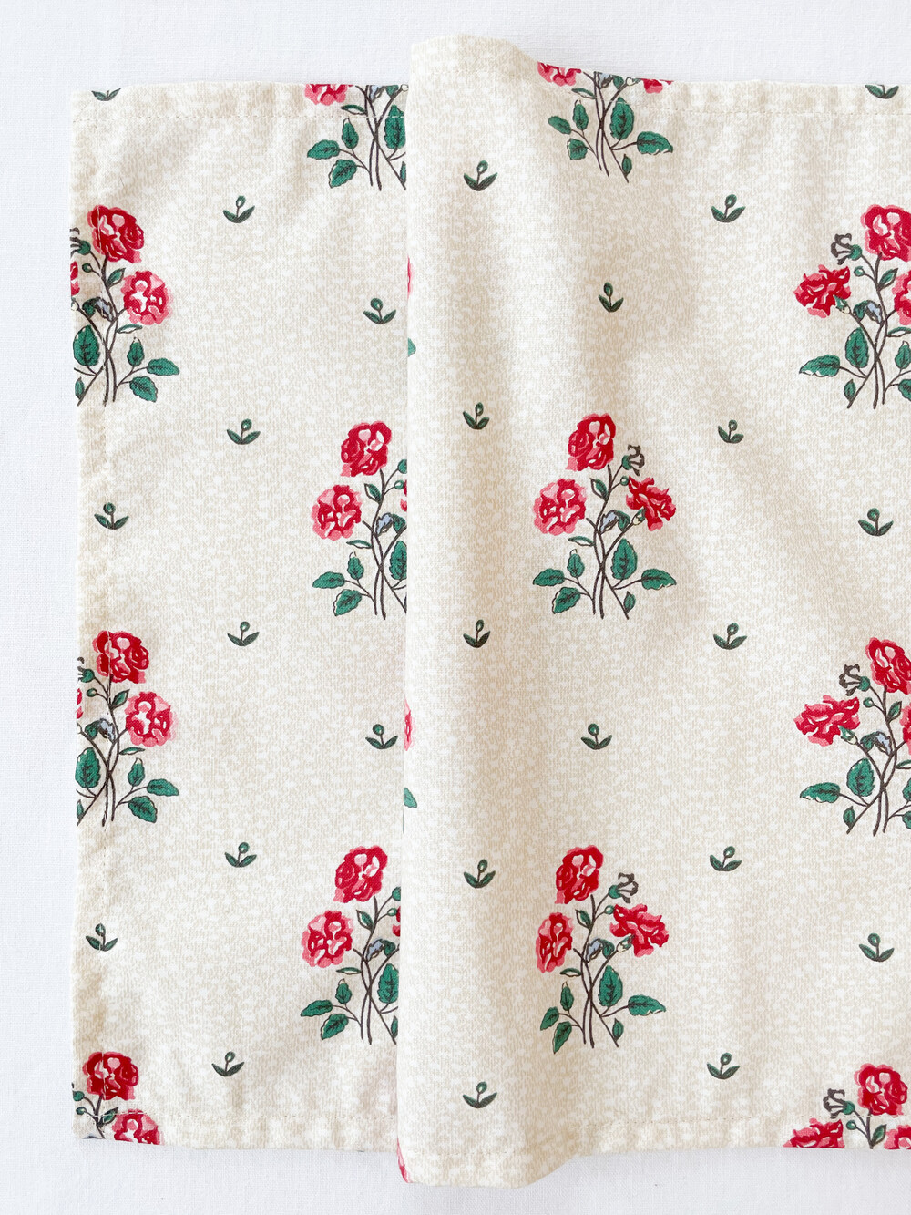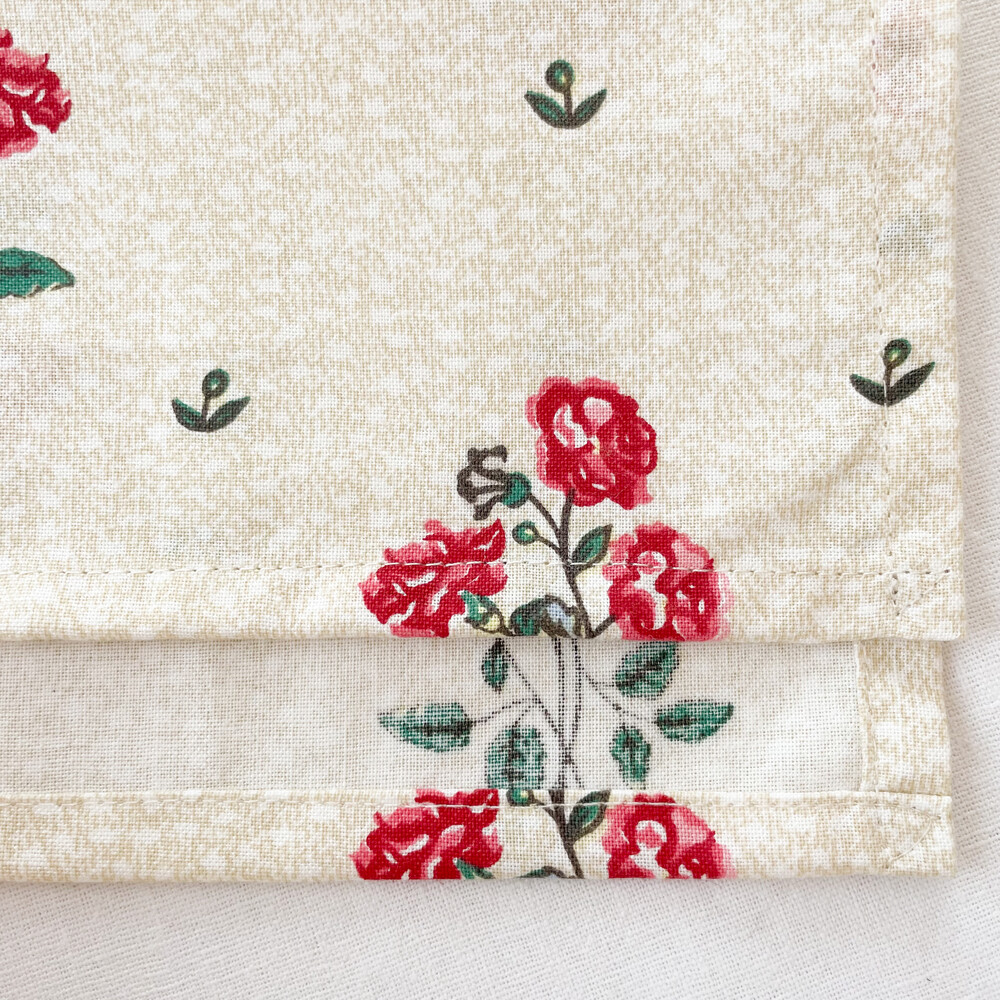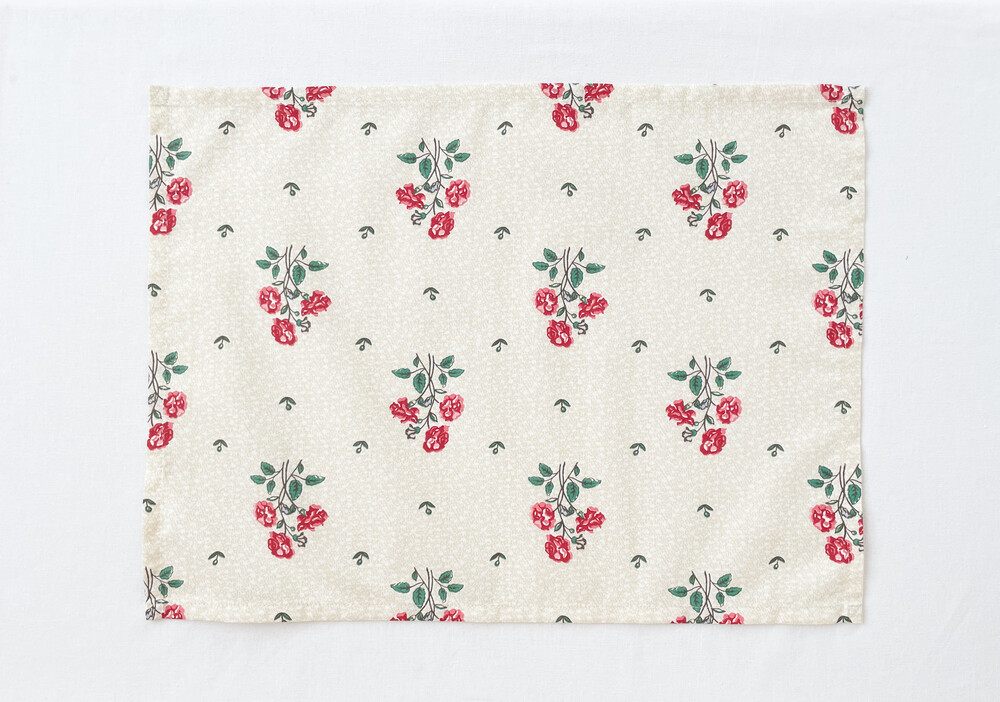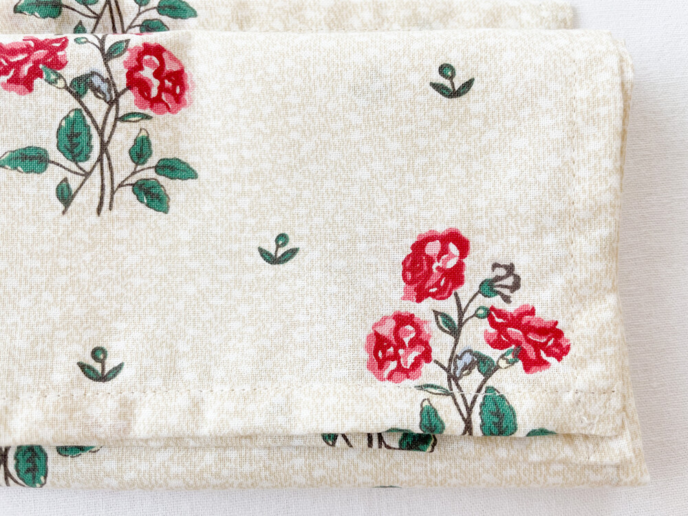 로라애슐리는 1950년대 런던의 핌리코지역에서 시작된 브랜드로, 독자적인 패턴을 이용해 집안에서 쓰이는 패브릭제품들을 만드는것으로 시작된 브랜드입니다. 영국의 복식사를 바탕으로 만들어진- brithsh romantic이라는 모티브의 고전적인 무늬와 레이스의 패브릭으로, 사용하기에 편리한 제품들을 제작하며- 전통과 동시대를 아우르는 여성 디자이너로서 큰명성을 가지게 됩니다. 이후 로라애슐리만의 패턴을 사용한 여러가지 하우스홀드 제품들을 만들어내며 세계적인 브랜드로 범위를 넓혀갑니다. 소개해드리는 제품은 1960년대에 만들어진, 전원풍의 장미 부케와 조그마한 식물 패턴이 스크리닝 된 패브릭으로 만들어진 테이블클로스입니다. 부드럽고 단단한 감촉의 고운결의 코튼을 소재로 합니다. 밝은 계절과 잘 어울리는 화사한 베이지와 크림의 배경, 햇살을 머금은 편안하고 우아한 빨강과 초록이 조화롭습니다. 소재가 가지고 있는 정돈된 분위기, 모티브와 색들이 전해주는 경쾌한 여유로움이 담겨있는 제품입니다. 두 가지 크기가 준비 되어있습니다. 테이블매트나 티클로스로, 브레드바스켓이나 런치박스를 감싸는 타월로 놓아두기에 알맞으며- 햇살과 바람이 있는 피크닉을 위한 클로스로 사용하기에도 잘 어울립니다.