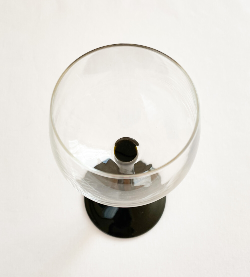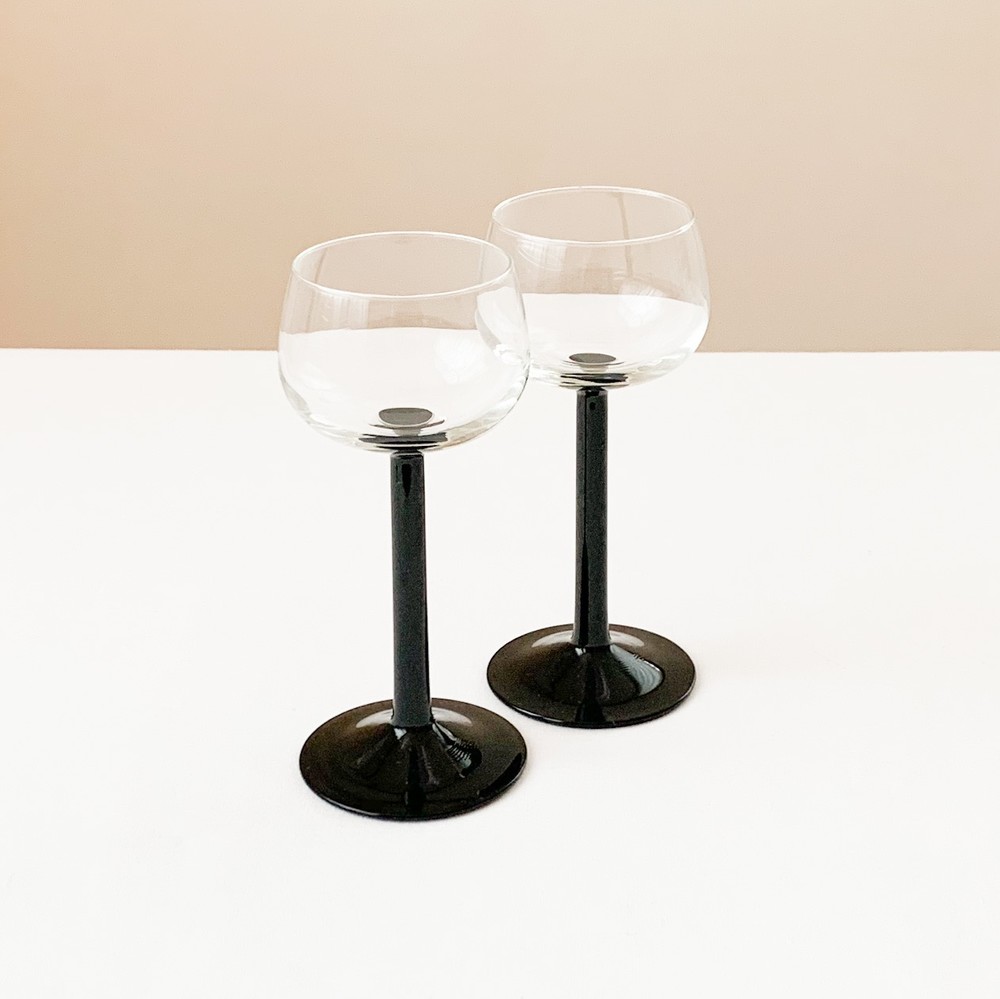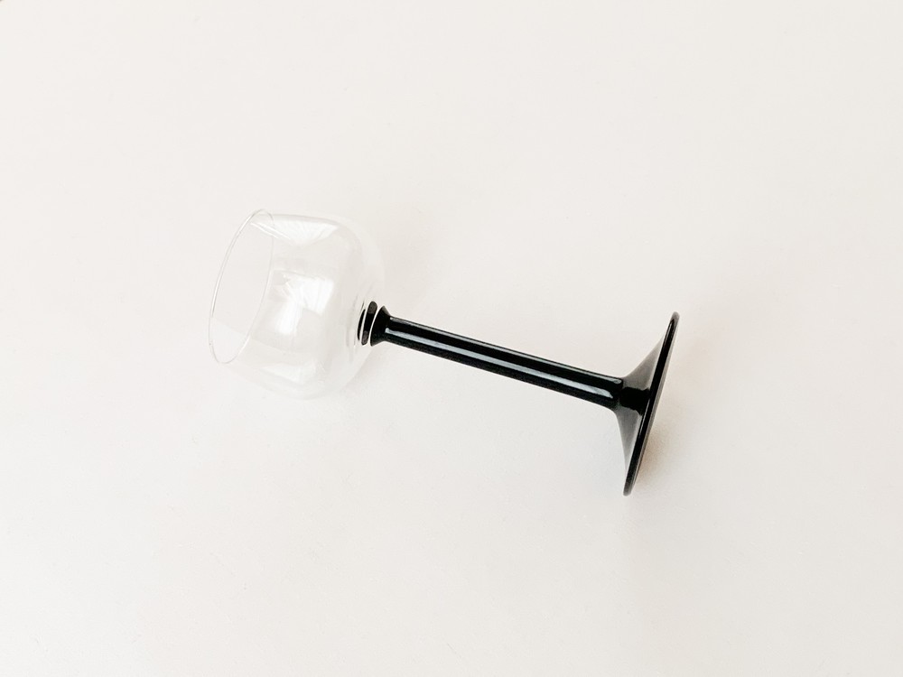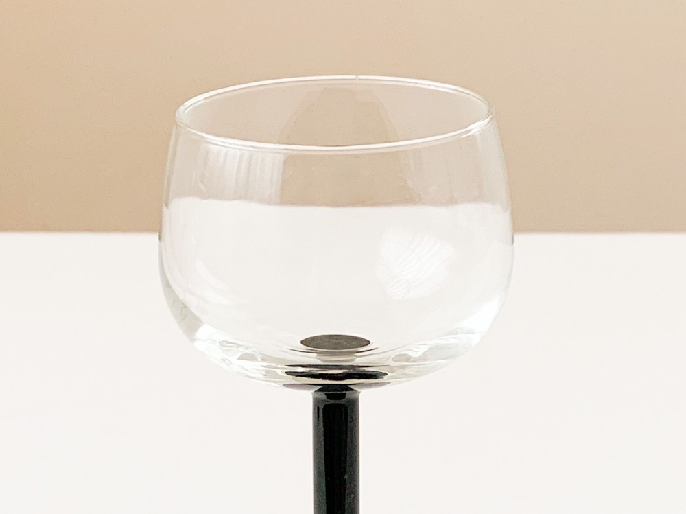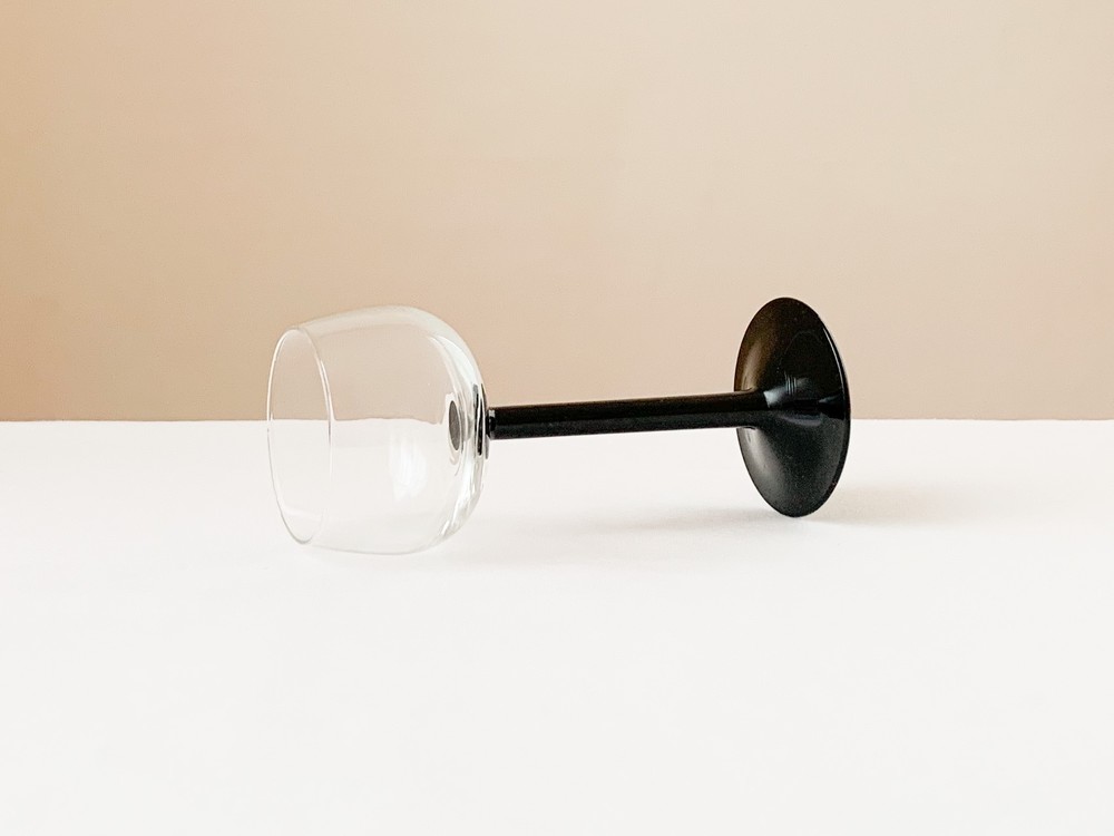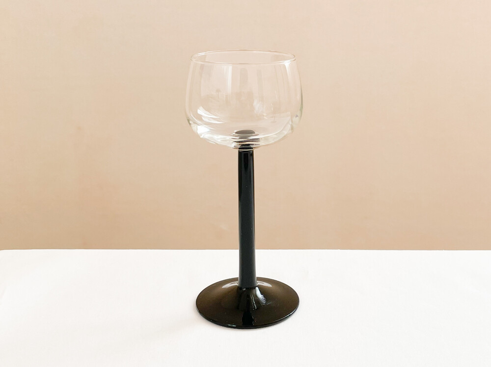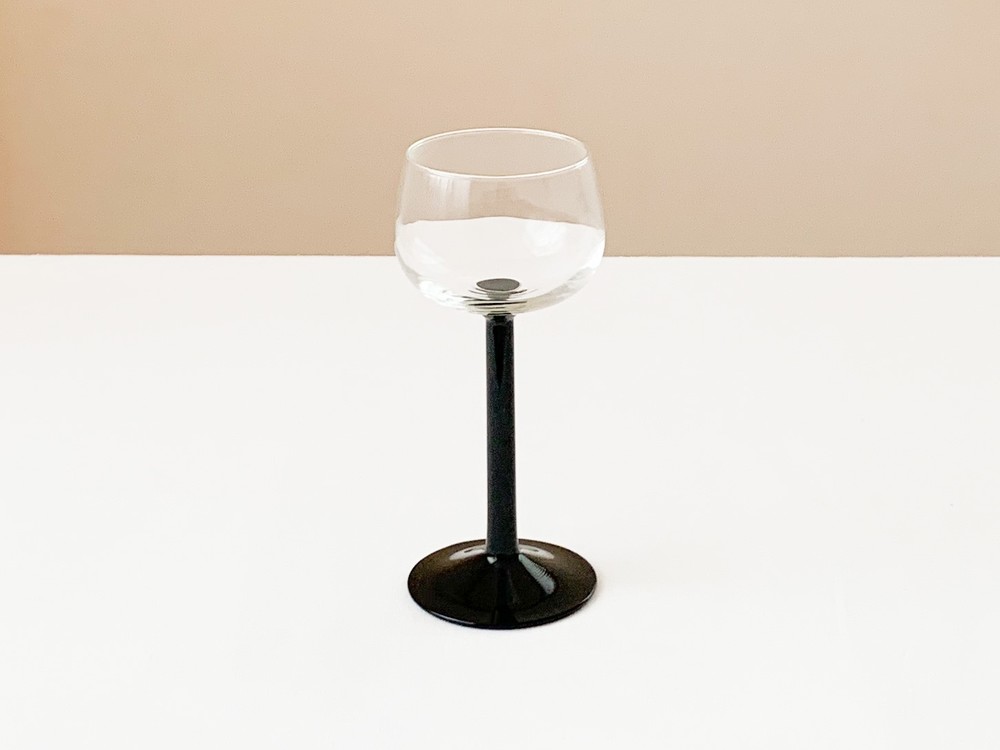 루미낙은 1958년에 시작된 브랜드로, 1892년 프랑스 북부의 아르크지방에서 시작된 아르크 인터네셔널을 바탕으로 하는 유리제품브랜드입니다. 각 공정의 마스터들이 모여 유리물건을 만들었던 아르크 인터네셔널은 간결한 모양과 실용적인 소재를 가진 제품들로 명성을 쌓아가며 브랜드를 확장하며, 지금에도 인기가 있는 워킹글라스를 비롯한 아코팔, 알코록 그리고 루미낙 등 적당한 장식성과 보편성을 함께 가지고있는 내열유리소재의 글라스웨어를 제작하였습니다. 소개해드리는 유리잔은 1960년대 초반의 것으로, 아주 깨끗한 광택을 가진 맑은 유리와, 투명도가 없는 말끔한 검정색의 강화유리를 소재로 합니다. 위로 향할수록 살며시 좁아지는 동그랗고 매끈한 종모양의 보울과 살짝 기다란듯한 비율로 반듯하게 다듬어진 스템, 평평한 동그라미의 안정감있는 받침으로 이루어진 제품입니다. 보는 방향에 따라 달라지는- 색과 질감과 부분의 모양들이 만들어내는 아름다운 겹쳐짐 또는 그림자를 살펴보는 즐거움을 간직하고 있기도한 유리잔으로, 단정하고 세련된 분위기를 전해줍니다. 신중하게 고른 와인을 위한 잔으로, 아이스크림이나 작은 열매과일을 담아내는 디저트그릇으로 사용하기에 알맞습니다.