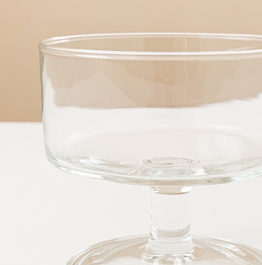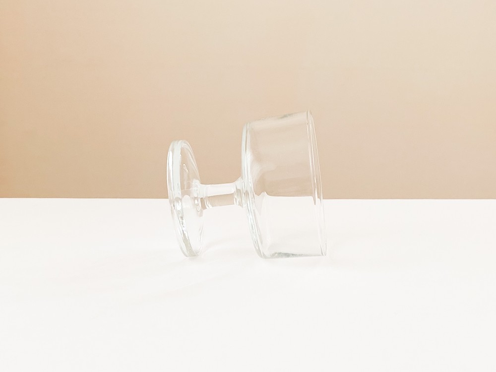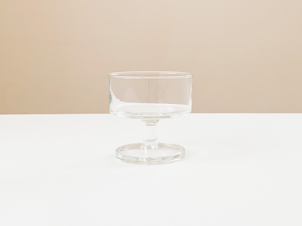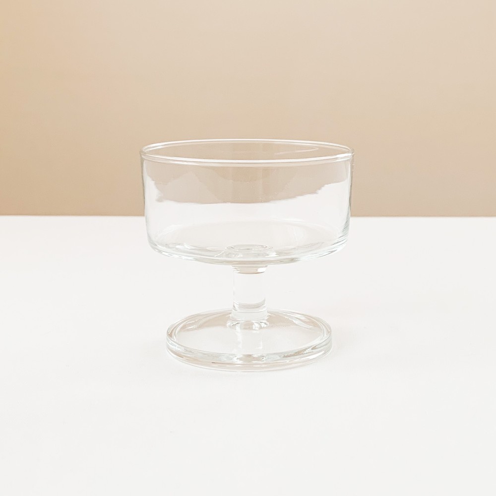 소개해드리는 제품은, 투명하고 맑은 유리를 소재로 합니다. 반듯하고 깊은 동그라미의 보울, 단정한 비율의 스템과 도톰한 베이스로 모양을 이룹니다. 둥글고 곧은 선들이 이루어낸 안정감있고 세련된 모습을 보여줍니다. 매끄럽고 묵직하게 반짝이는 유리의 아름다움, 단조로움으로 더욱 돋보이는- 완전에 가까운 균형이 보여집니다. 아이스크림이나 크림디저트를 담아내는 선디컵으로, 향긋하게 반짝이는 샴페인을 마시는 디쉬로 사용하기에 잘 어울립니다.