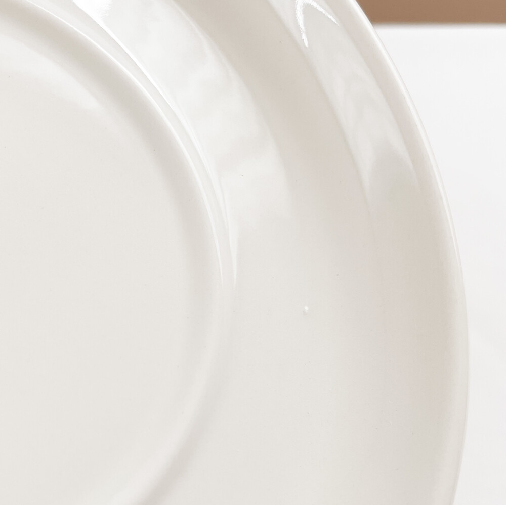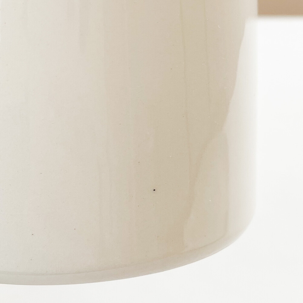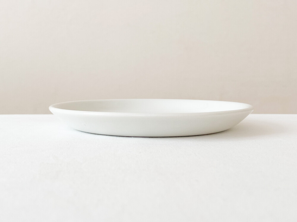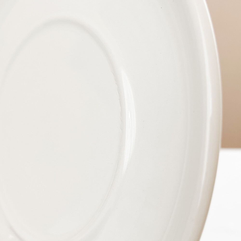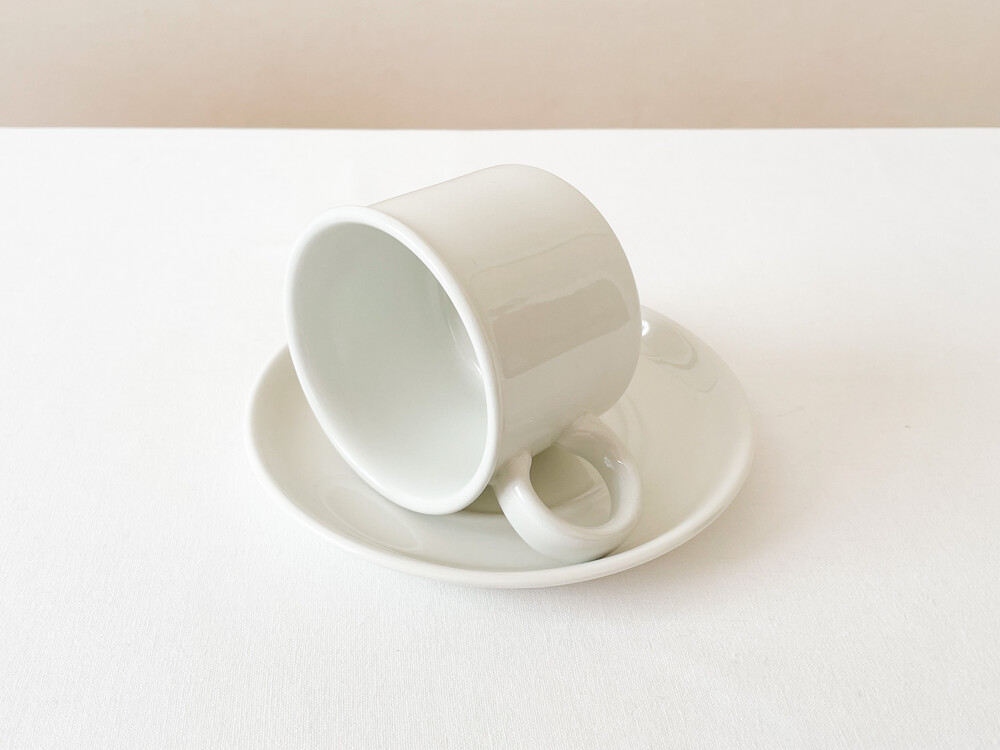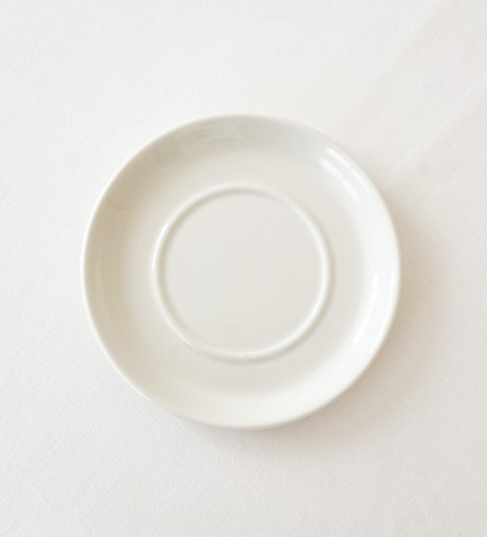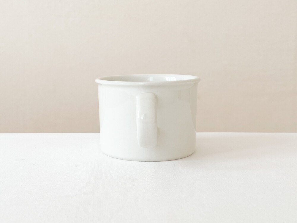 미드윈터는 잉글랜드 중부지방의 버슬렘지역에서 1910년에 부터 시작된, 당시의 세련된 트렌드를 이끌어가던 테이블웨어 브랜드입니다. 소개해드리는 찻잔세트는 1960년대 후반의 것으로, 맑은 하얀색의 스톤웨어를 소재로 만들어졌습니다. 단정하고 안정감있는 선들로 이루어진 찻잔과 비교적 높은 가장자리를 가진- 평평한 동그라미의 잔받침으로 구성되어있으며, 겉면에는 매끄러운 유약이 얇고 단단하게 입혀져 있습니다. 소재에 스며있는 편안하고 화사한 빛이 전해주는 다정한 분위기와 찻잔의 곳곳에서 살펴볼 수 있는 동그라미들이 만들어내는 겹들이 아름답습니다. 간결한 식사를 위한 시리얼이나 과일을 담는 그릇으로 알맞으며, 넉넉히 마시는 카페오레나 수프을 담아내는 컵으로 사용하기에도 잘 어울립니다.