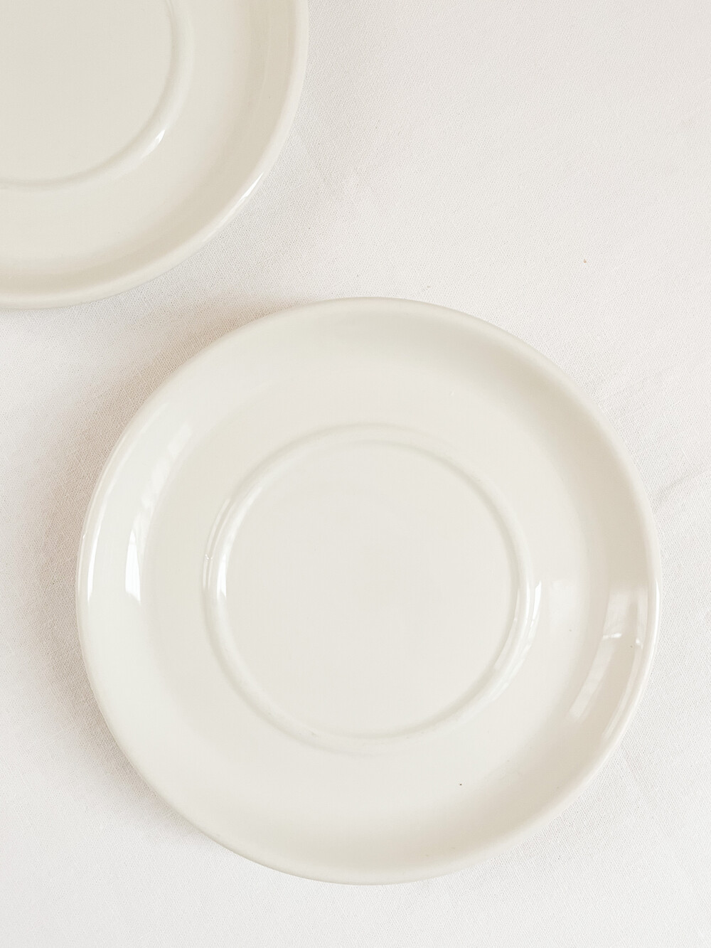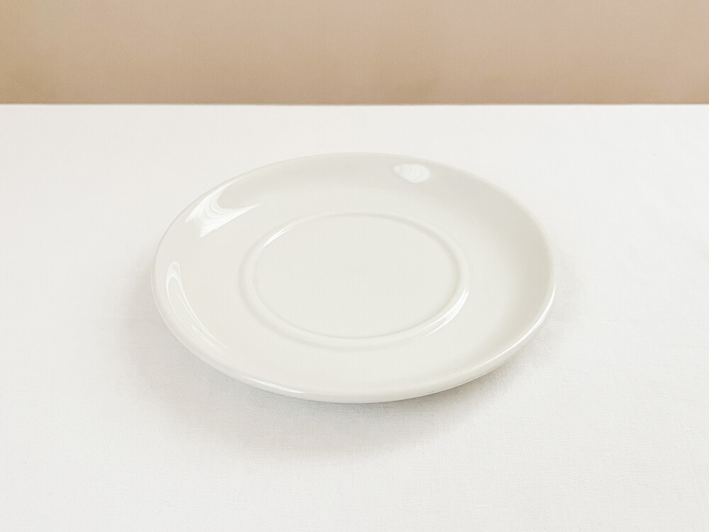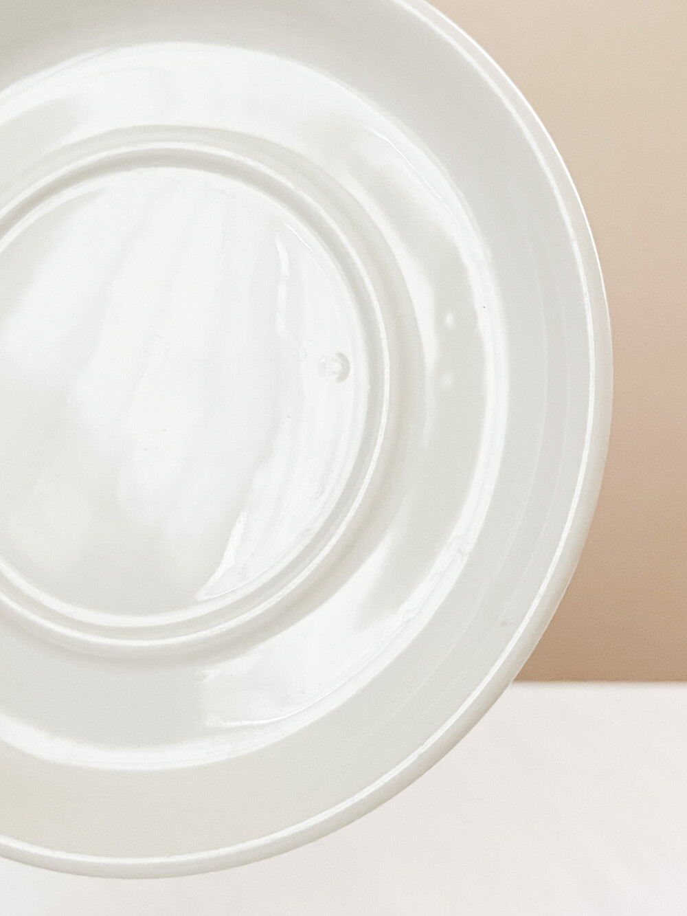 미드윈터는 잉글랜드 중부지방의 버슬렘지역에서 1910년에 부터 시작된, 당시의 세련된 트렌드를 이끌어가던 테이블웨어 브랜드입니다. 소개해드리는 찻잔받침은 1960년대 후반의 것으로, 맑은 하얀색의 스톤웨어를 소재로 만들어졌습니다. 비교적 높은 가장자리를 가진- 평평한 동그라미의 잔받침의 겉면에는 매끄러운 유약이 얇고 단단하게 입혀져 있습니다. 소재에 스며있는 편안하고 화사한 빛이 전해주는 다정한 분위기와 곳곳에서 살펴볼 수 있는 동그라미들이 만들어내는 겹들이 아름답습니다.